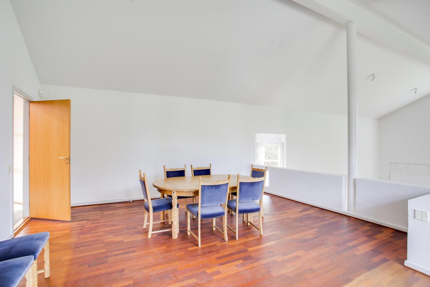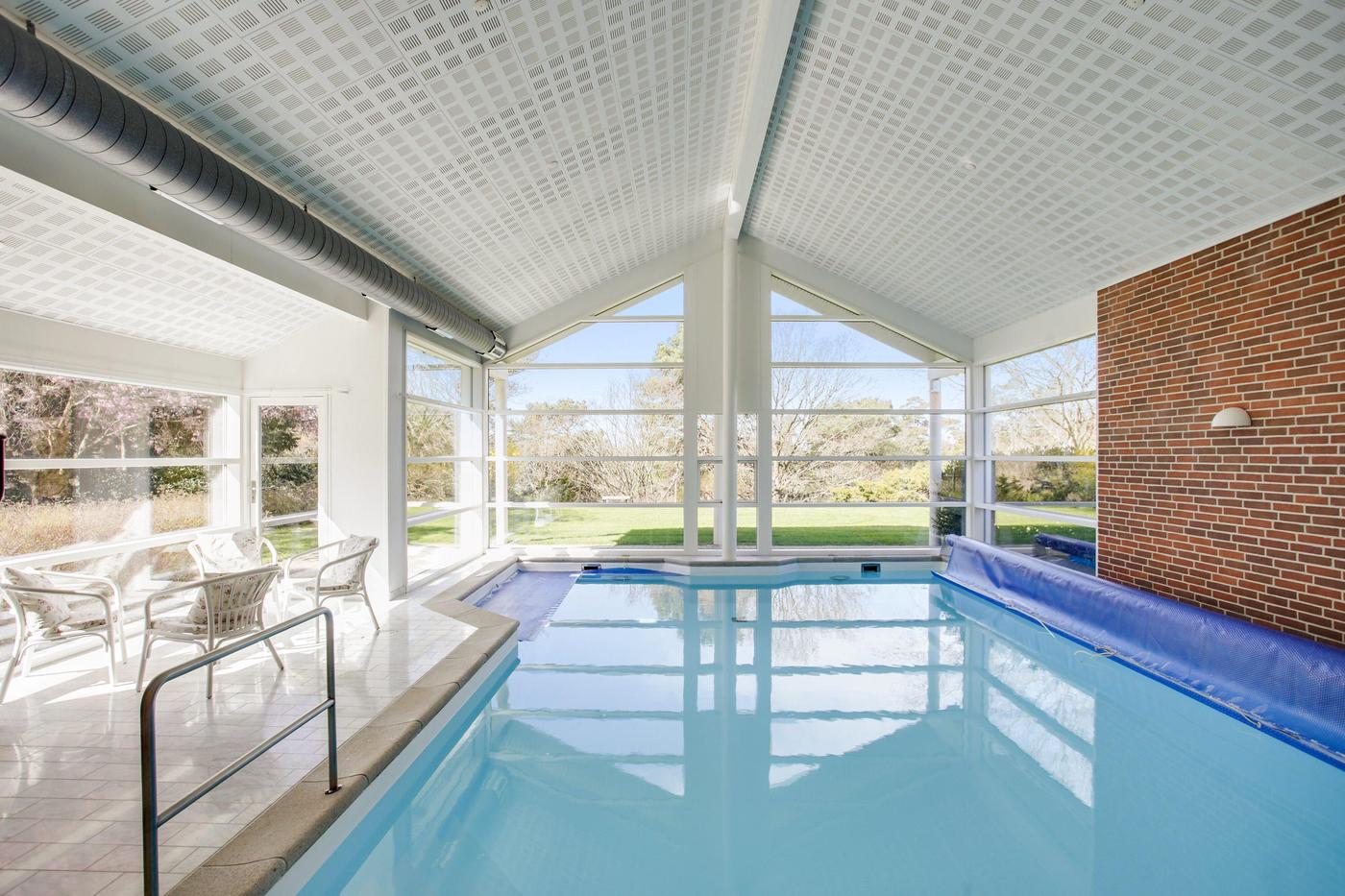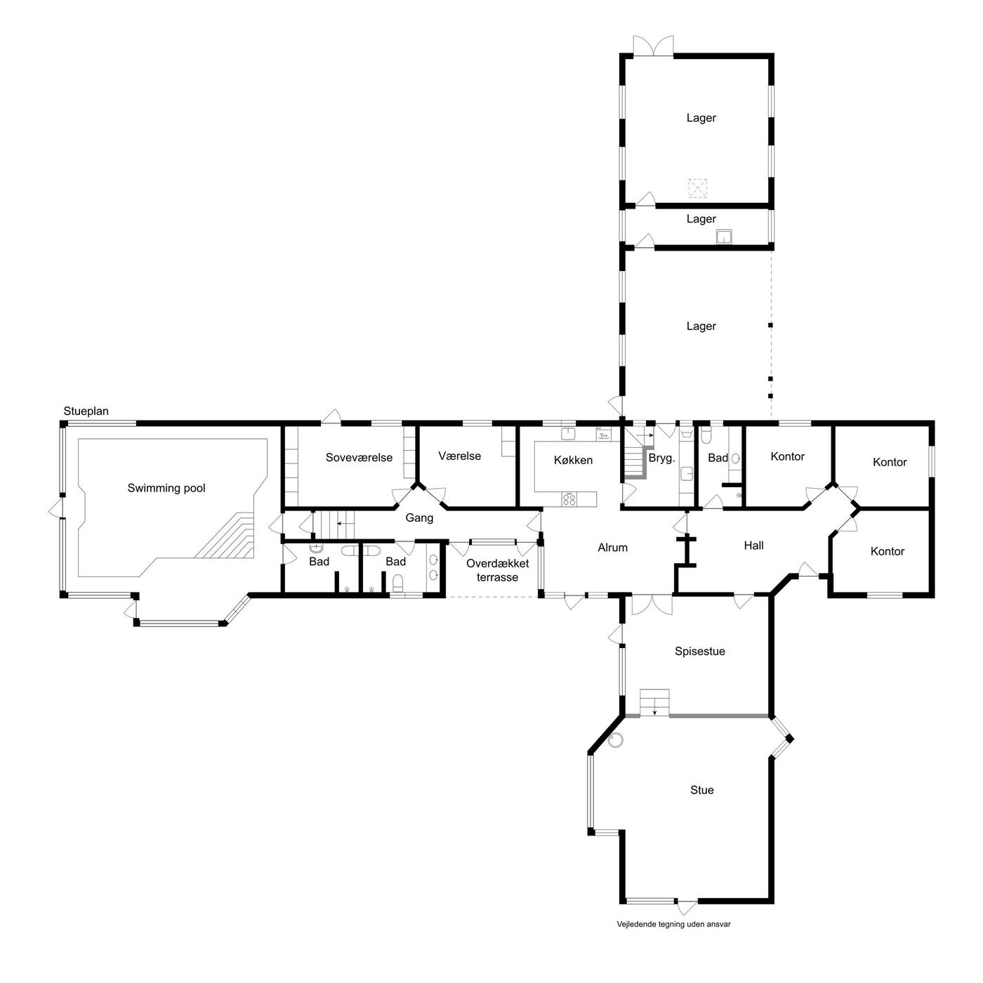 Boligdelen består af kælder, bryggers, køkken i åben forbindelse med alrum, spisestue og stue med niveauspring, soveværelse, værelse, badeværelse samt stor indendørs swimmingpool med badeværelse.