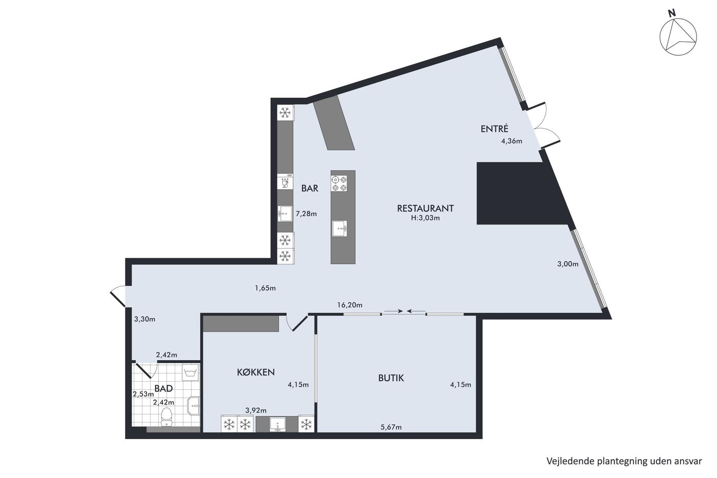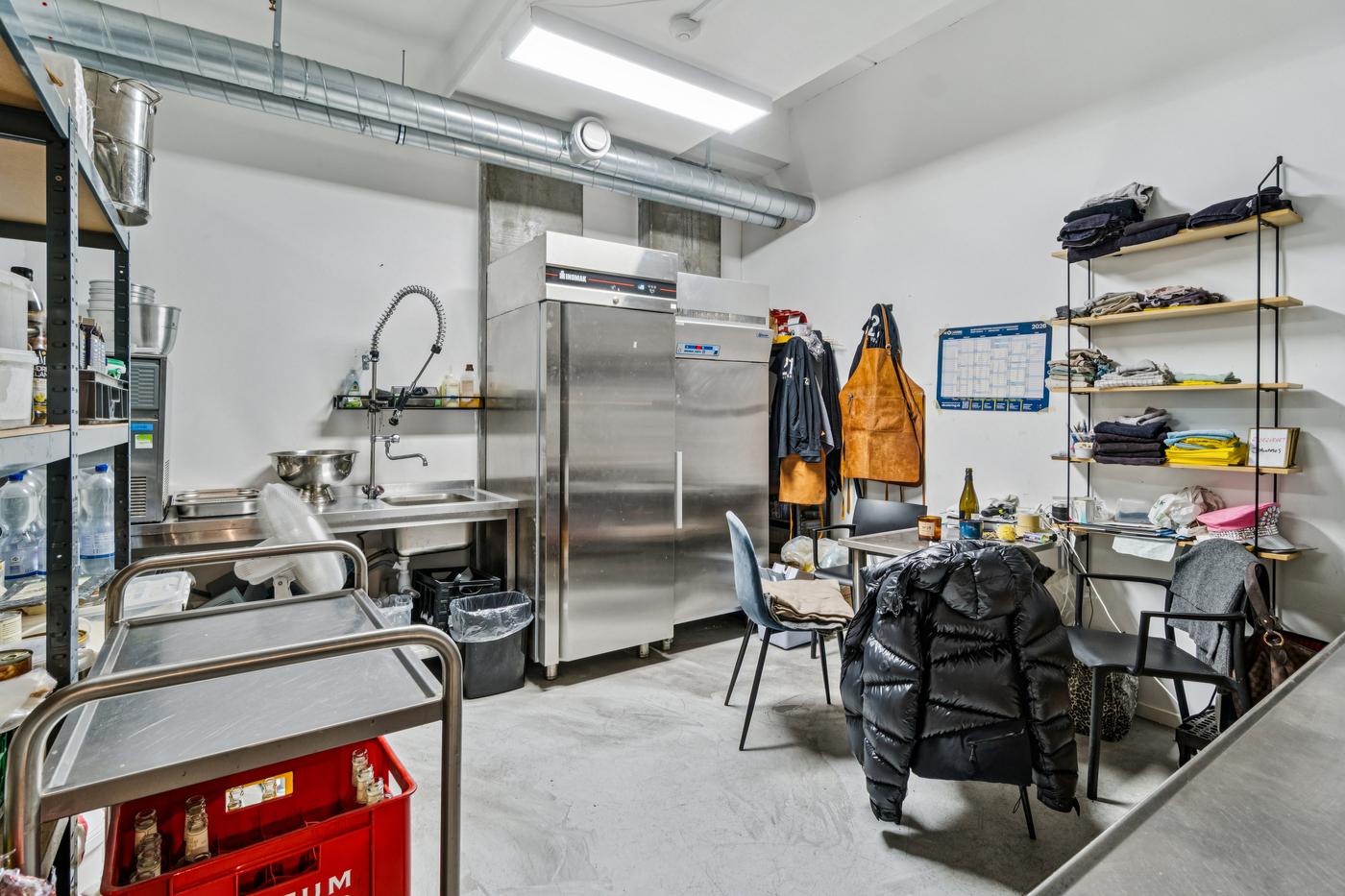 Derudover rummer lejemålet et rum til f.eks. produktions-/anretterkøkken med mulighed for vaskestation. Endvidere kundetoilet samt baglokale til opbevaring. Bemærk, at der ikke er mulighed for madproduktion, som kræver udsugning.