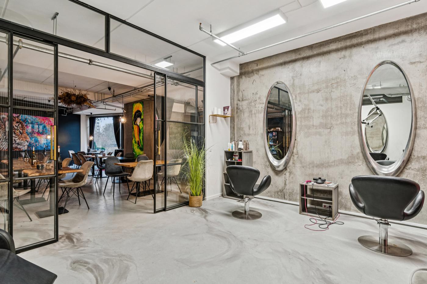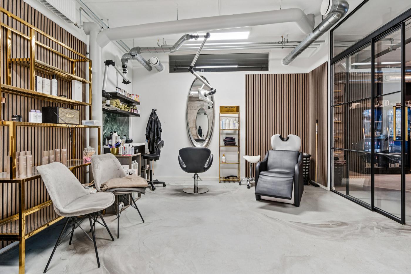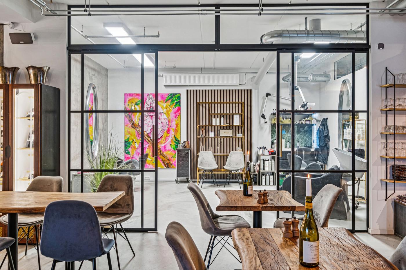 Indretningen består af et stort, lyst rum med fleksible muligheder. Stort separat lokale - perfekt til barområde, lounge eller selskabslokale. En elegant New Yorker-dør adskiller rummet fra det store rum (kan tilkøbes, hvis du ønsker at bevare den stilfulde detalje).