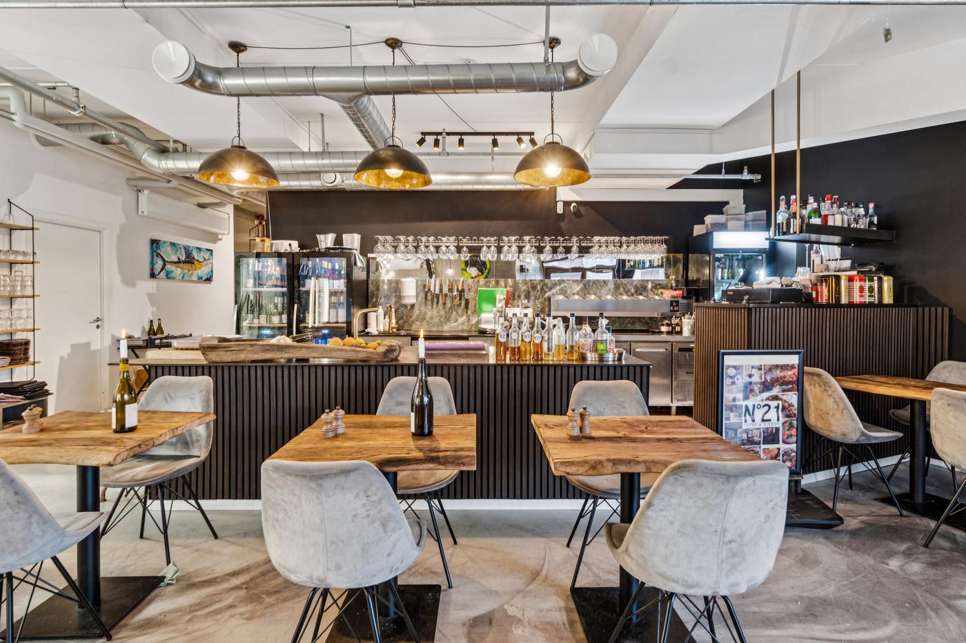 Lokalet er i dag indrettet som tapas- og vinbar med åbent køkken, hvilket skaber en indbydende atmosfære. Her er plads til at videreføre det eksisterende koncept eller skabe noget helt nyt. Inventar fra tidligere lejer kan tilkøbes, hvilket gør opstarten nemmere og mere økonomisk fordelagtig.