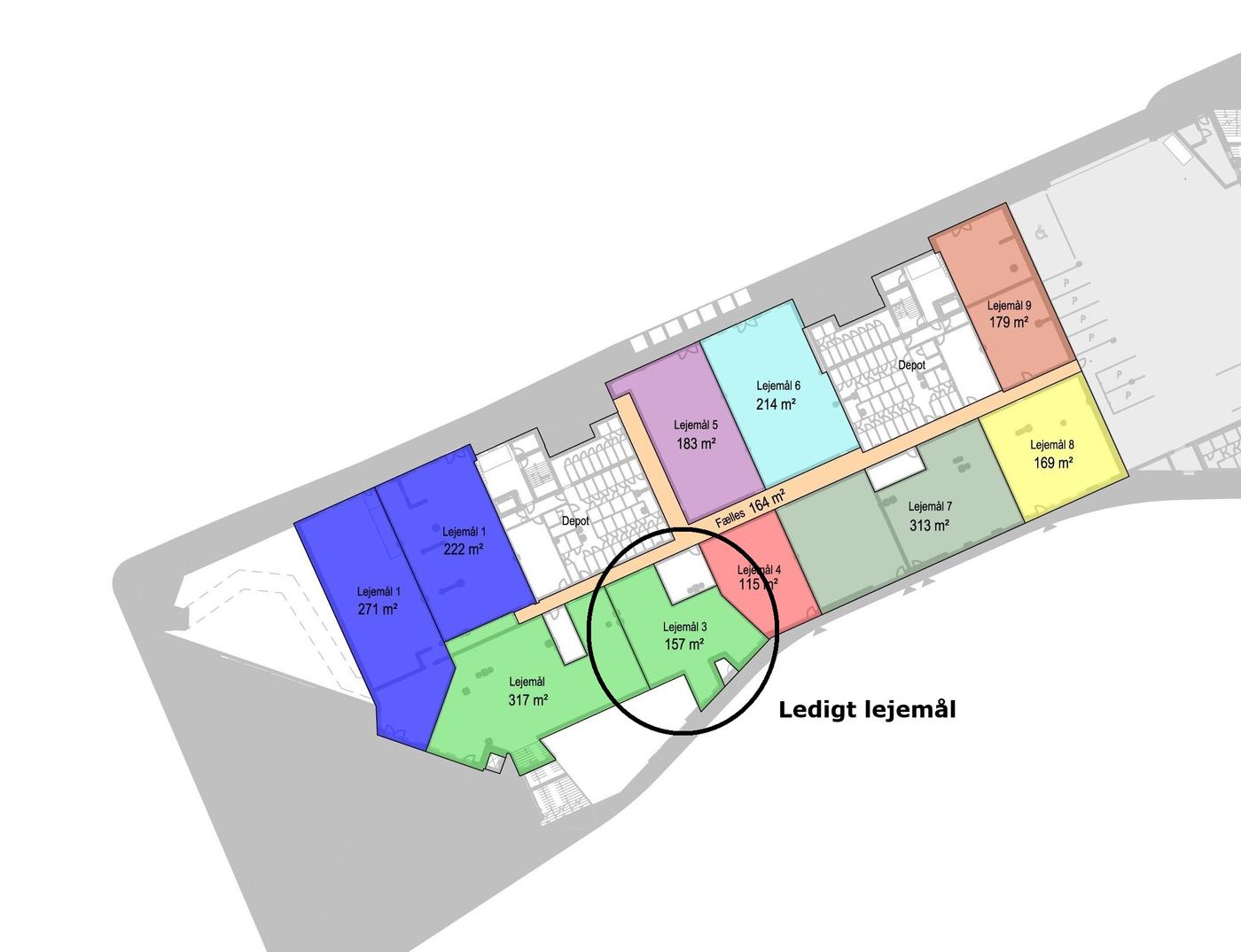 Årlig leje kr. 1.800 pr. m² reguleres pr. 1. juni efter nettoprisindekset, dog min. 3%.