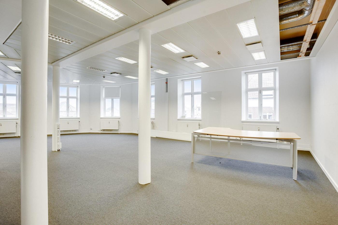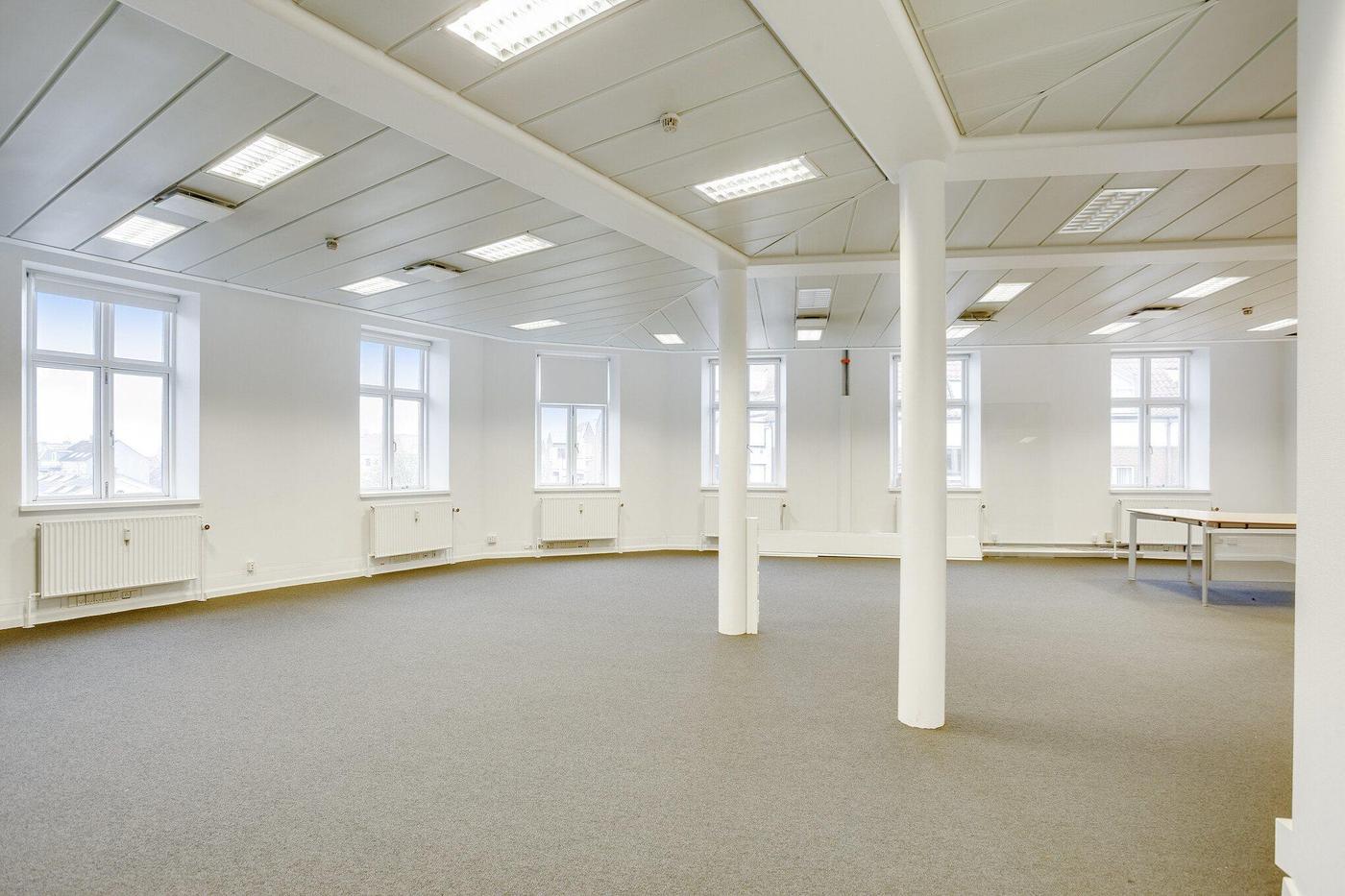 Lejemålet består af ét stort åbent kontorlokale med masser af naturligt lys og med mulighed for at lave opdeling, hvis det ønskes. Yderligere forefindes der i lejemålet entre, teknikrum og depot-/printerrum. Til lejemålet hører brugsret til fællesarealer bestående af adgangsarealer, flot svalegang og toiletter.