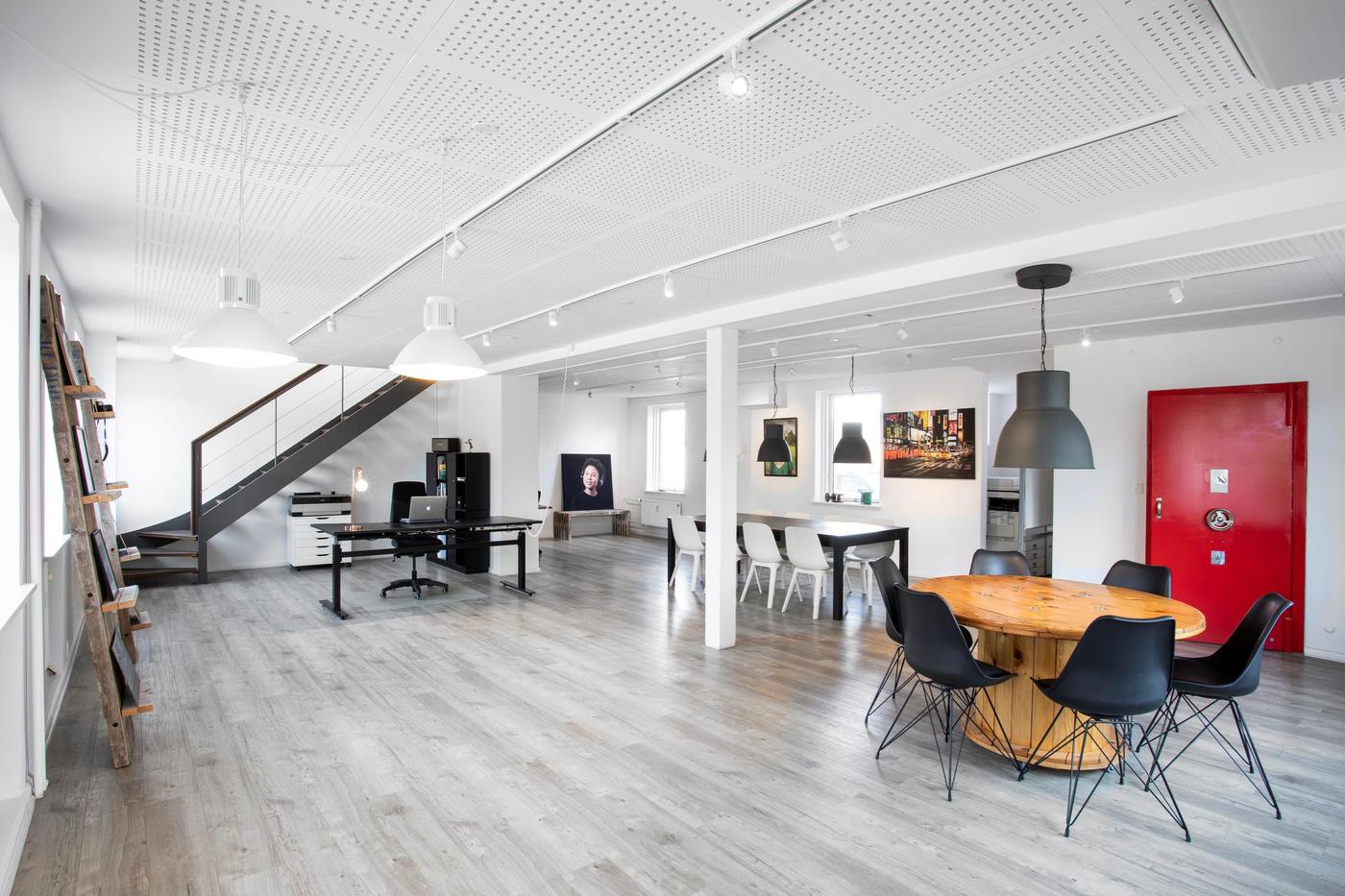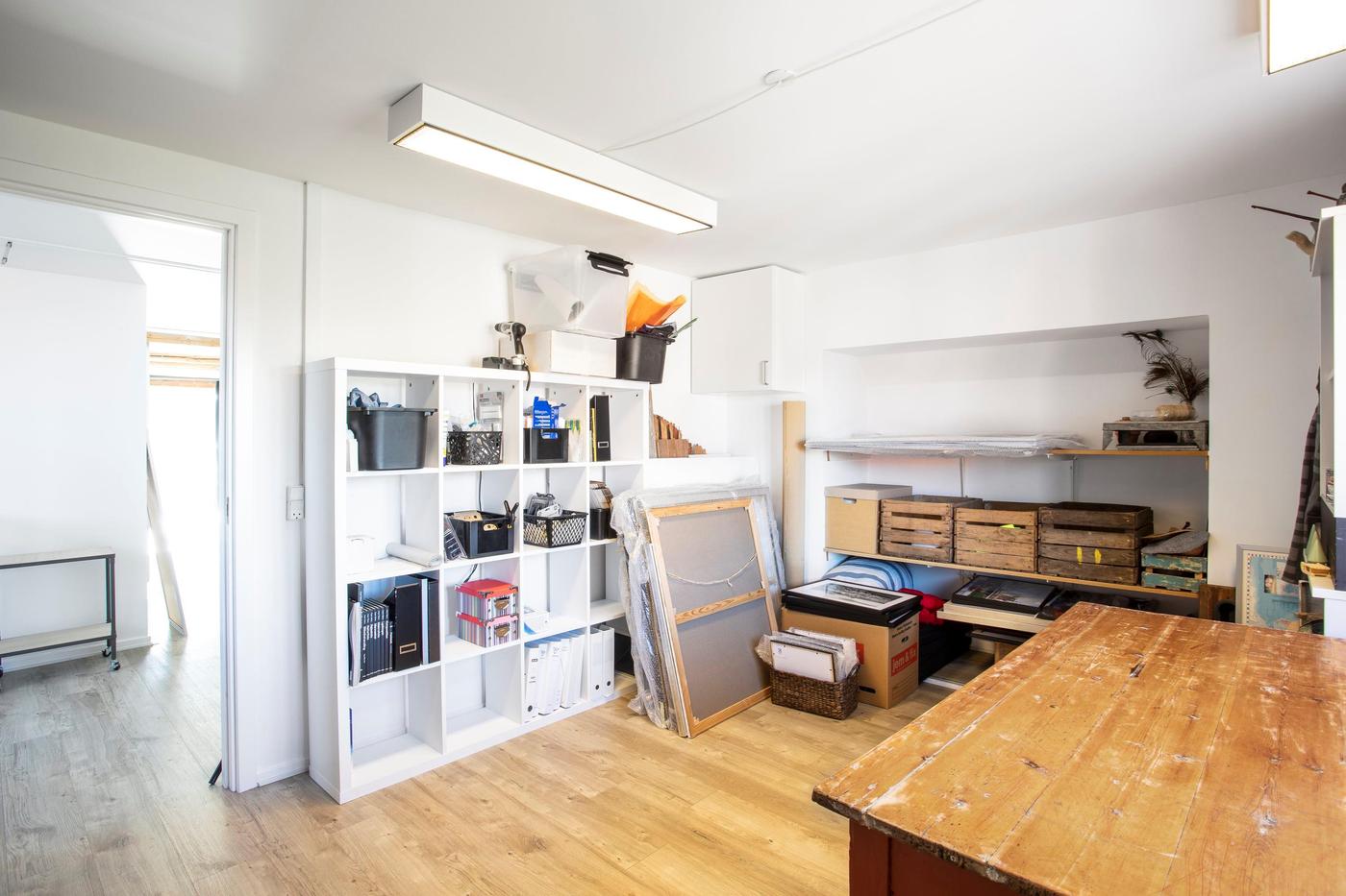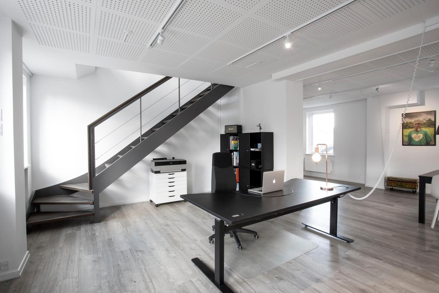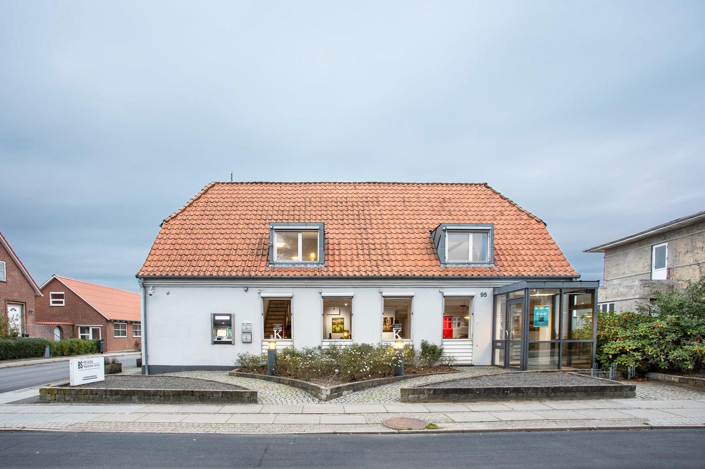 Forhuset mod Bjerrevej, som bliver ledigt for køber - med undtagelse af 10 m² lokale udlejet til Sydbank til pengeautomat - er gennemrenoveret i gennem de seneste år. Alt er veludført, herunder også med meget flot overetage. Bygningen, som opr. er opført i 1917, er totalt renoveret i 2014/2015. Alt er veludført, herunder med flot kontormiljø med trægulv og troldtektlofter. Bebygget areal 132 m² + 90 m² tagetage og 10 m² kælderrum. Bygningen anvendes p.t. af ejer til fotografvirksomhed og har tidligere været anvendt til pengeinstitut.