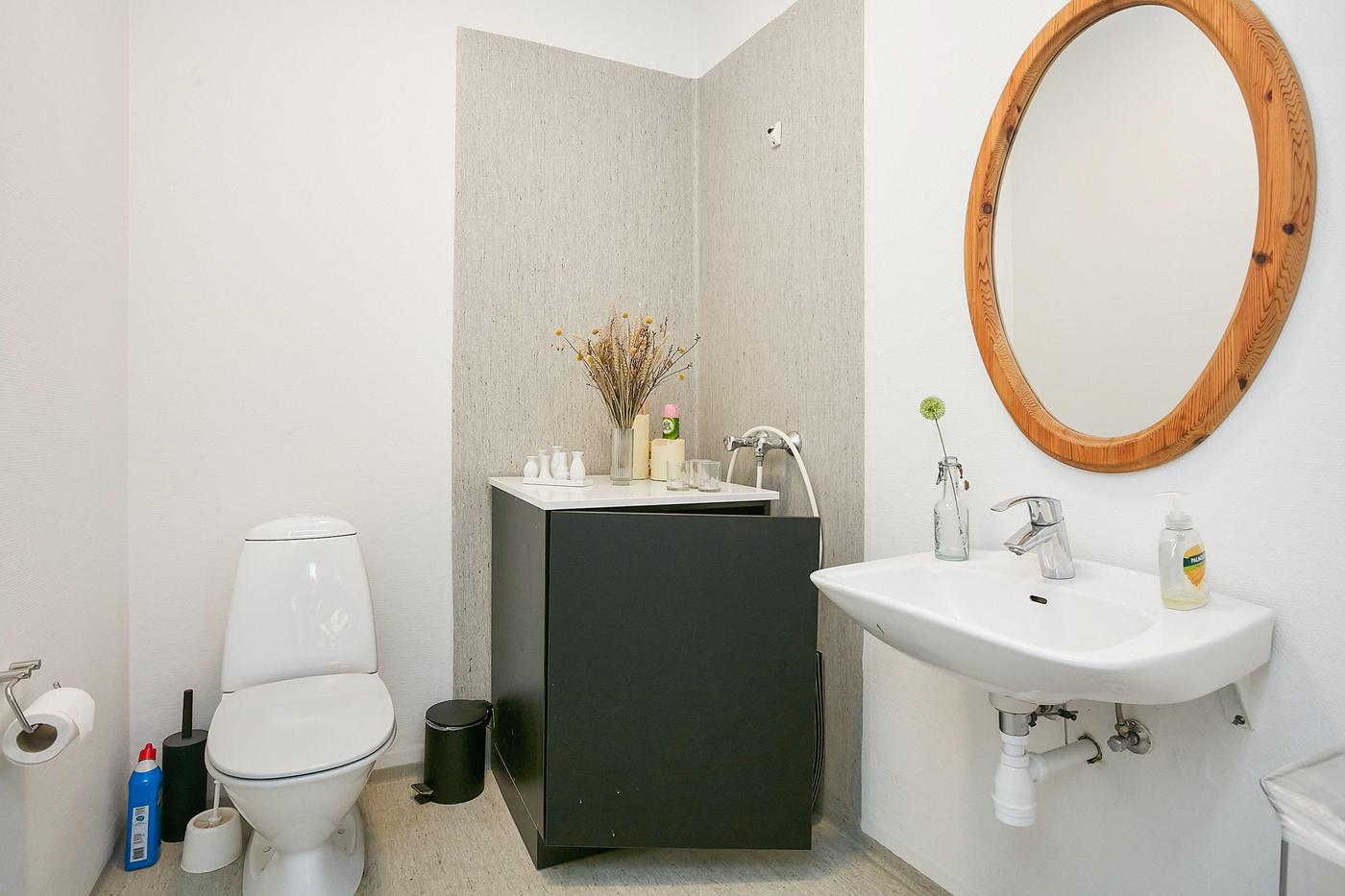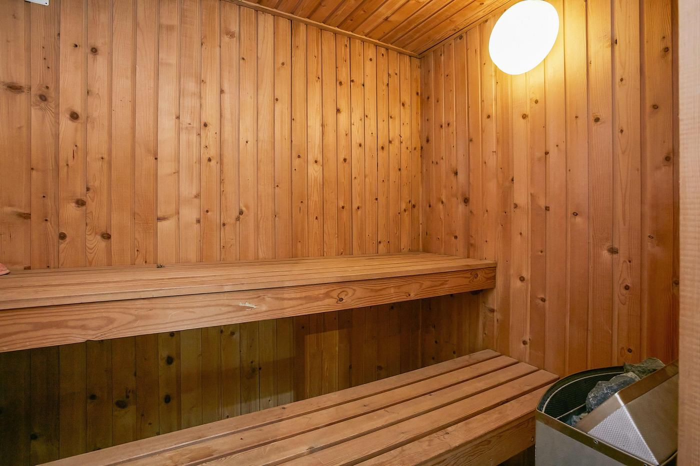 Boliglejemålet i 2 plan på i alt 161 m² indeholder stor stue og stort køkken, flere værelser, mindre toilet, badeværelse og sauna.