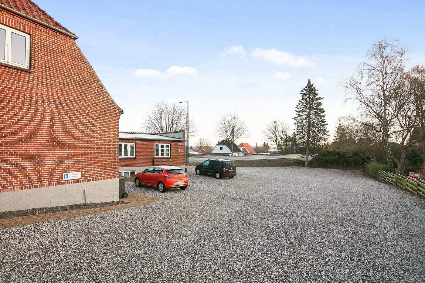 Der er rigtig gode parkeringsforhold på den store grund.