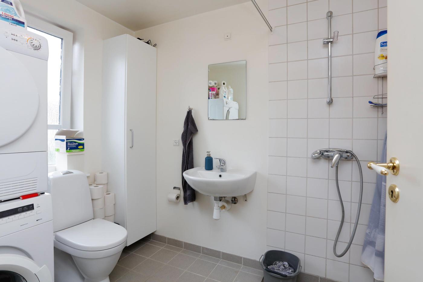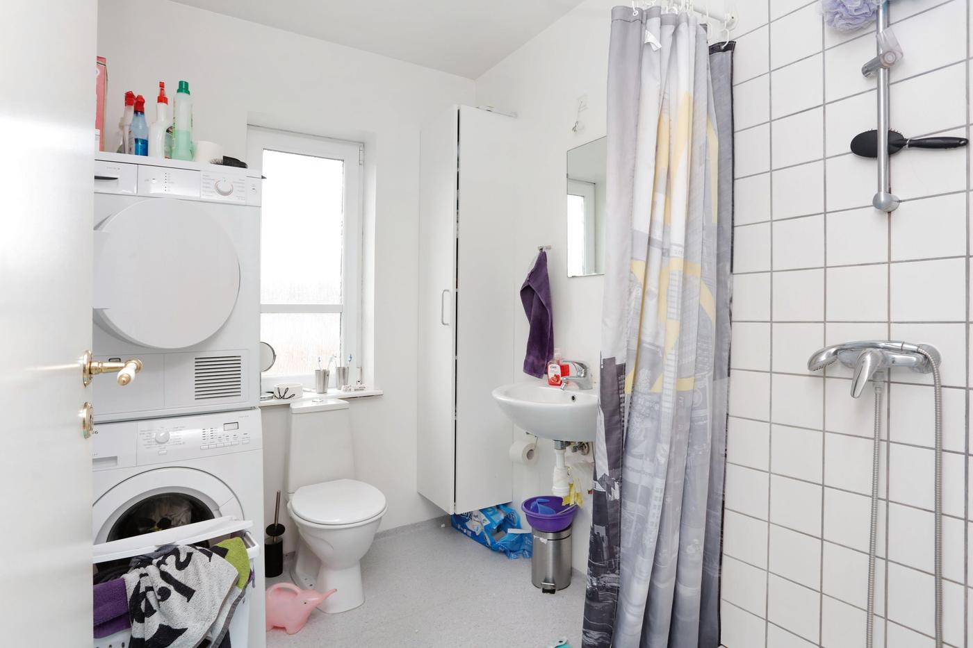 De 3 store lejligheder er indrettet i 2 plan. Stueplan i lejlighederne indeholder entre med garderobeplads, stor kombineret opholds- og spisestue med gode indretningsmuligheder. Pænt lyst badeværelse med bruseniche og tilslutning til vaskemaskine og tørretumbler. 1. sal rummer hele 4 værelser; et soveværelse, kontor og 2 værelser.