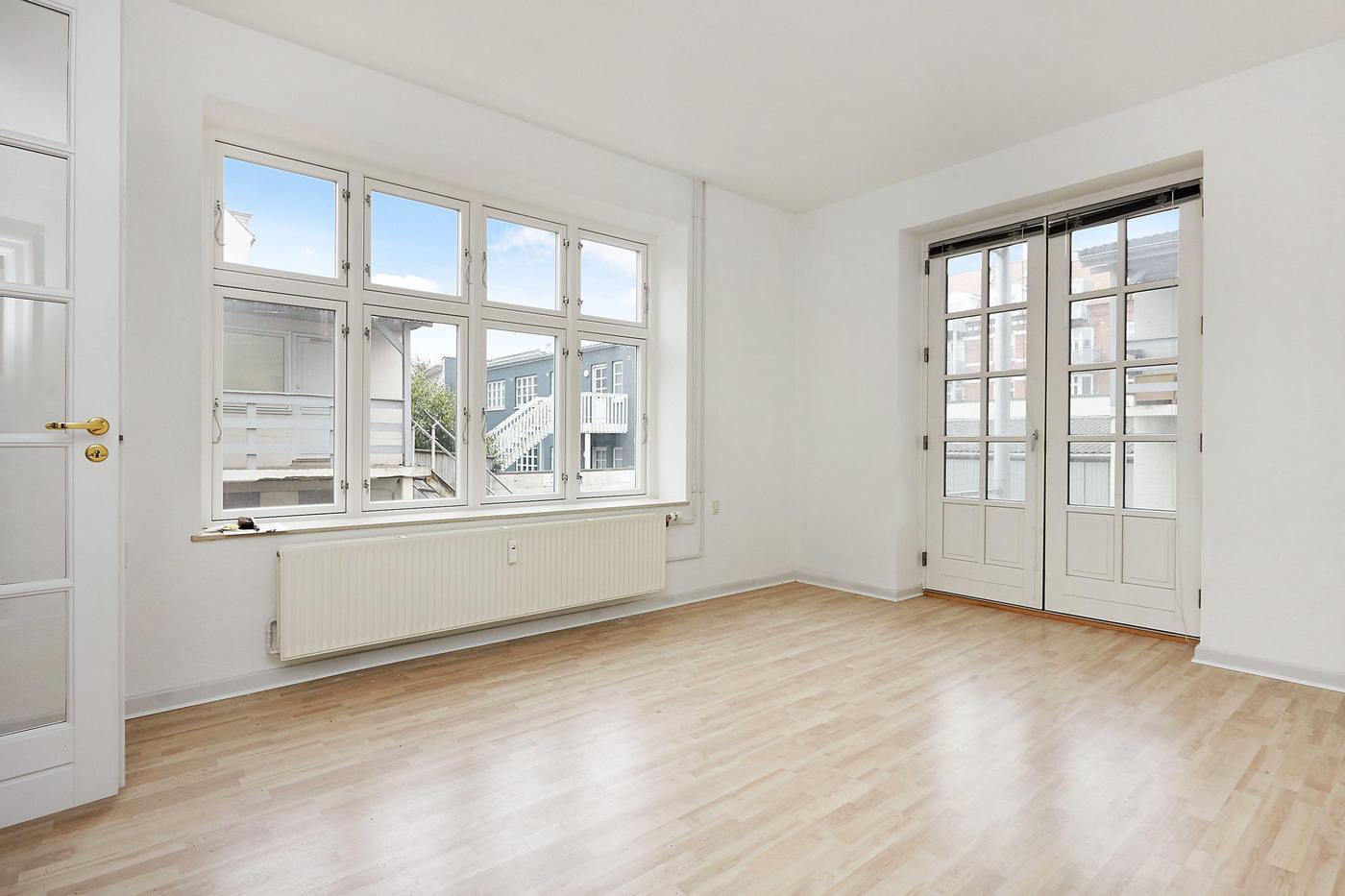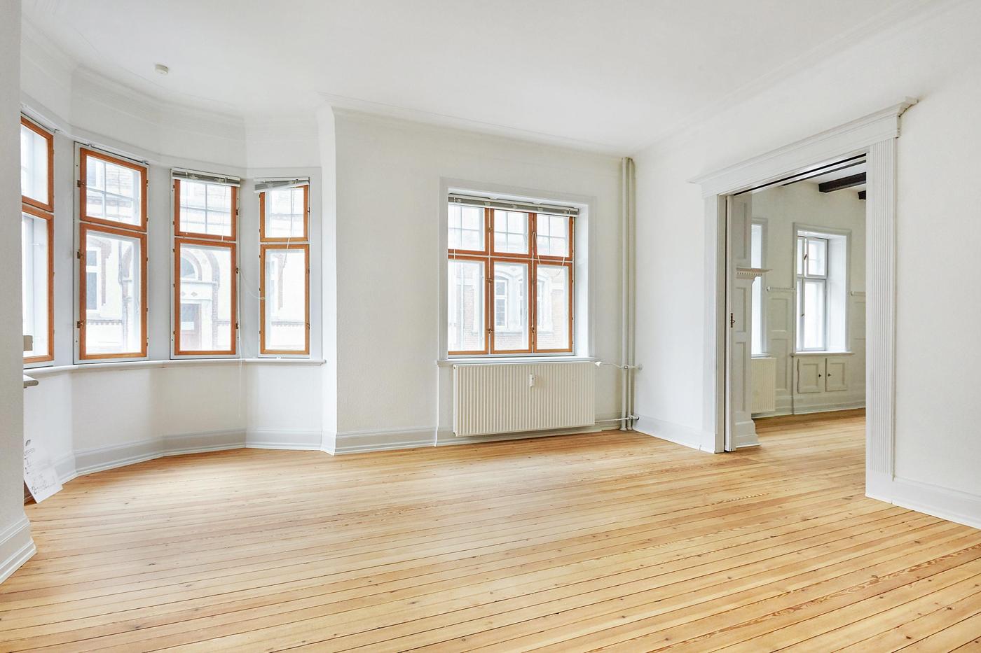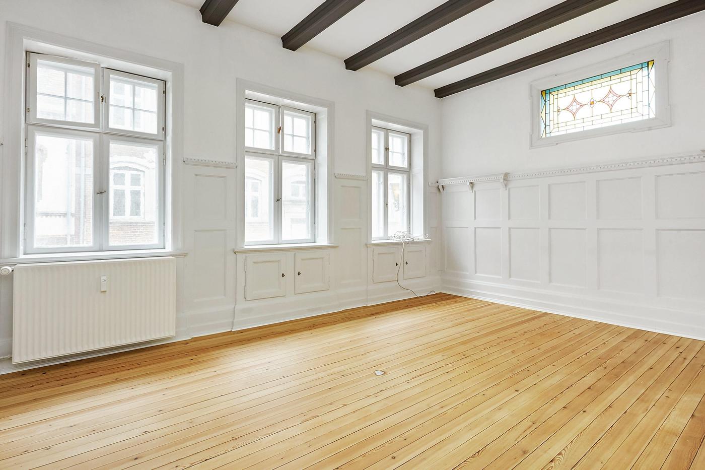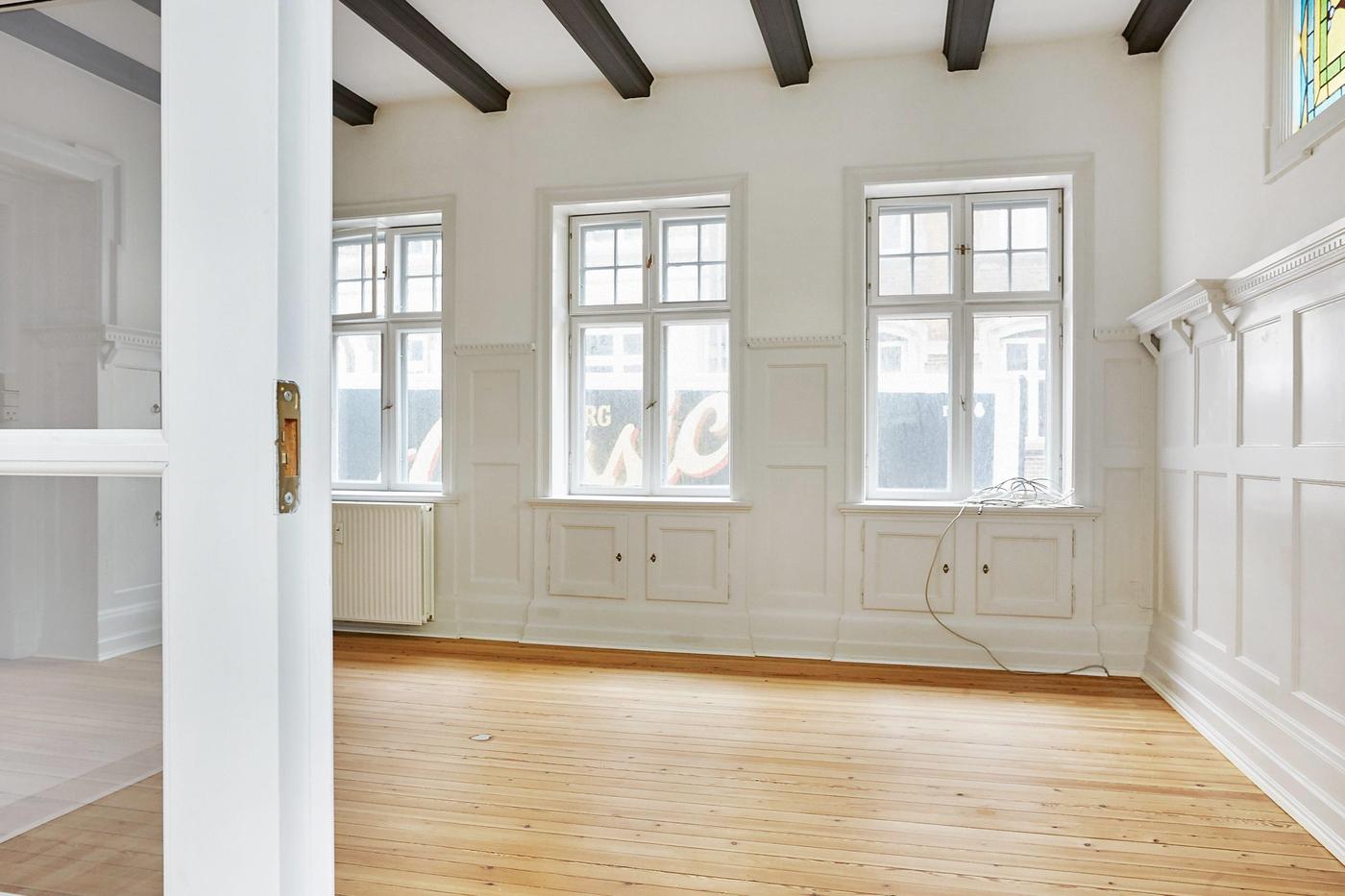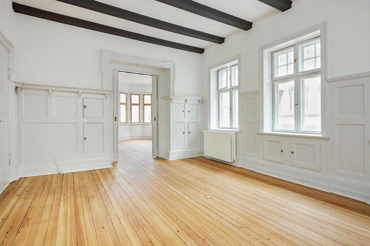 Ejendomskomplekset består af: Flot hovedbygning på i alt ca. 673 m² fordelt på 5 etager incl. kælder. Nærværende ejerlejlighed nr. 2 omfatter stuelejligheden på ca. 143 m² (høj stueplan). Rigtig pæn lejlighed med fine detaljer. Lejligheden er ledig for køber.