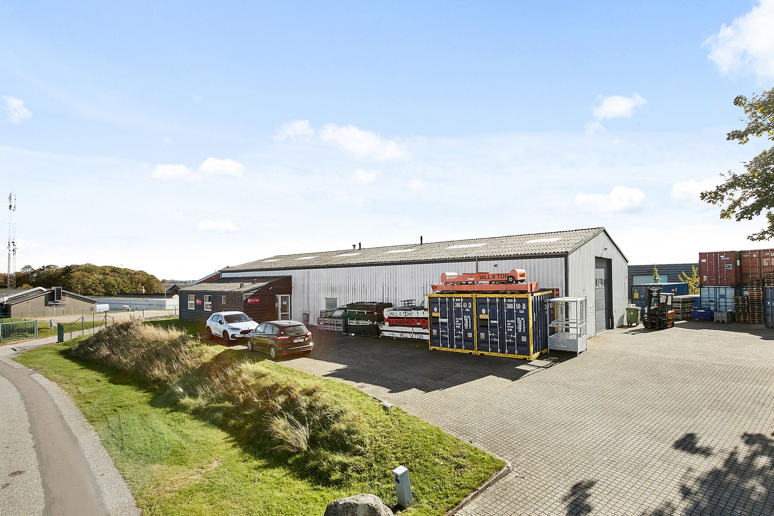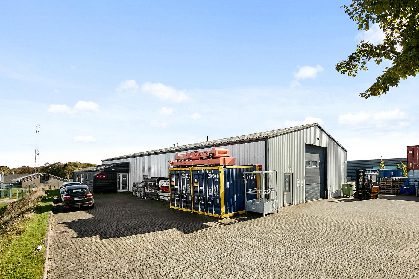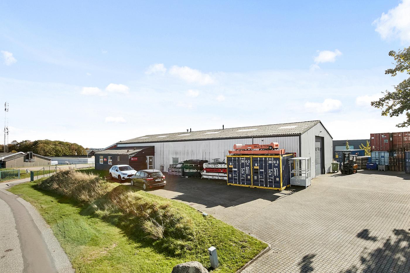Lejemålet udgør del af ejendom med et samlet bebygget areal på 792 m² opført i 1994. Ydervægge fremstår i profilerede aluplader. Eternittag. Grundarealet udgør 1.999 m².