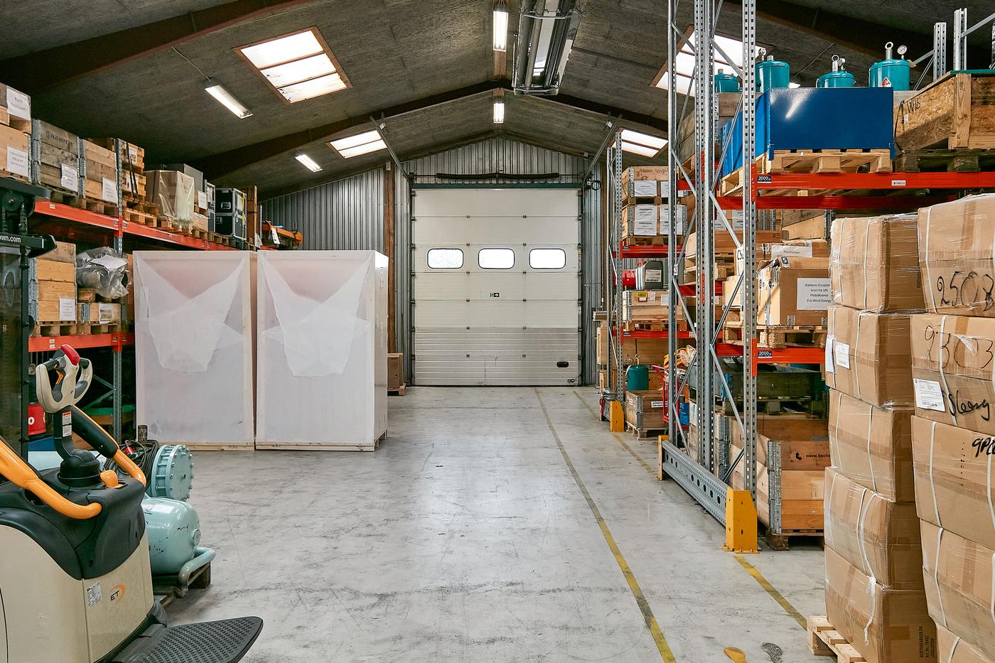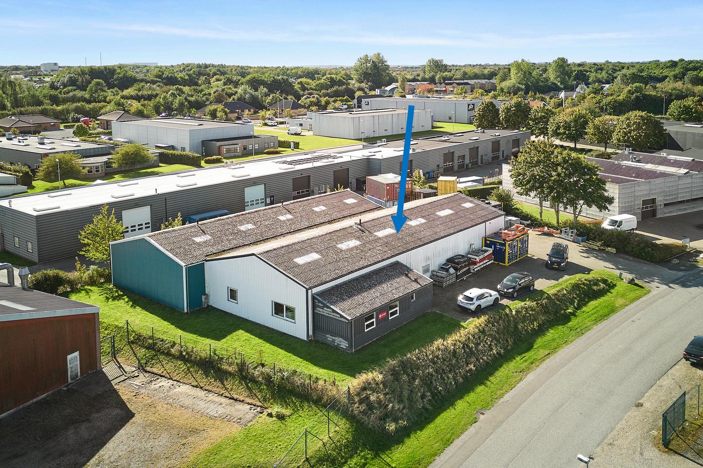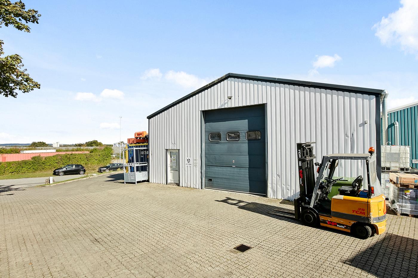 Lejemålet er på 440 m² (den forreste hal på ejendommen) bestående af produktions/lagerhal på ca. 395 m² med ovenlys, lofthøjde fra ca. 4,1 m til ca. 5,9 m i kip, ca. 4 m bred hejseport i gavl. Såvel yder- som indervægge fremstår i profilerede aluplader. Velfærdsafsnit på ca. 45 m² indeholdende entre, baderum med toilet og kontor/frokoststue.