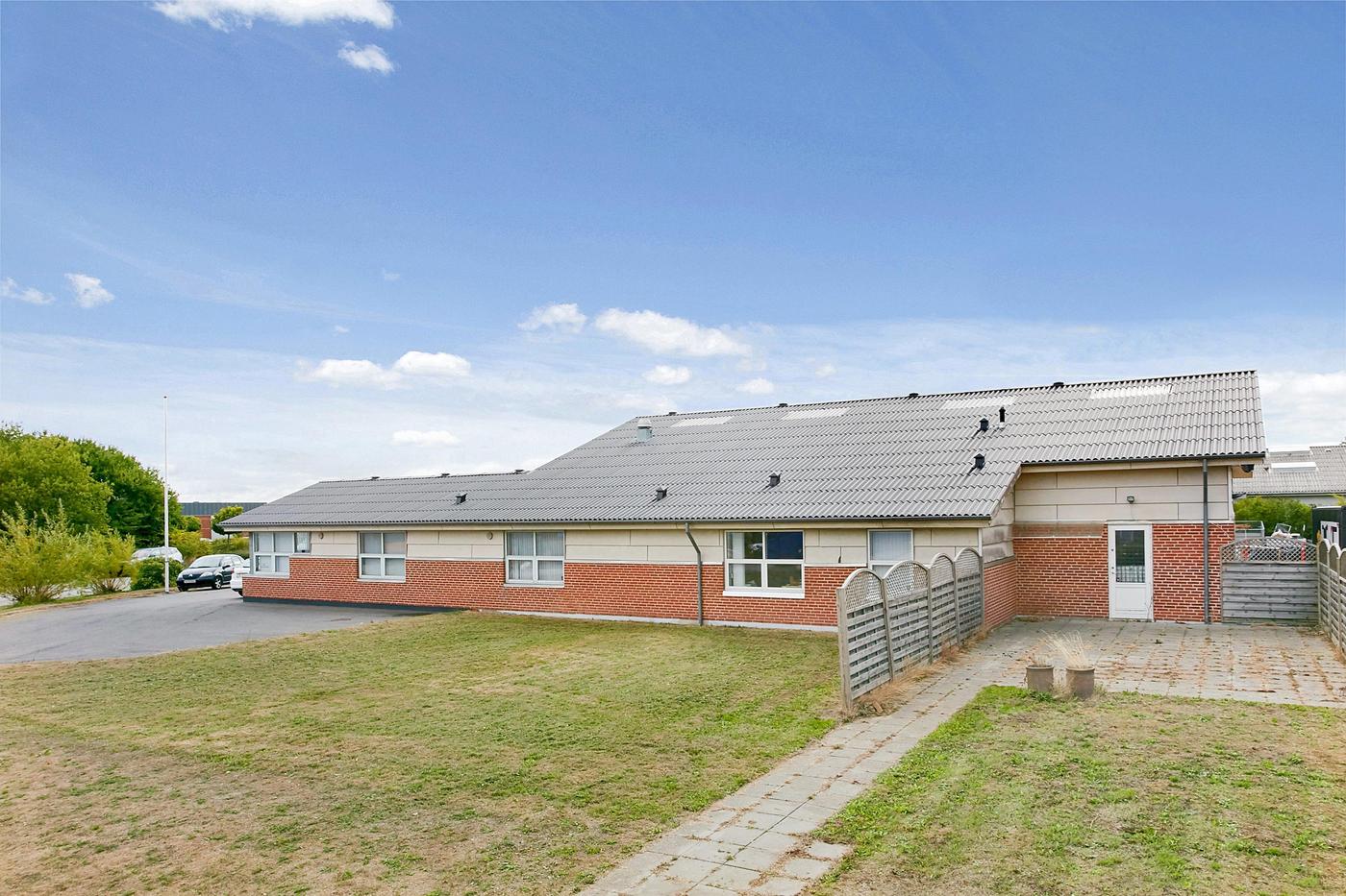 Udenomsarealer er udlagt som hhv. befæstede parkeringsarealer samt med græs.