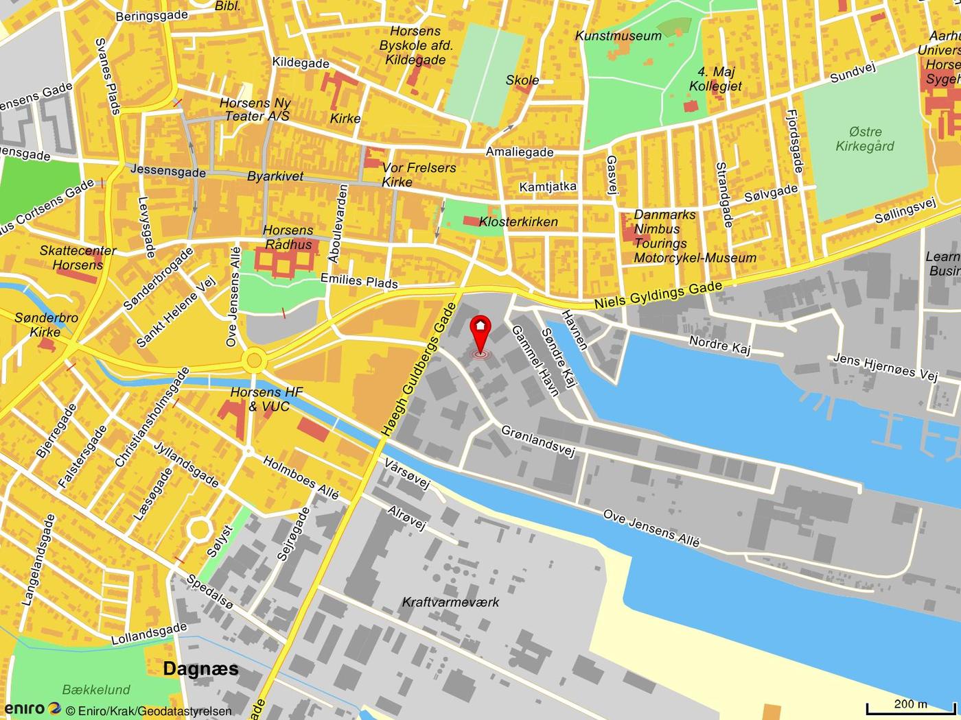 Lejemålet er beliggende i ejendomskomplekset "Håndværkerhusene" ved Horsens Havn og tæt ved centrum, som består af 28 lejemål.