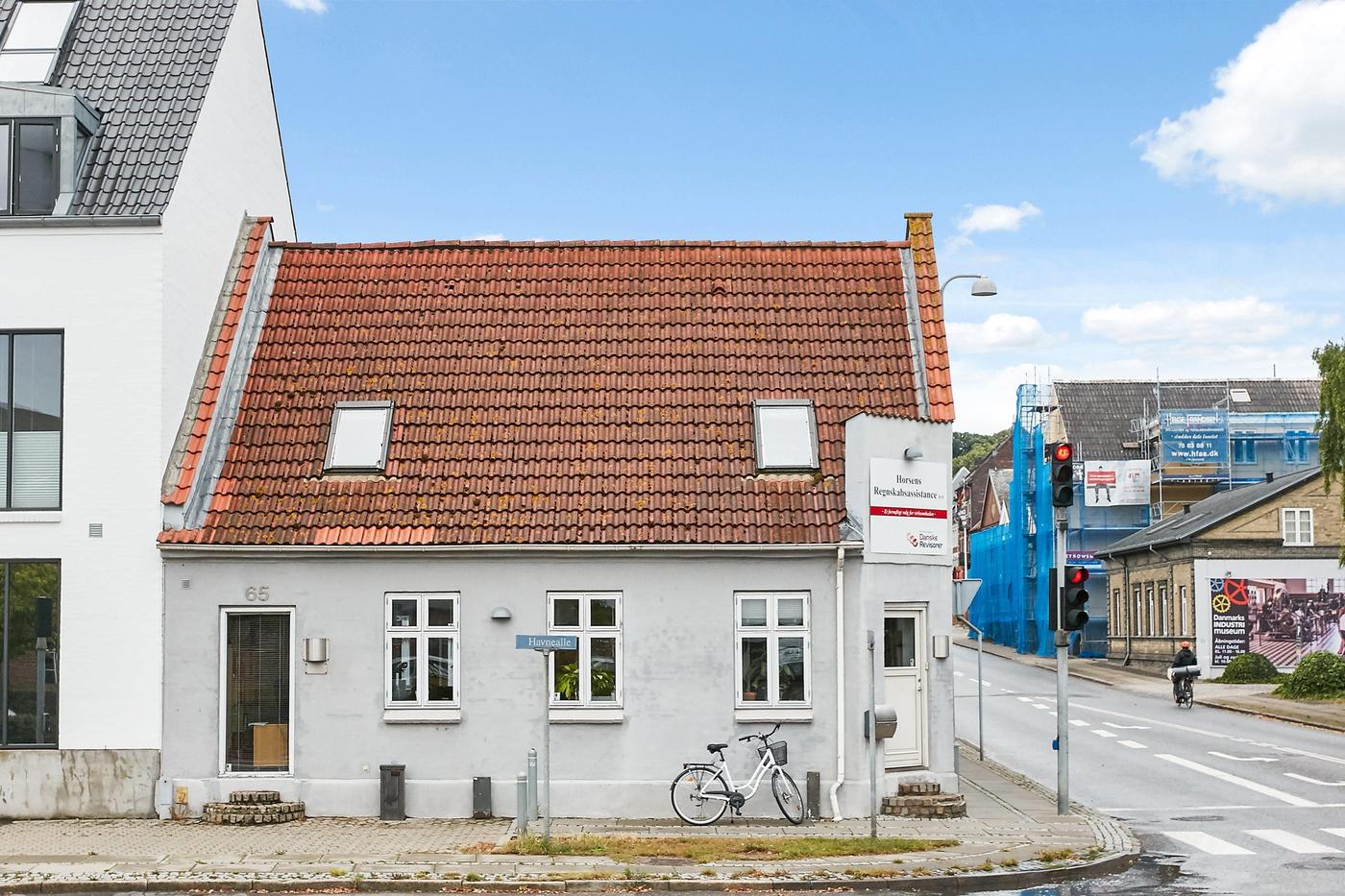 Beliggende på hjørnegrund Havnealle/Gasvej.