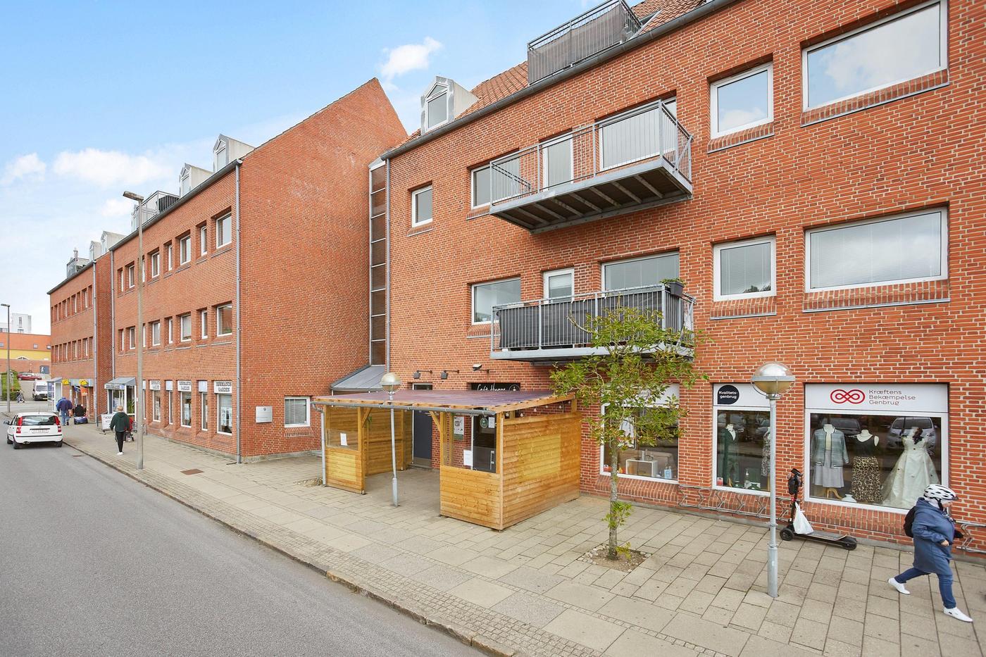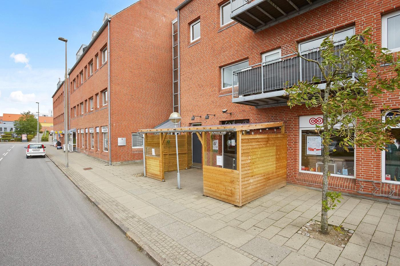 Butikslejemål i velbeliggende ejendomskompleks i Horsens Midtby, nabo til rådhuset, få meter fra hovedstrøget Søndergade og tæt ved havneområdet, Bilka m.v.