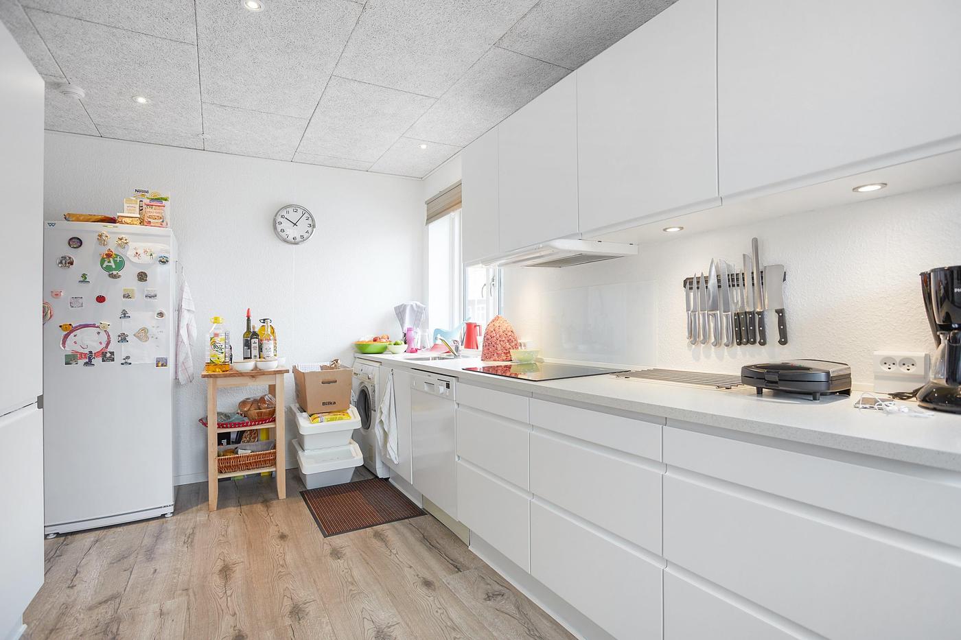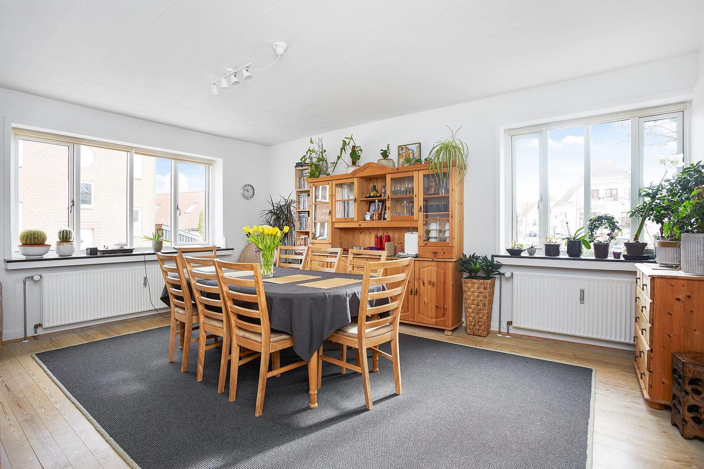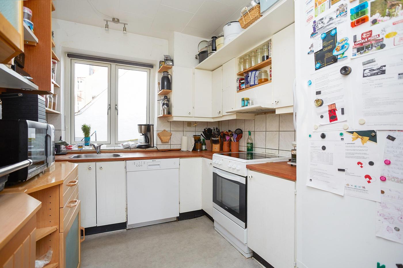1.sals lejligheden, som er ombygget i 2016 med bl.a. nyt køkken, indeholder: entre, stor stue, soveværelse, køkken, badeværelse og 3 værelser. Til lejemålet hører desuden 2 kælderrum og garage.