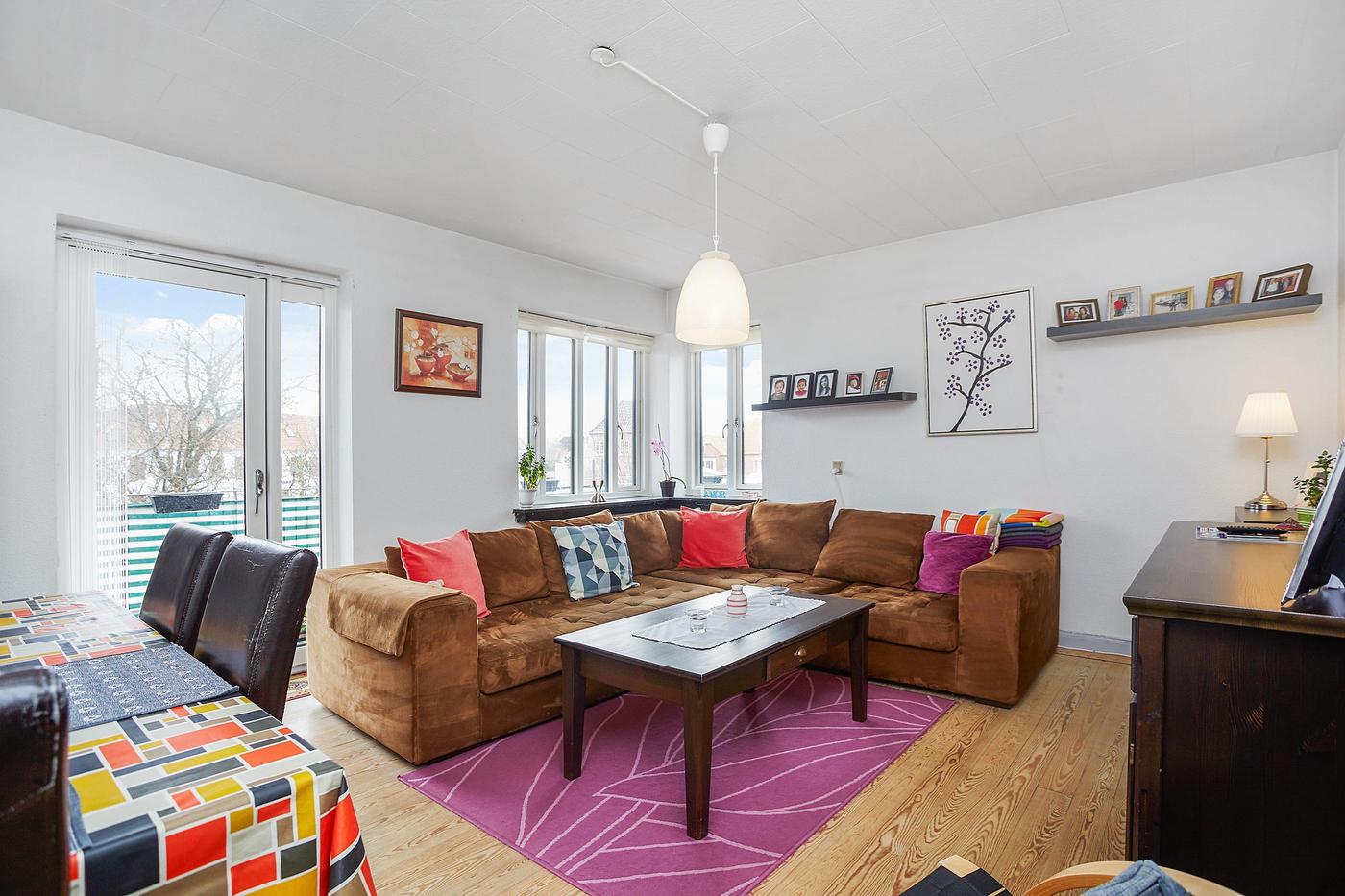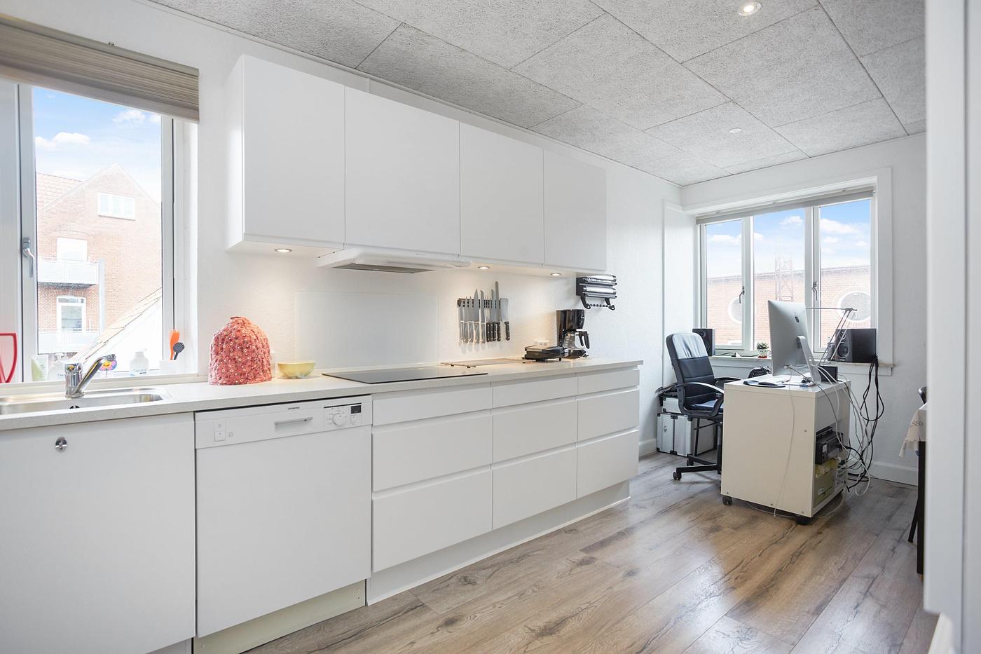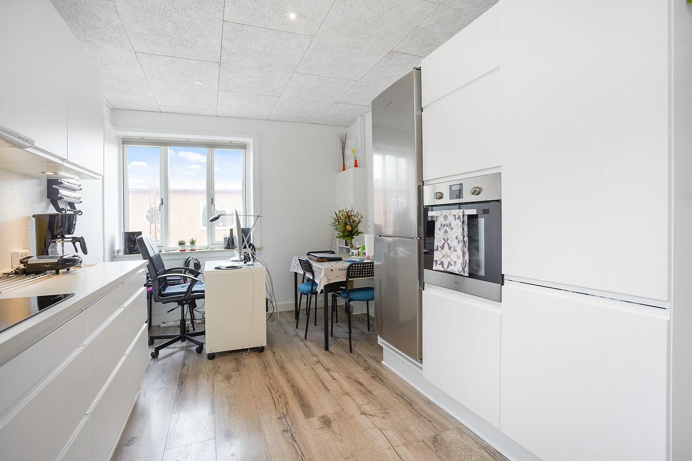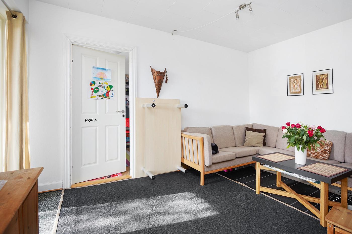 1.sals lejligheden, som er ombygget i 2016 med bl.a. nyt køkken, indeholder: entre, stor stue, soveværelse, køkken, badeværelse og 3 værelser. Til lejemålet hører desuden 2 kælderrum og garage.