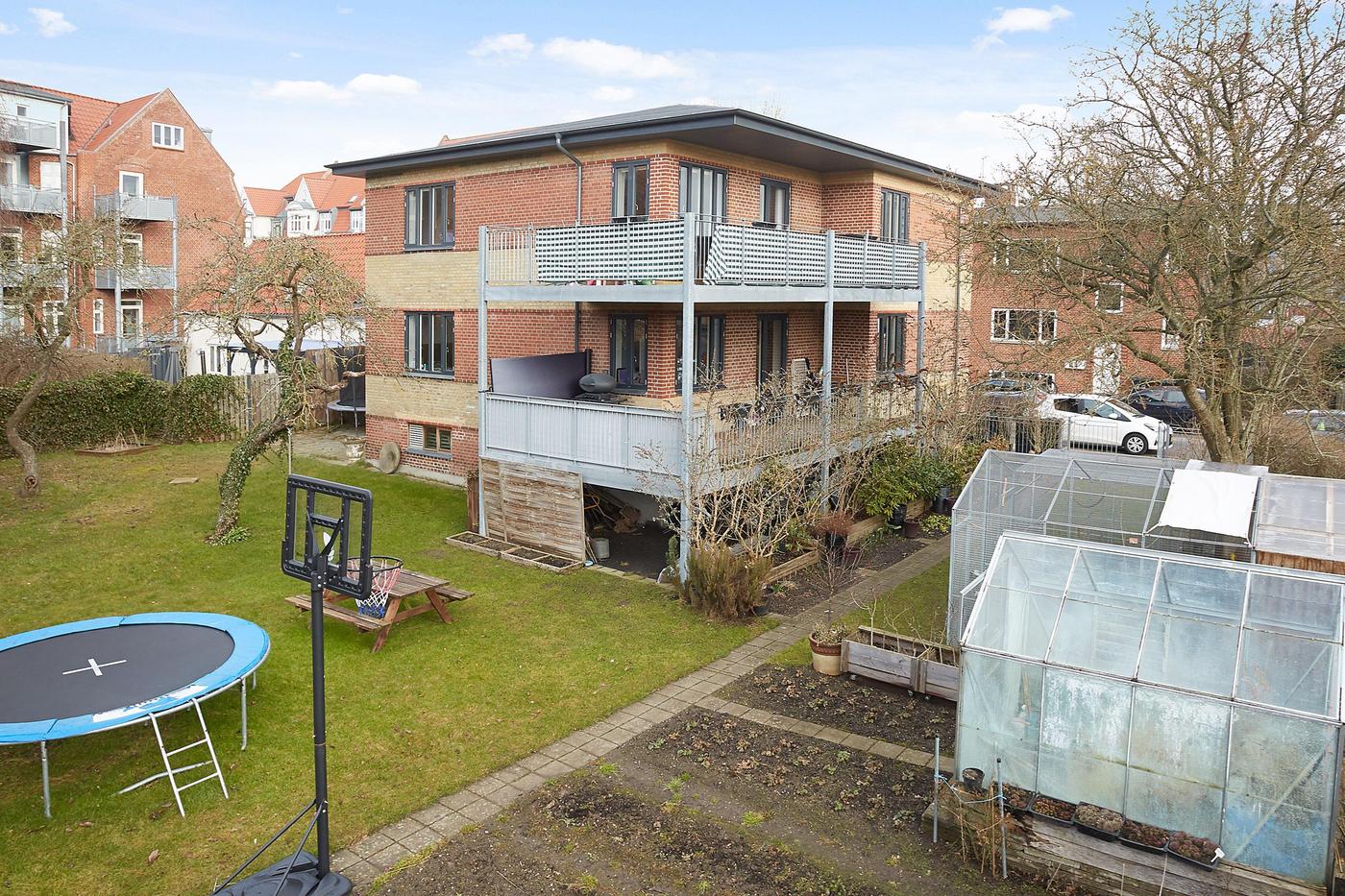Stor, flot have. Lejerne har særskilt brugsret til hver deres del af haven.