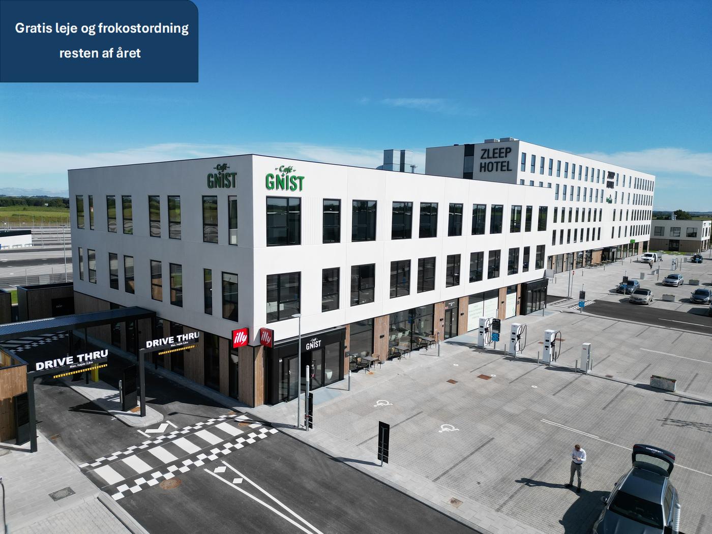 Der forefindes naturligvis parkeringspladser med ladestandere til jeres medarbejdere.