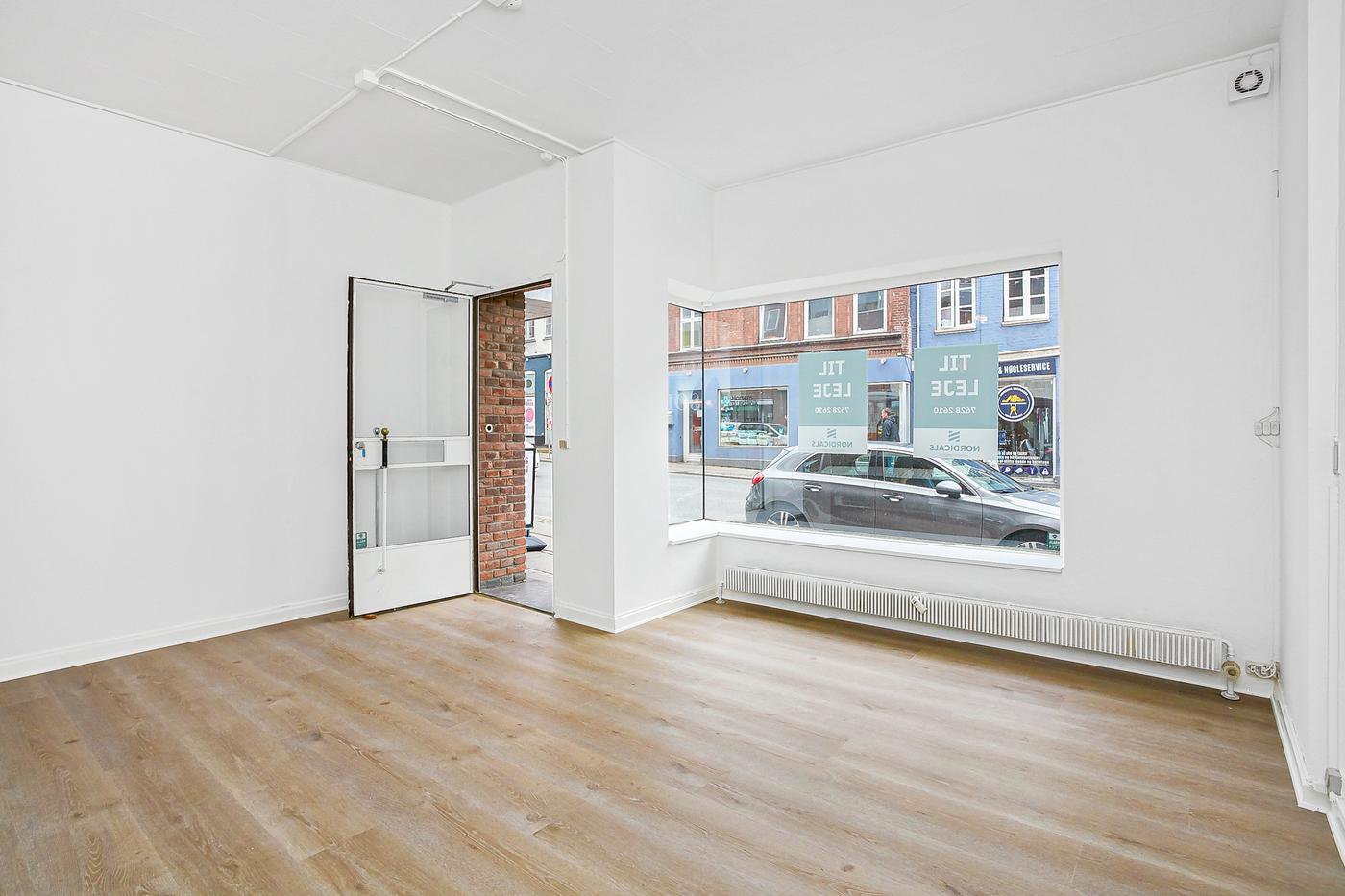 Lejemålet, som er på ca. 64 m², er beliggende tæt ved Torvet og hovedstrøget, Søndergade på en af Horsens mest trafikerede gader. Til lejemålet hører 17 m² kælderrum.