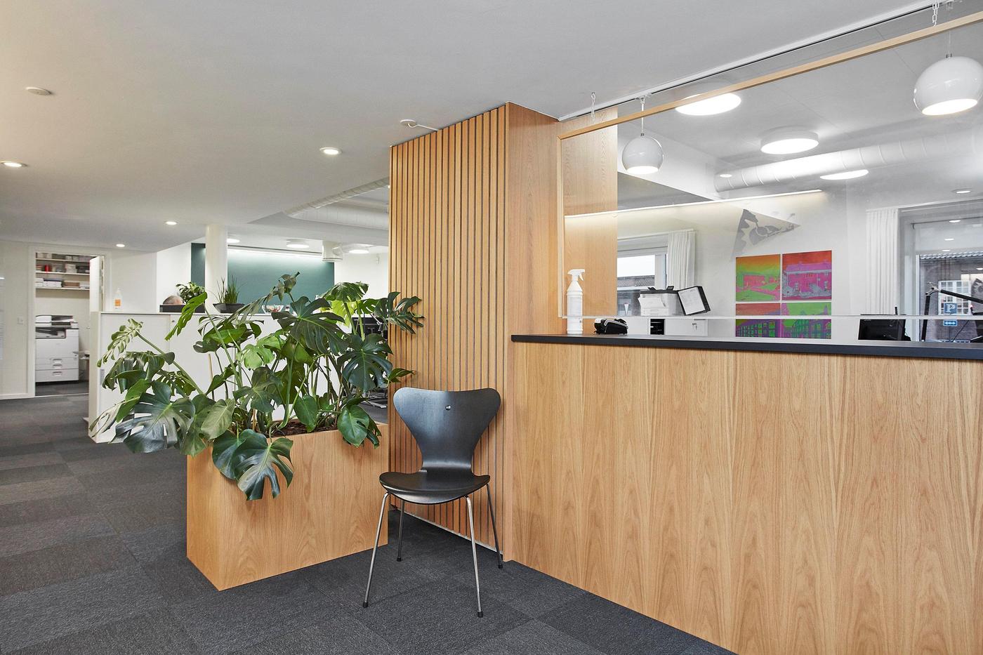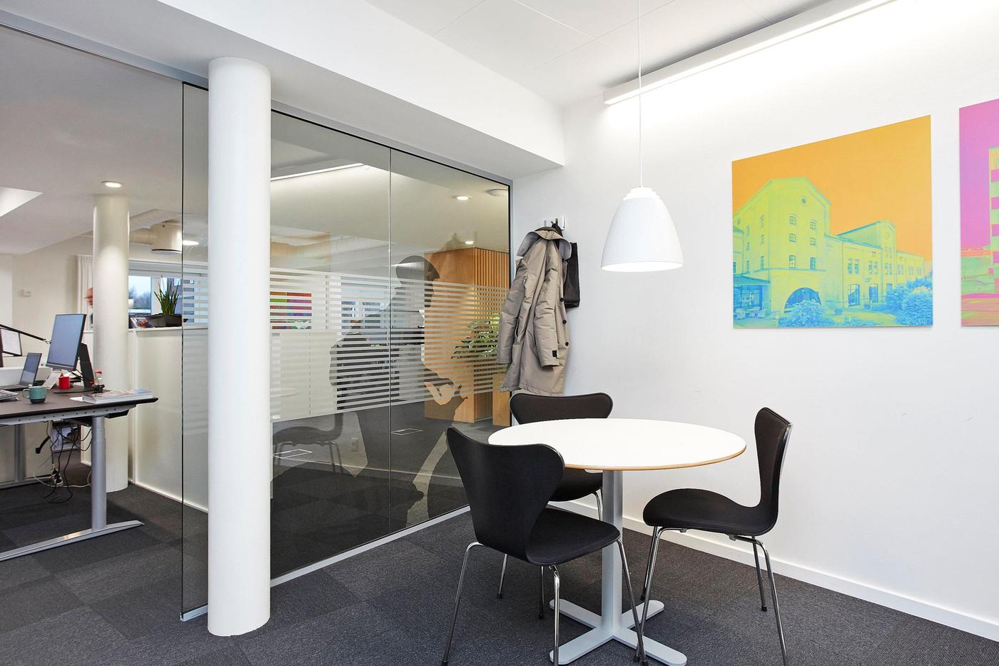 Lejemålet, som er på 256 m² består af reception med adgang til åbent storrumskontor. Endvidere forefindes to separate kontorer, stort mødelokale, personalekøkken samt to toiletter med badefaciliteter.
