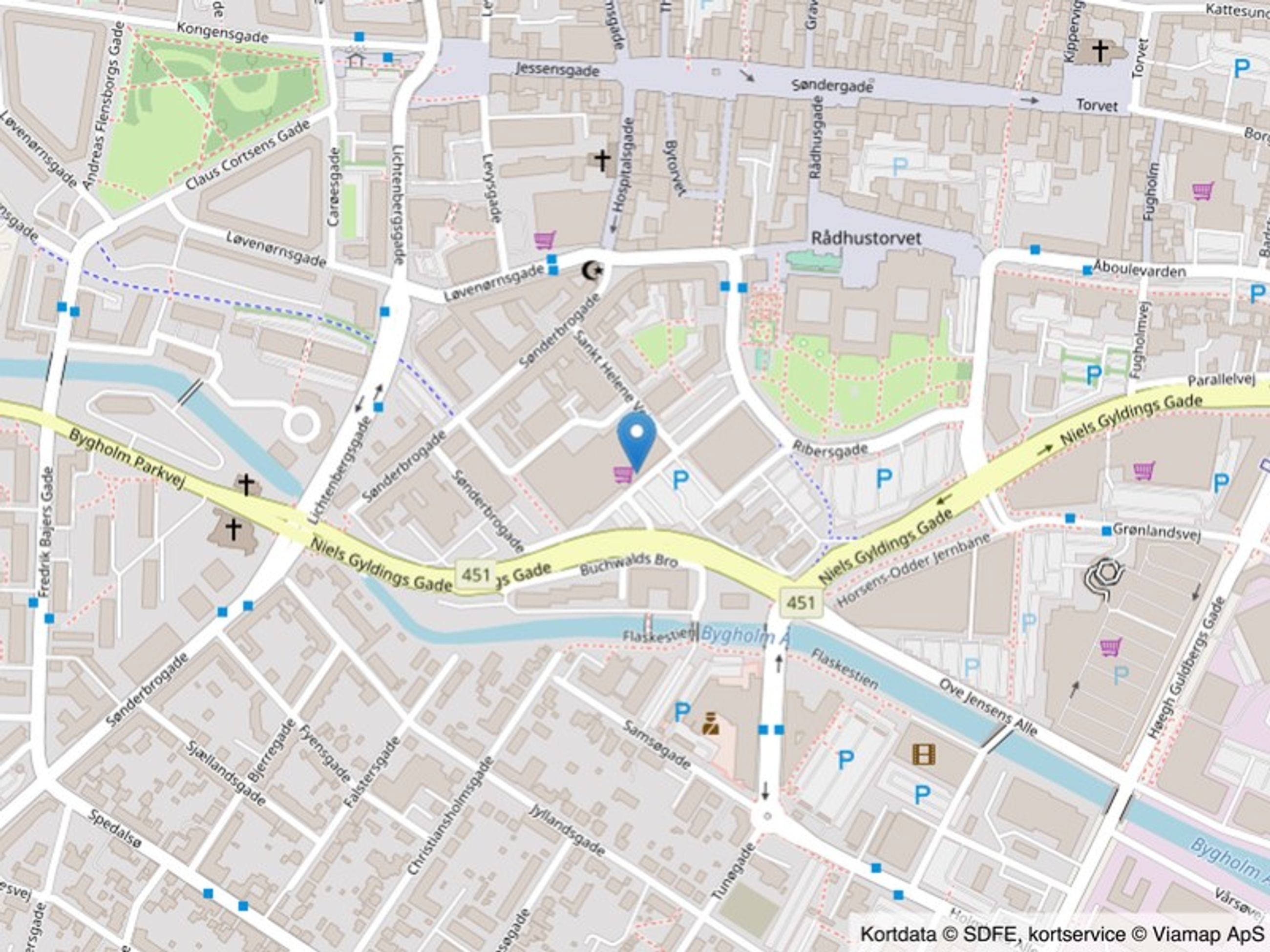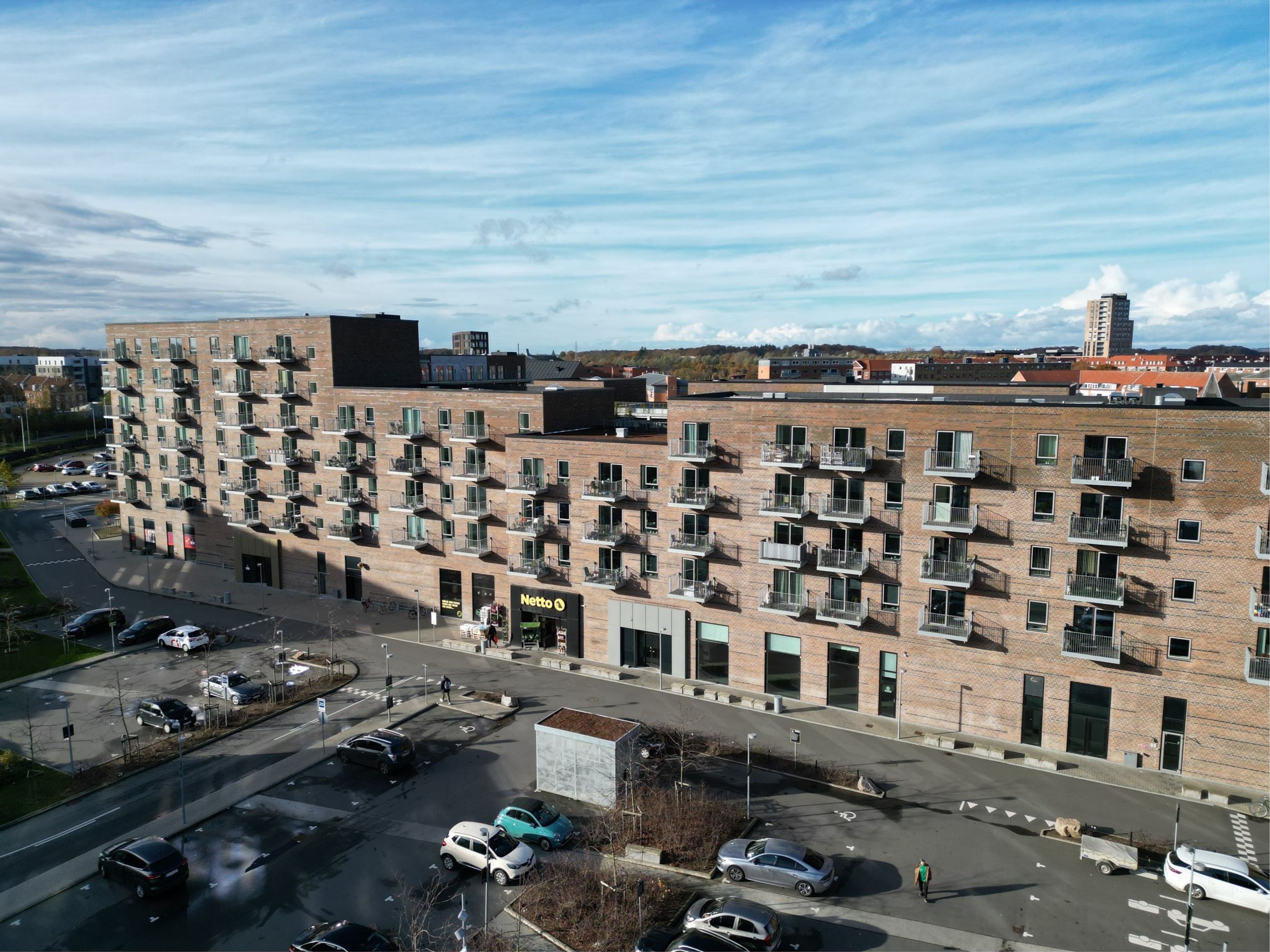 Beliggende ca. 400 m fra hovedstrøget og ca. 500 m fra Bilka-området.