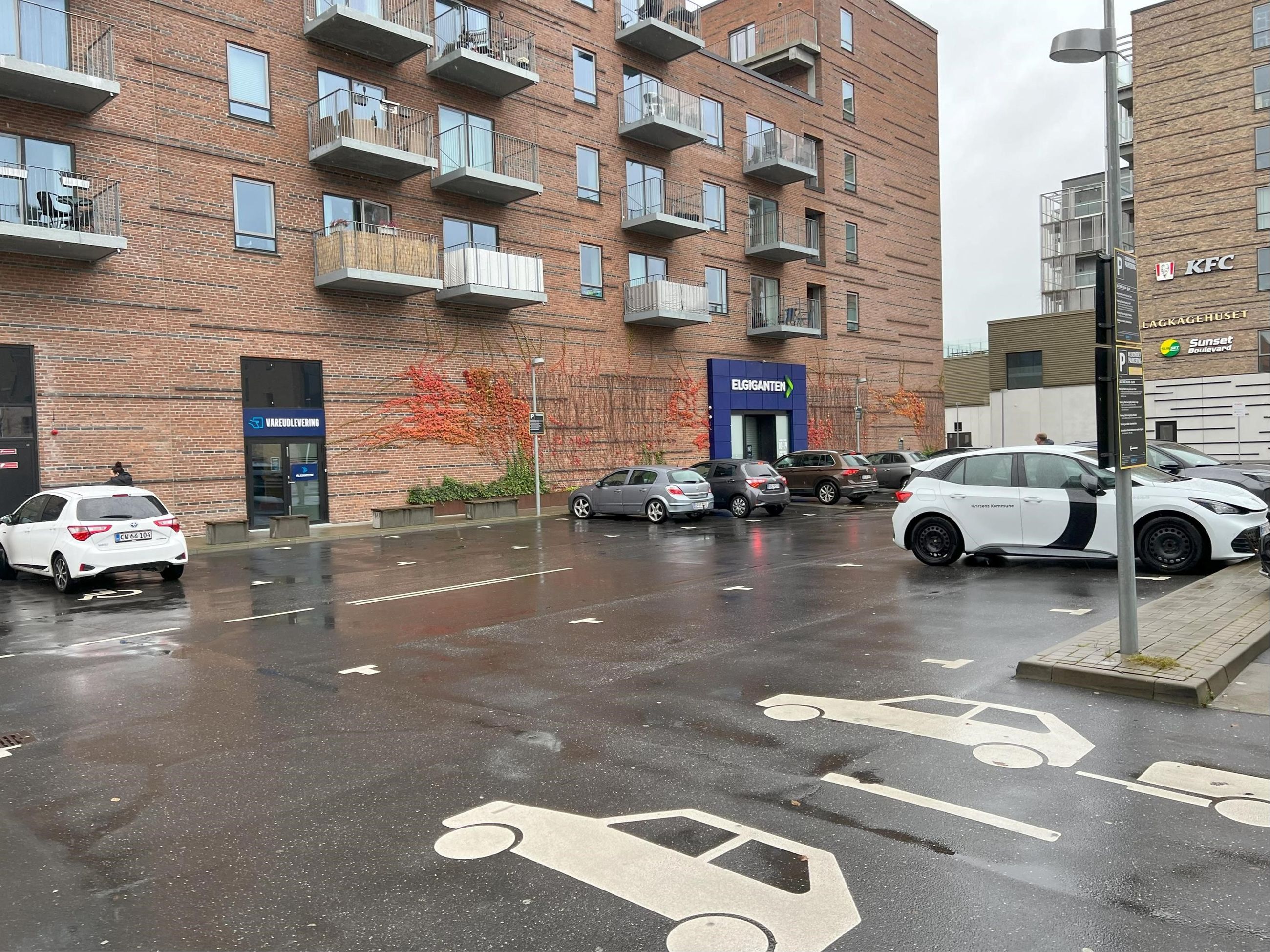 Gode parkeringsforhold, som gør at kunderne kan holde foran butikken.