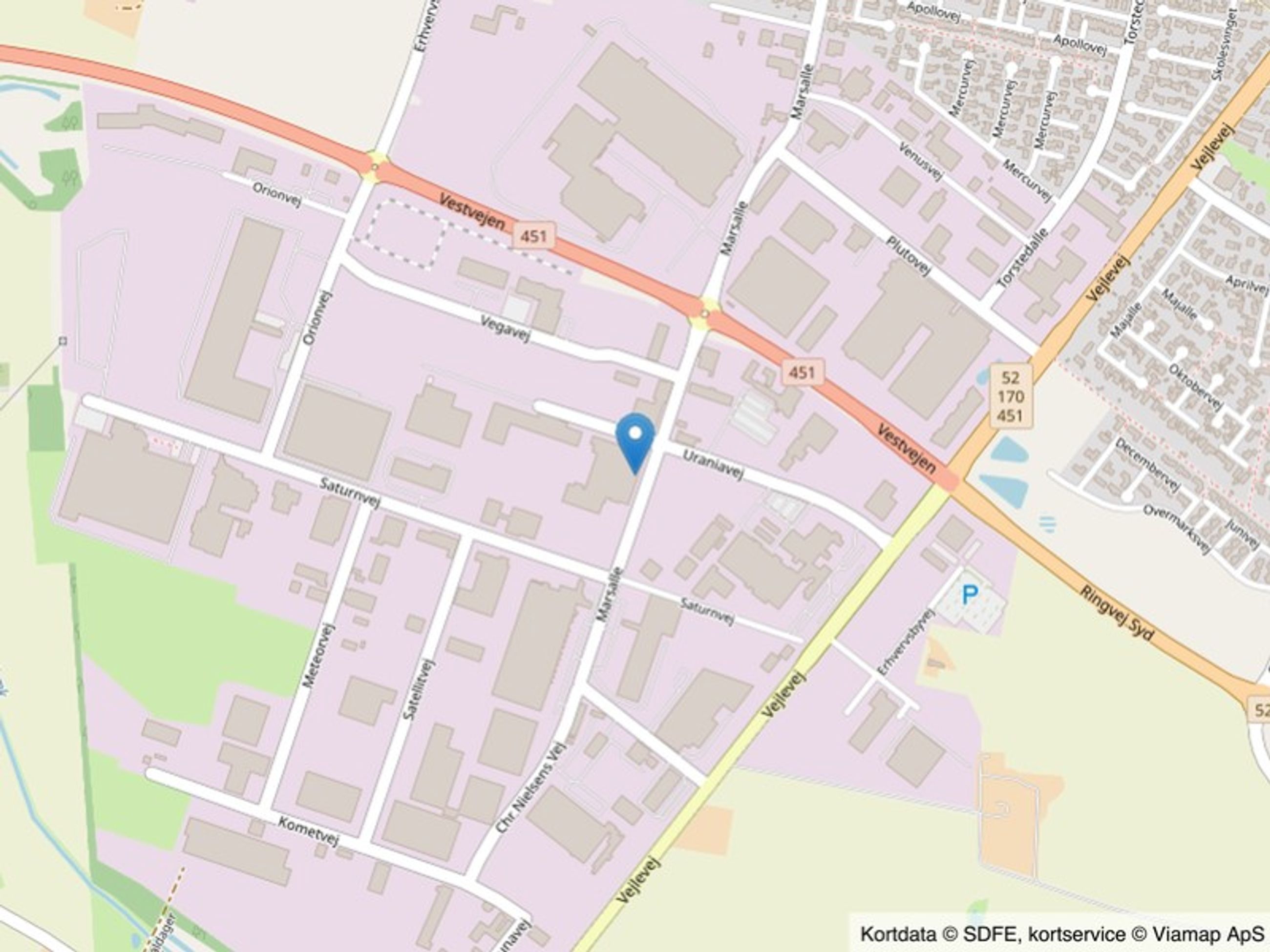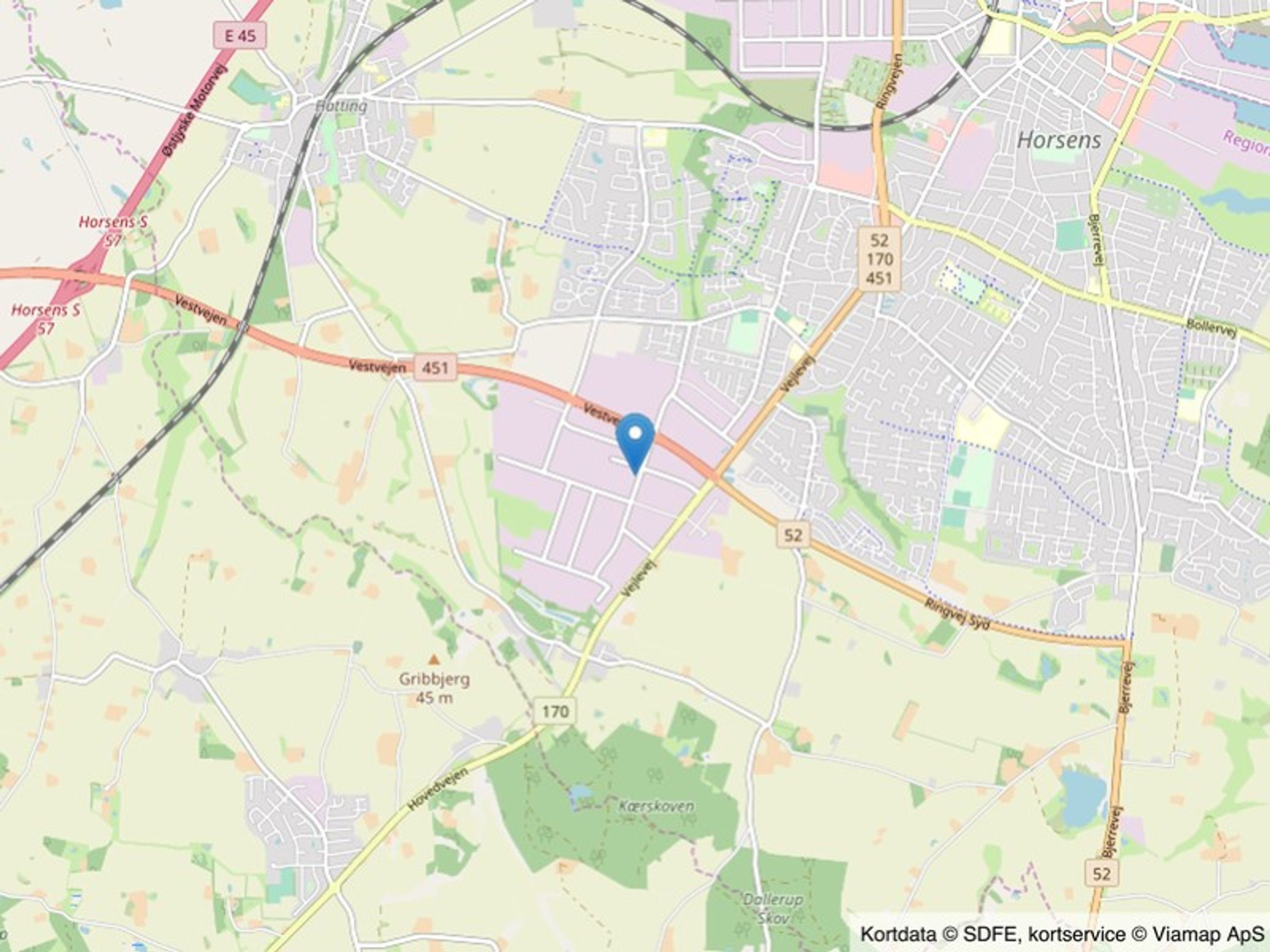 2 lagerhaller med god beliggenhed i industriområde Horsens Syd i umiddelbar nærhed af Vestvejen og Vejlevej, ca. 4 km fra motorvejstilslutning og ca. 5 km fra Horsens midtby.