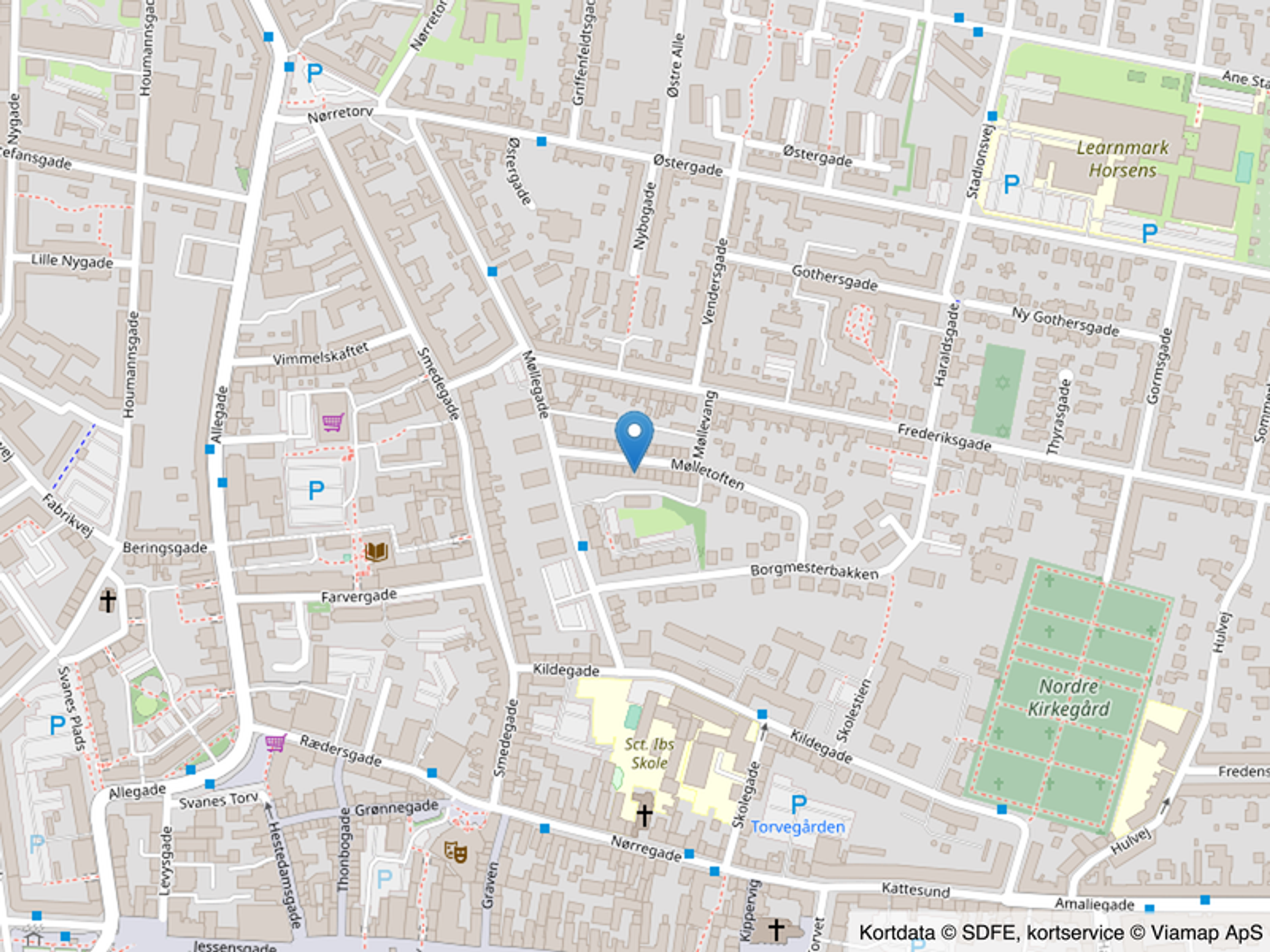 God beliggenhed i gåafstand fra Lunden, midtbyen, banegården og Campus Horsens.