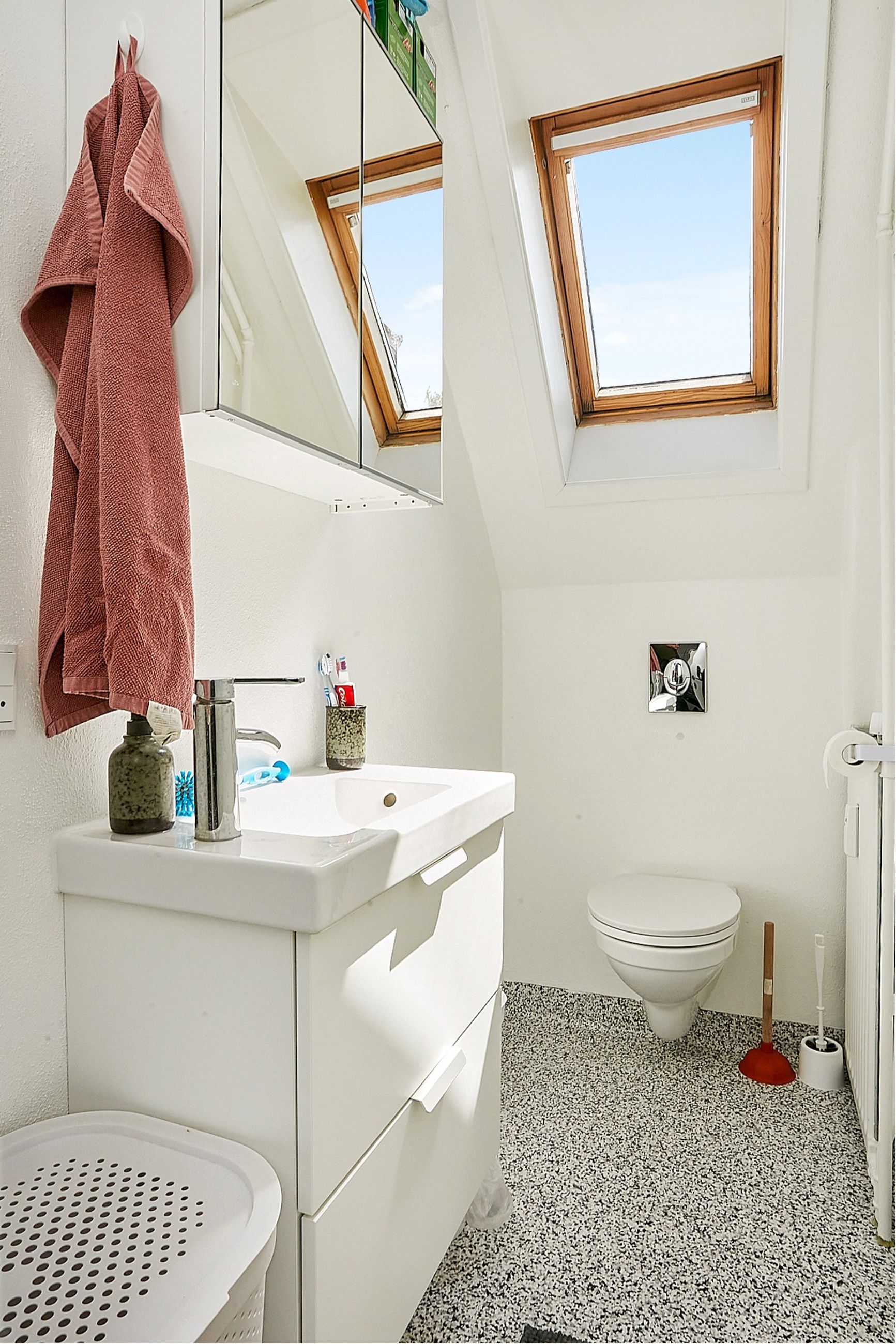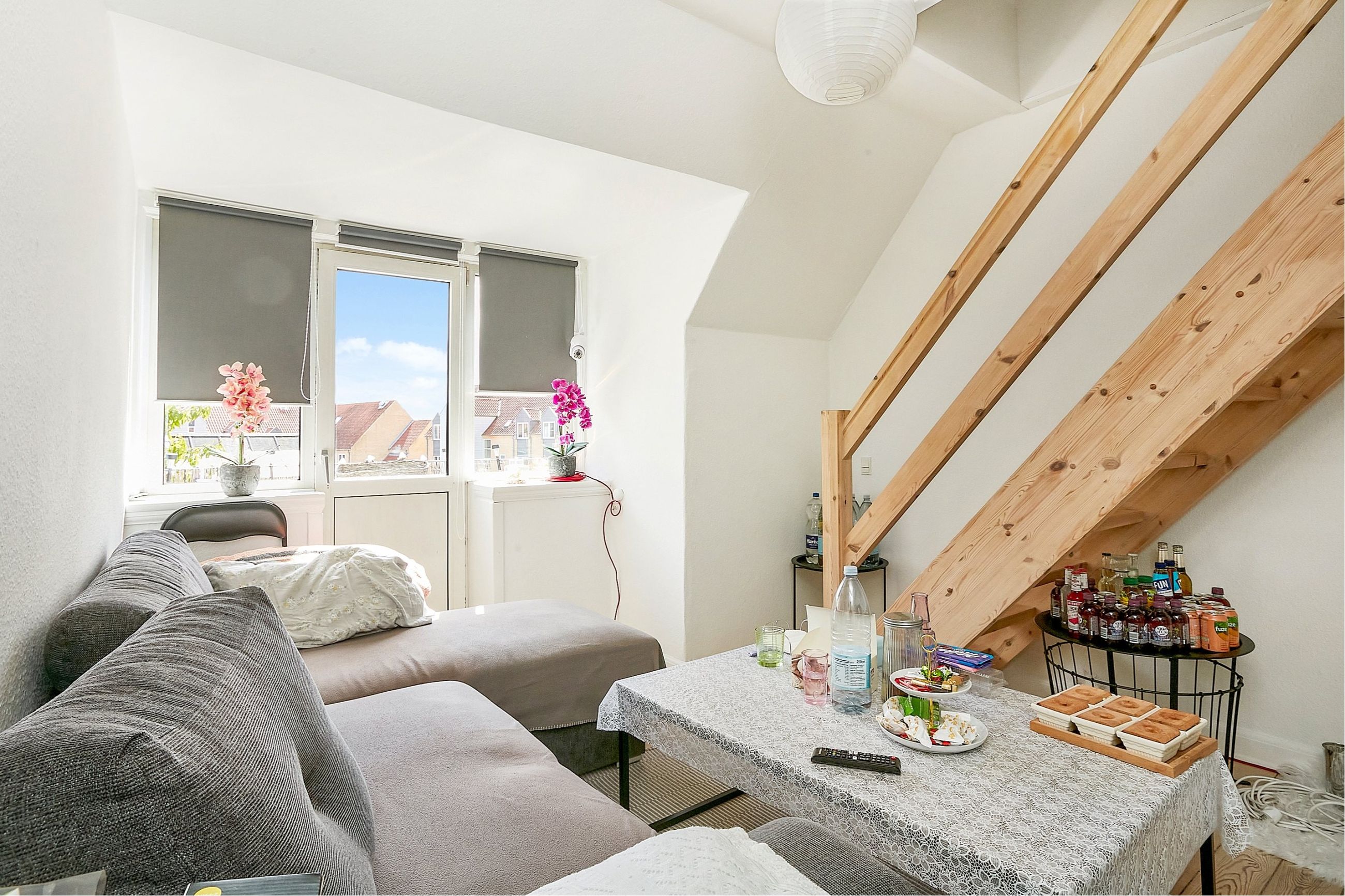 Stuelejligheden har egen træterrasse og taglejligheden har altan mod haven.