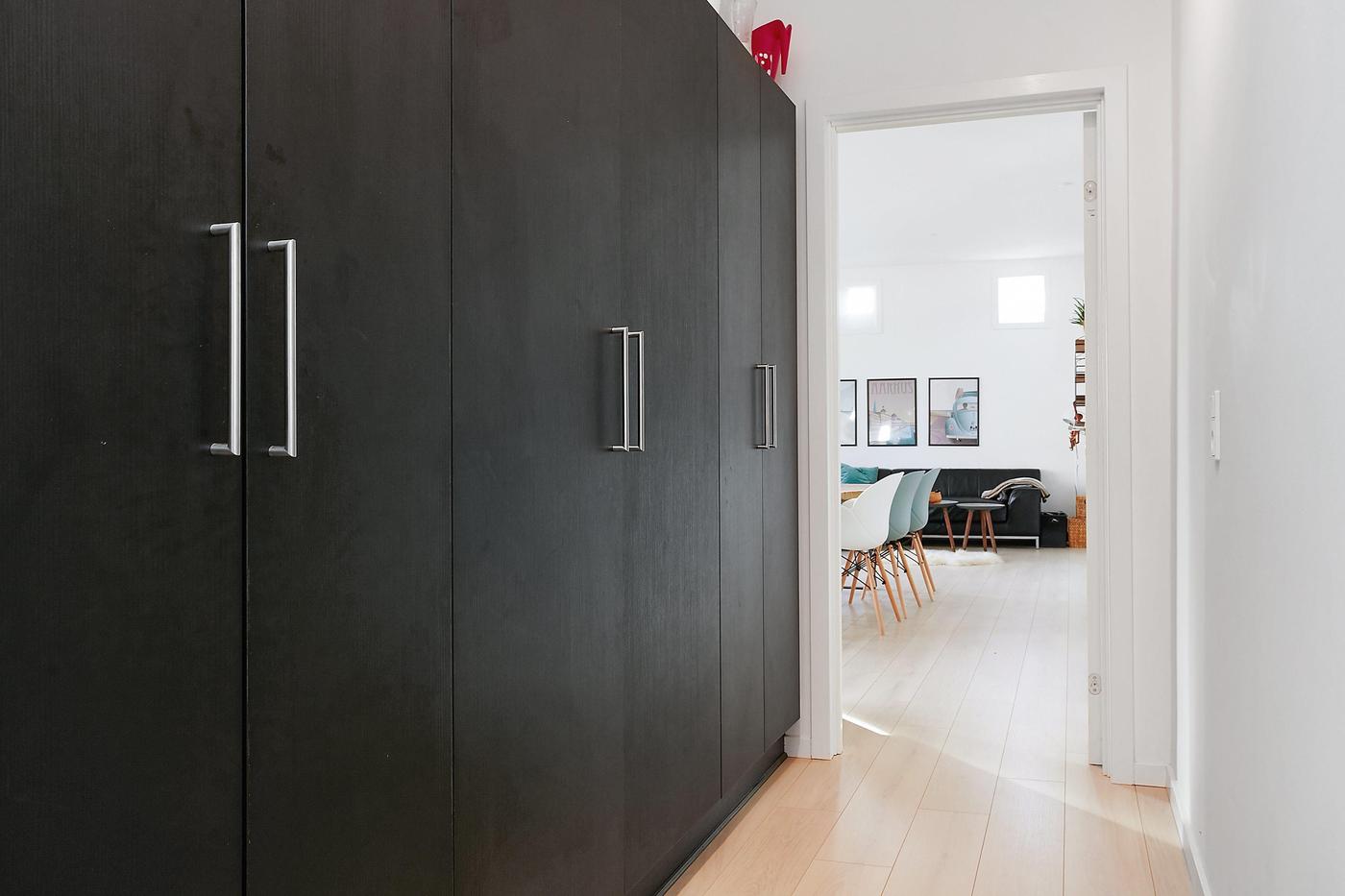 De 8 lejligheder er fordelt på 2 stk. 2-værelses lejligheder og 6 stk. 3-værelses lejligheder. Der forefindes mindre kælderrum til hver lejlighed.