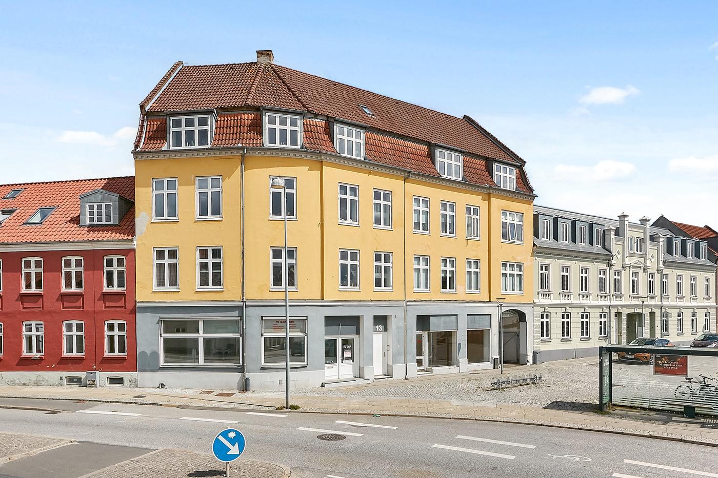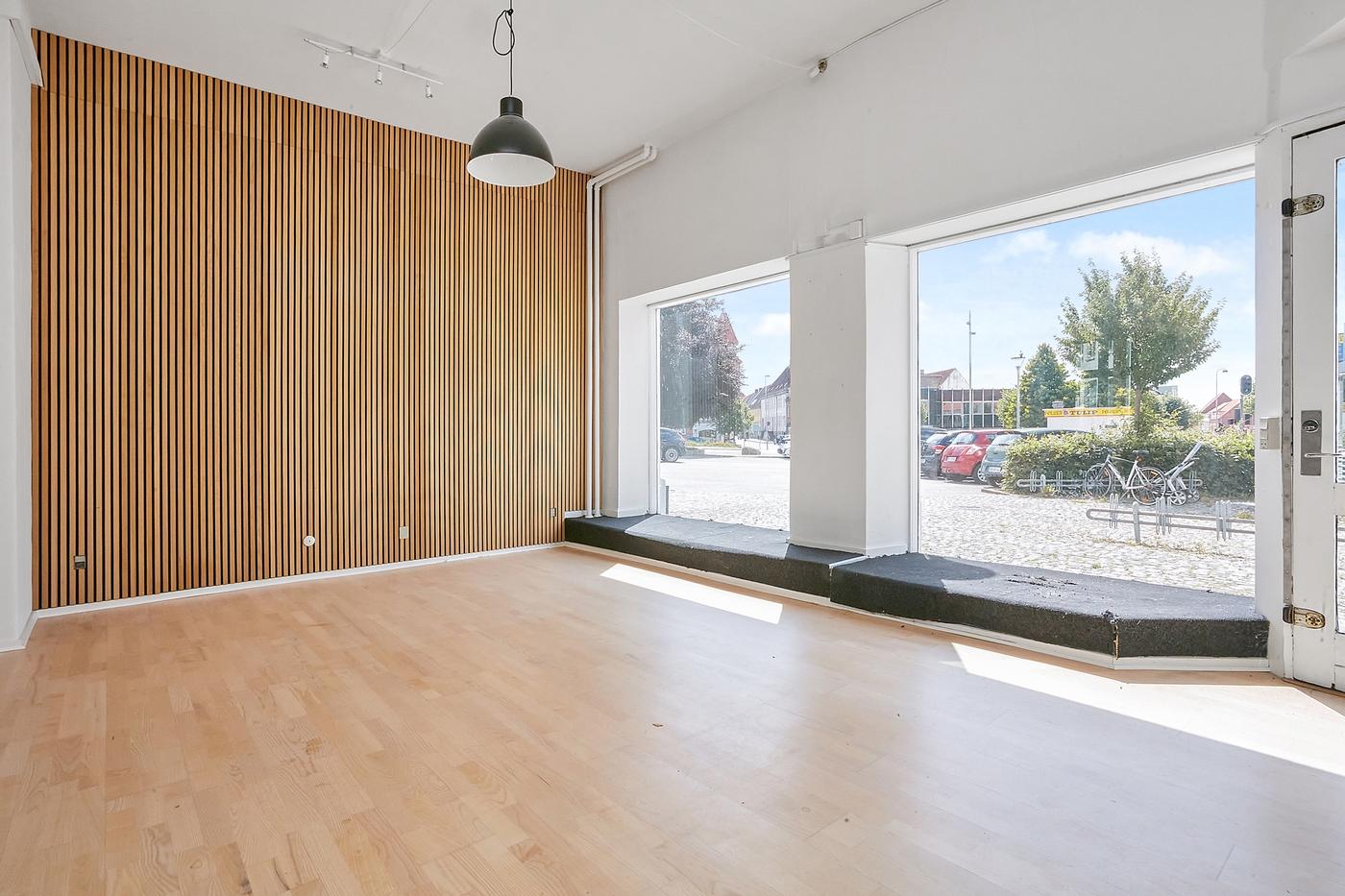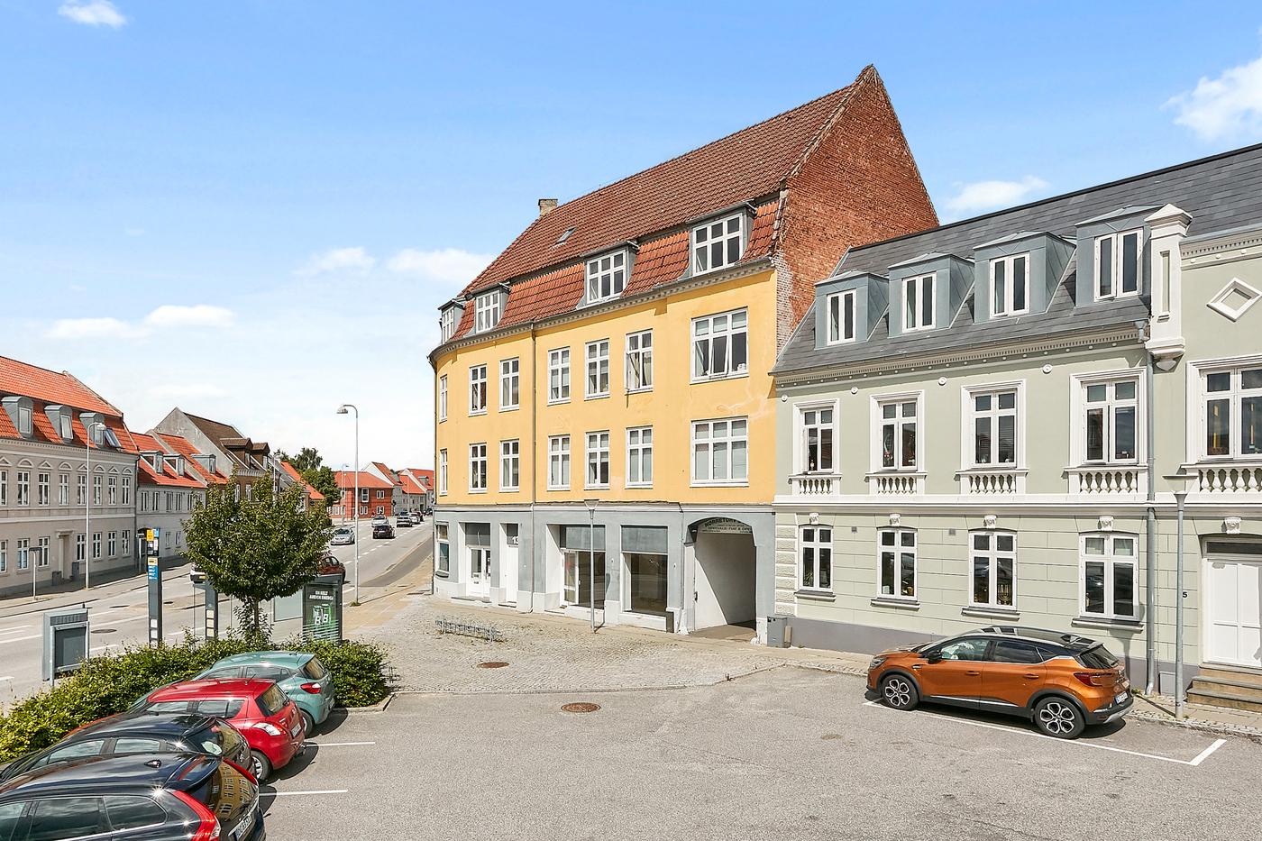 Med naboer som apotek, bager og dagligvarebutikker samt nærhed til Forum Horsens og Horsens Station, får du en placering med både liv og bekvemmelighed.