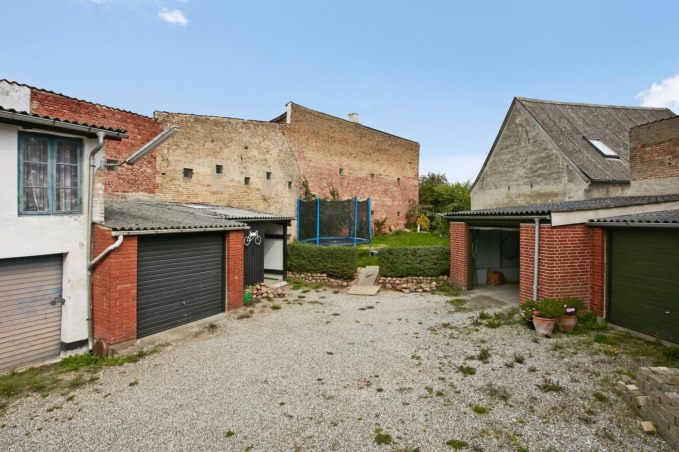 Fin mindre have samt 5 garager og parkeringsareal i gården.