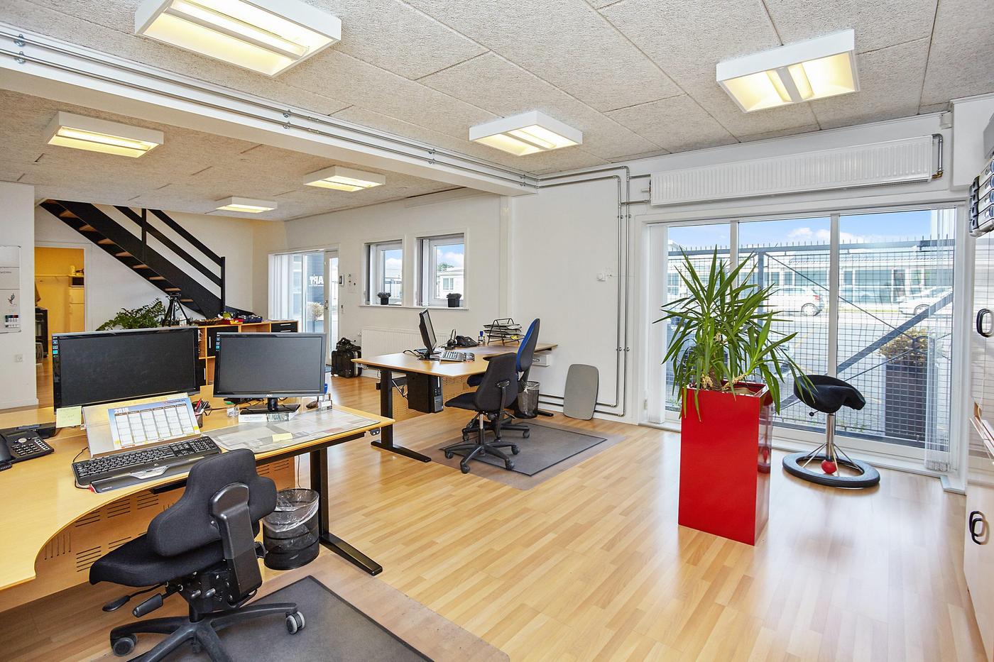 Lejemålet er på i alt ca. 176 m² fordelt på stue- og 1.sal. Stueplan på ca. 86 m² indeholder: indgang til stort kontorlandskab på ca. 62 m² med trappe til 1.sal, frokostrum med thekøkken, badeværelse og teknikrum. 1.sal på ca. 90 m² indeholder: repos, 3 kontorlokaler på hhv. ca. 22 m², 29 m² og 30 m².