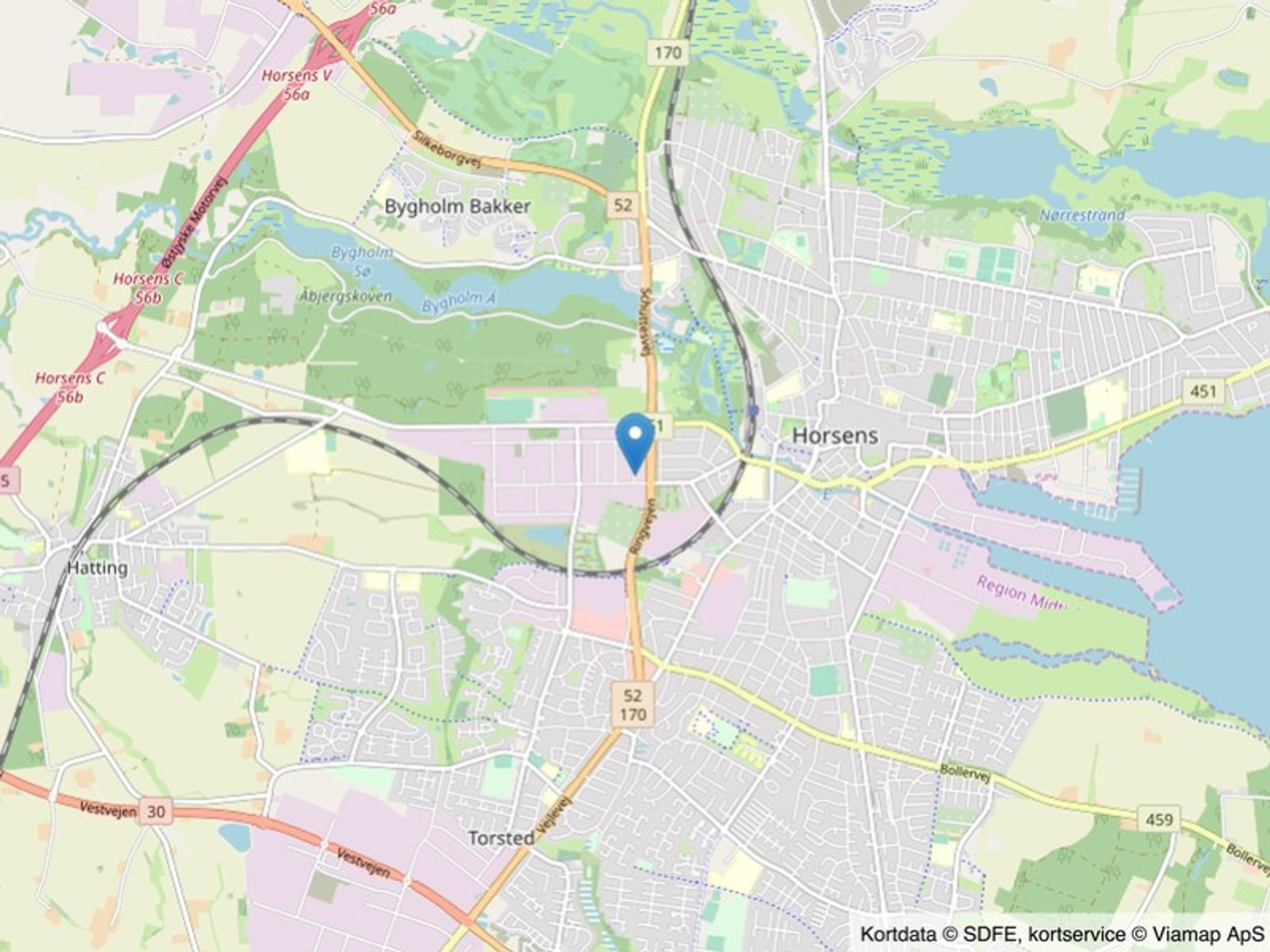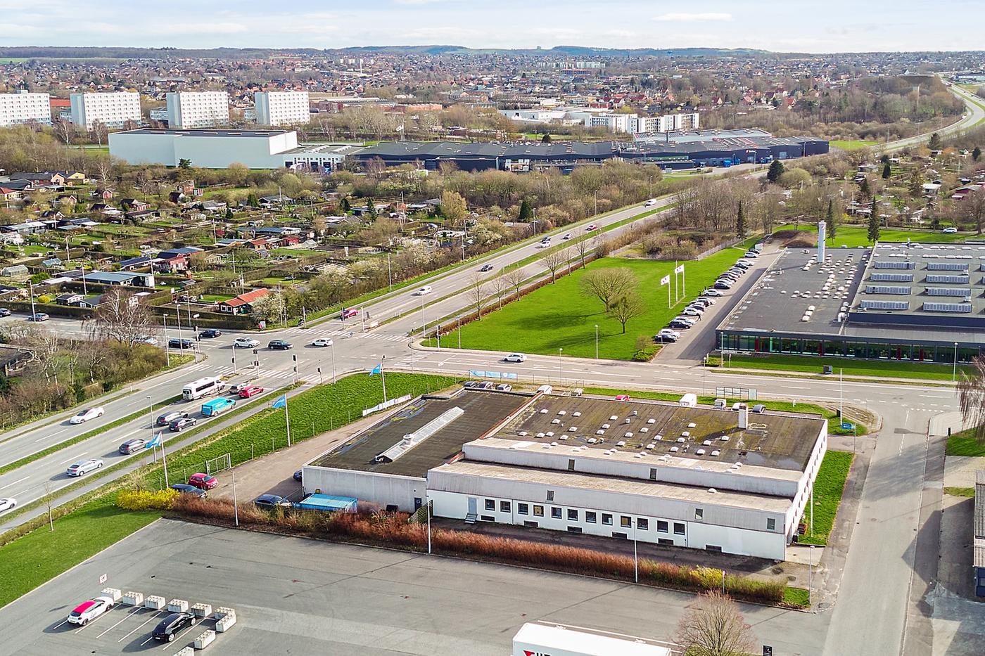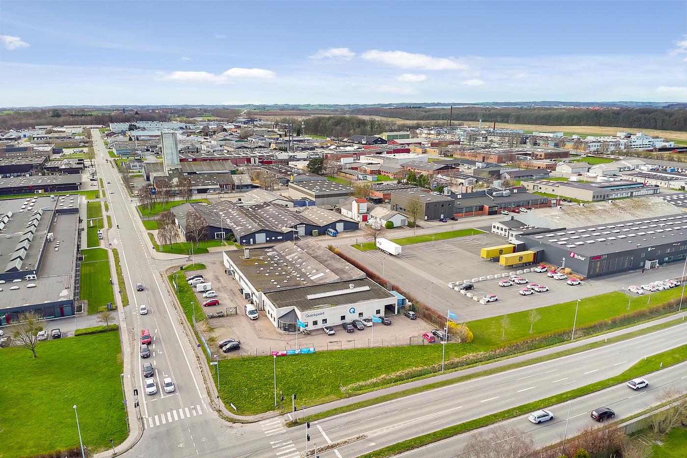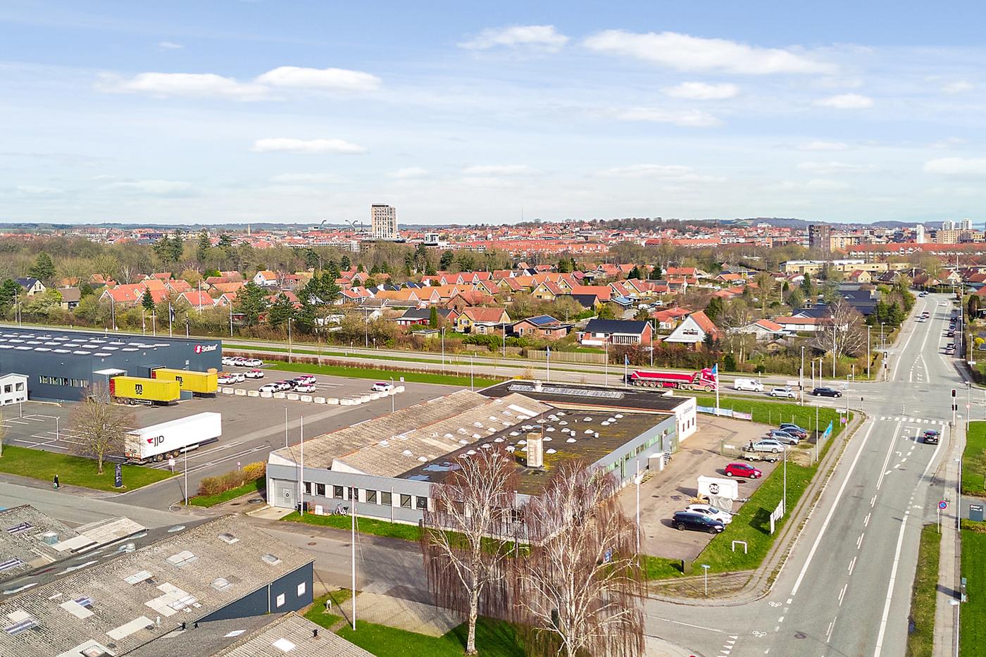 Ejendommen er beliggende i et attraktivt erhvervsområde kun ca. 1,5 km fra Horsens Centrum.