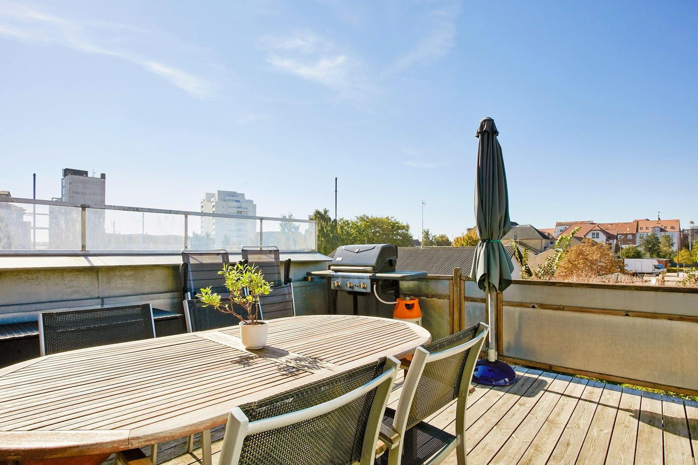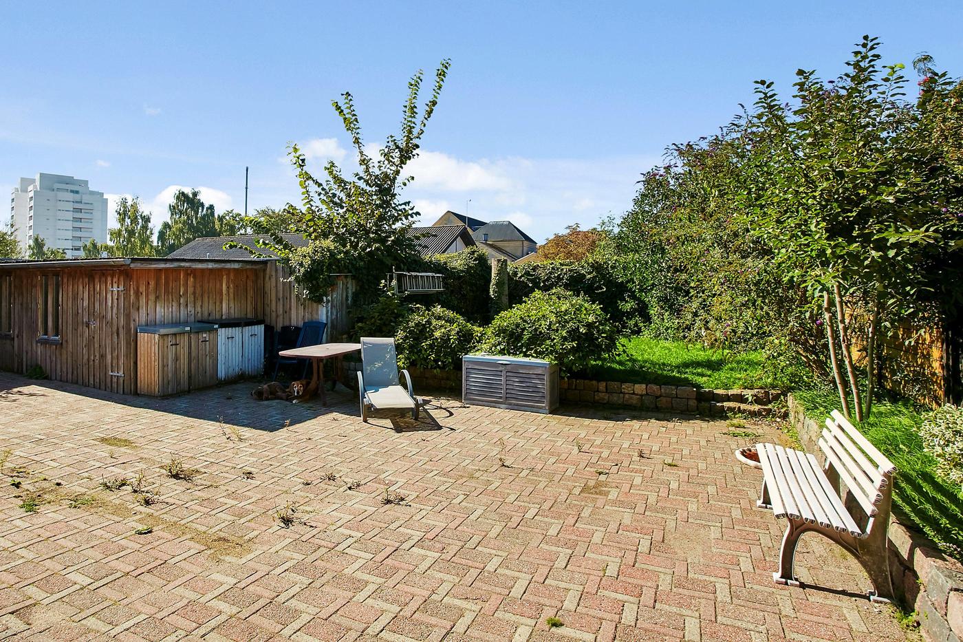 Parkeringsmuligheder på egen grund, hvilket er et stort plus i dette område.
