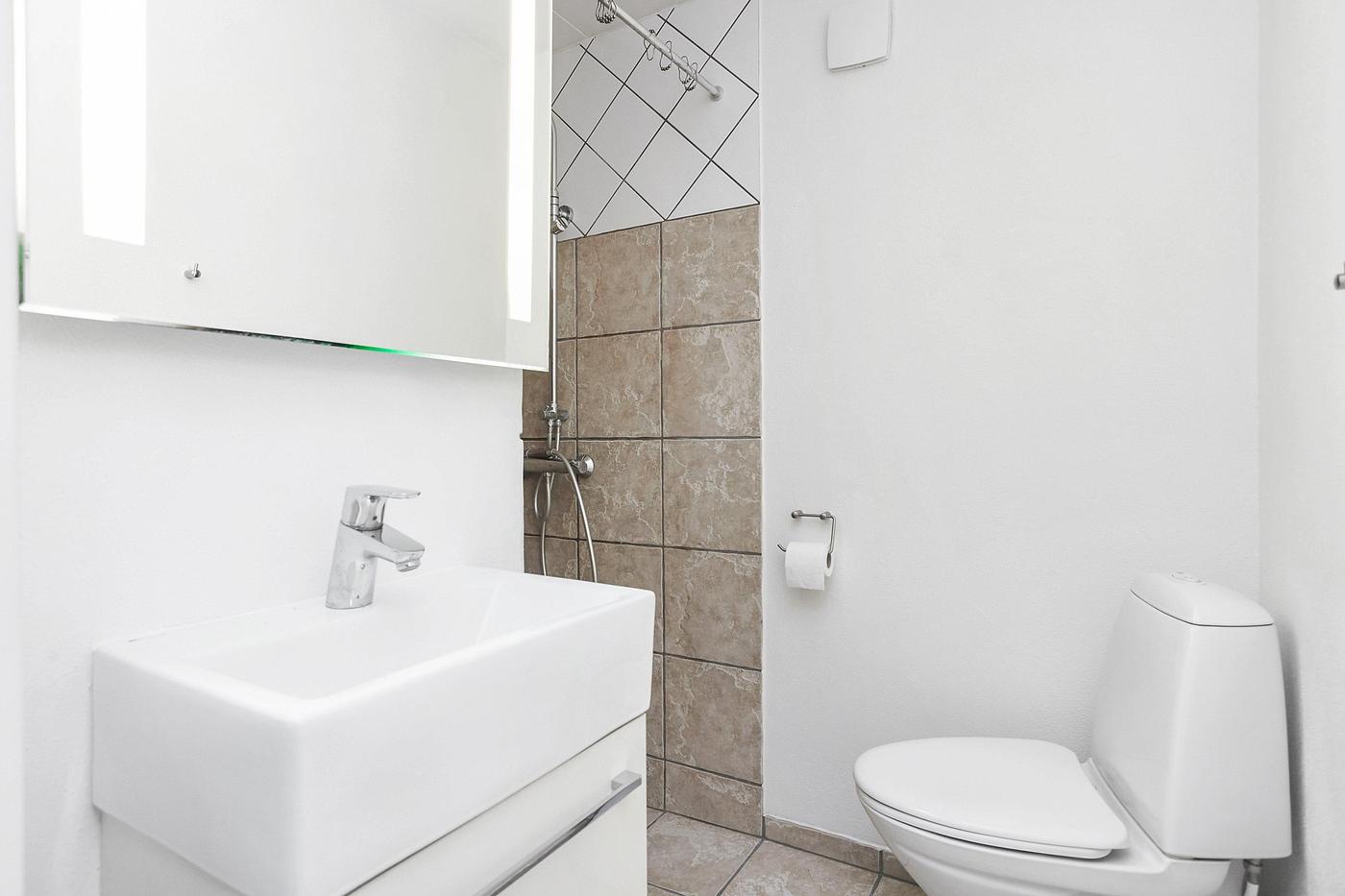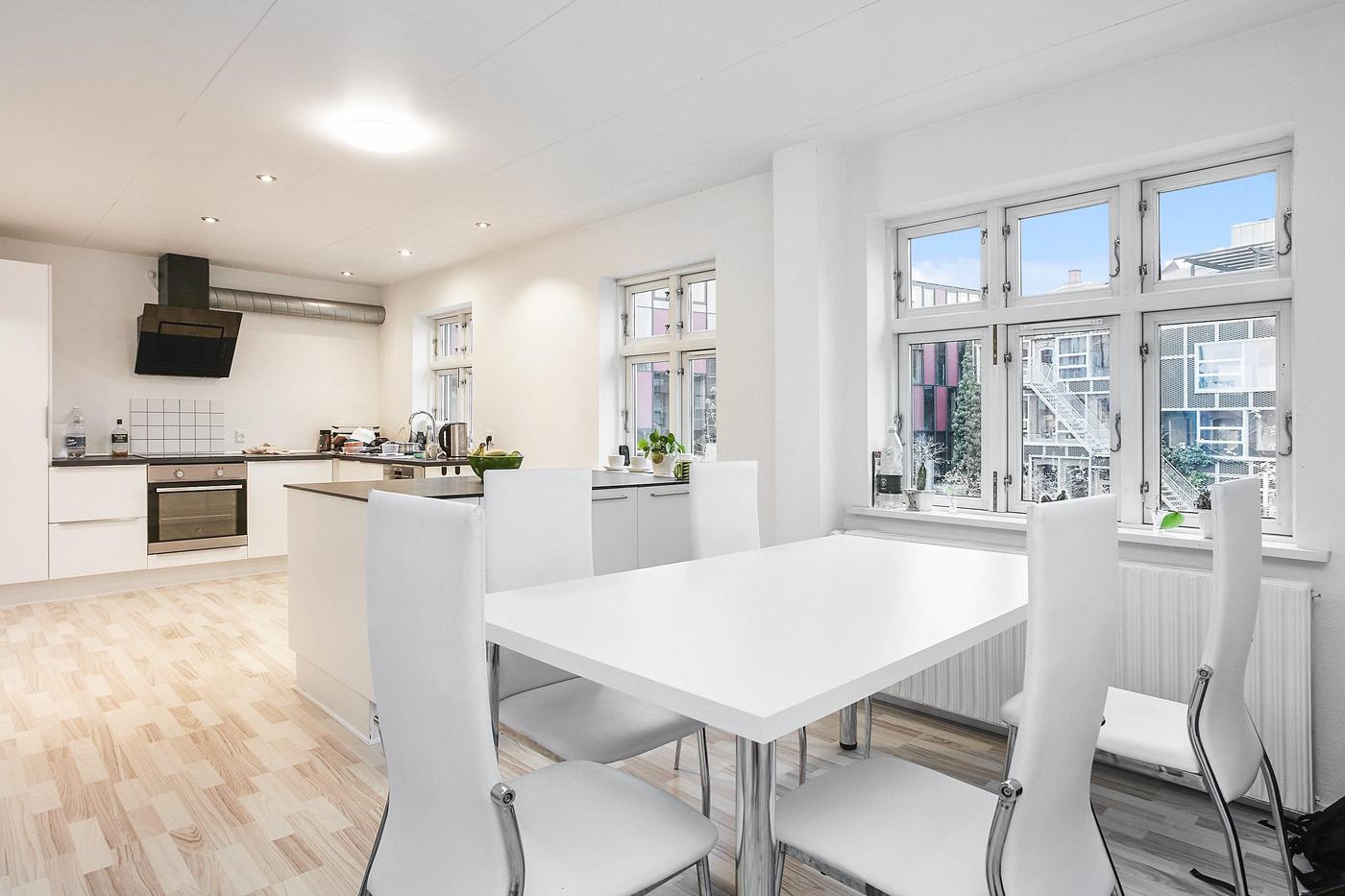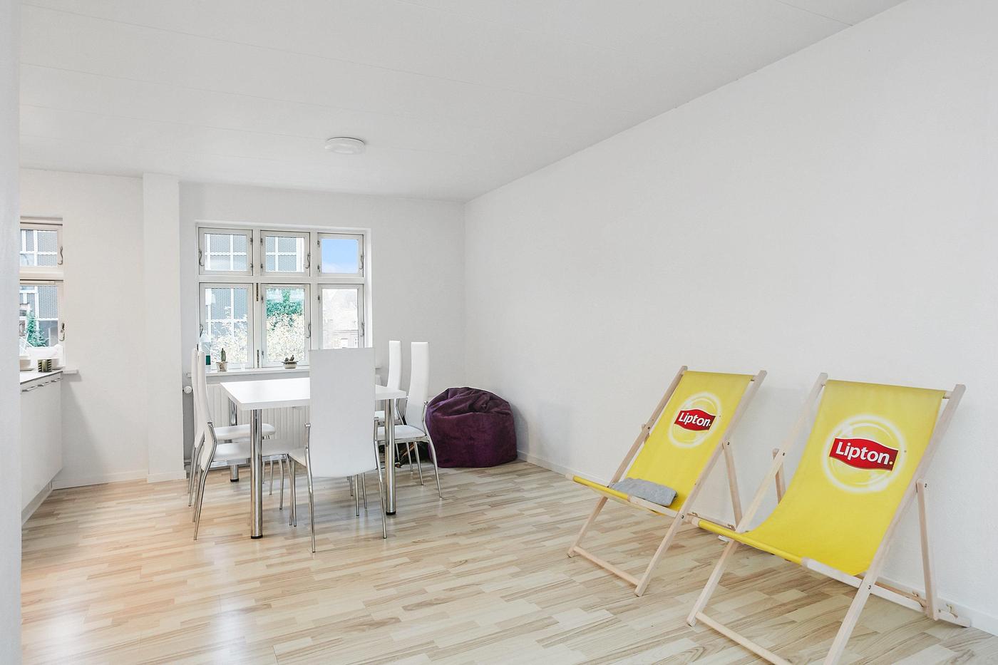 Boligareal 156 m² fordelt på 2 lejligheder: Stuelejlighed på 48 m² indeholdende køkken, værelse, stue og badeværelse. Lejlighed i 2 plan på 108 m². Der er egen entre i stueplan. 1.sal på 62 m² indeholder trapperepos, køkken og stue i åbent plan, badeværelse. Tagetagen på 46 m² består af repos, og 2 soveværelser. Kælder på 42 m² med 2 depotrum og fællesvaskerum med klinkegulv. Udlejer har opsat en vaskemaskine til hvert lejemål. Vaskemaskinerne er tilsluttet lejernes egne elmålere.