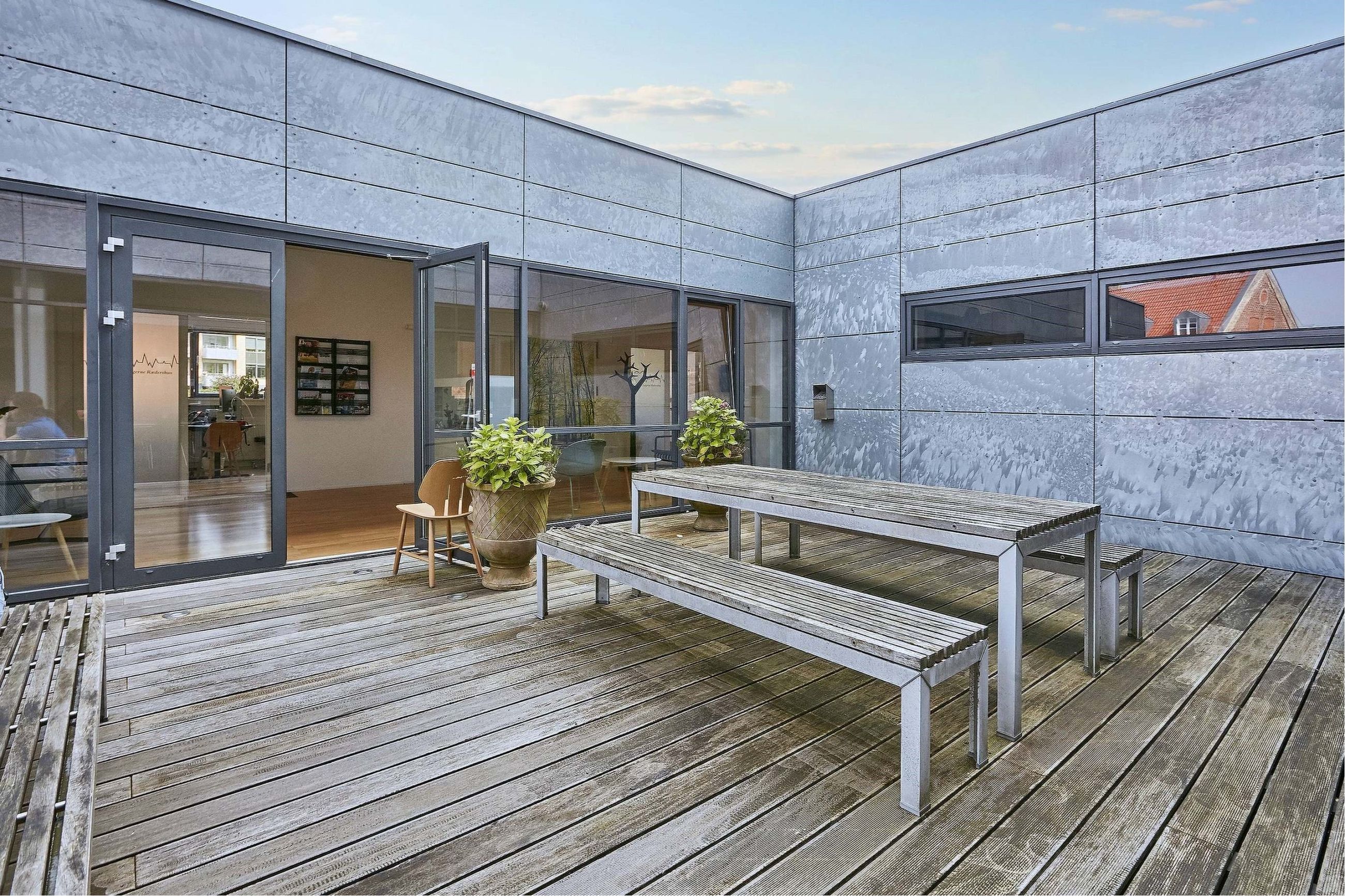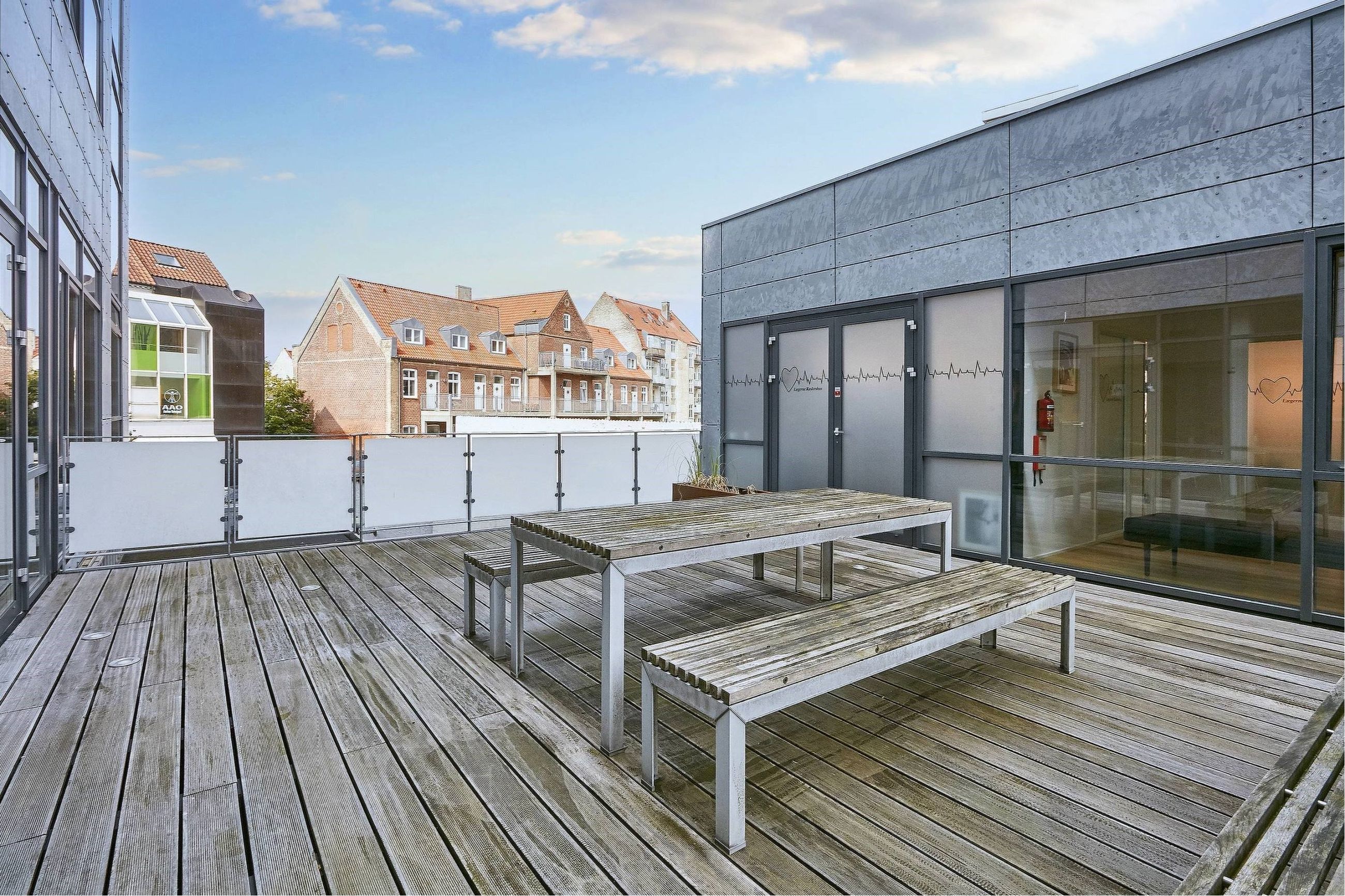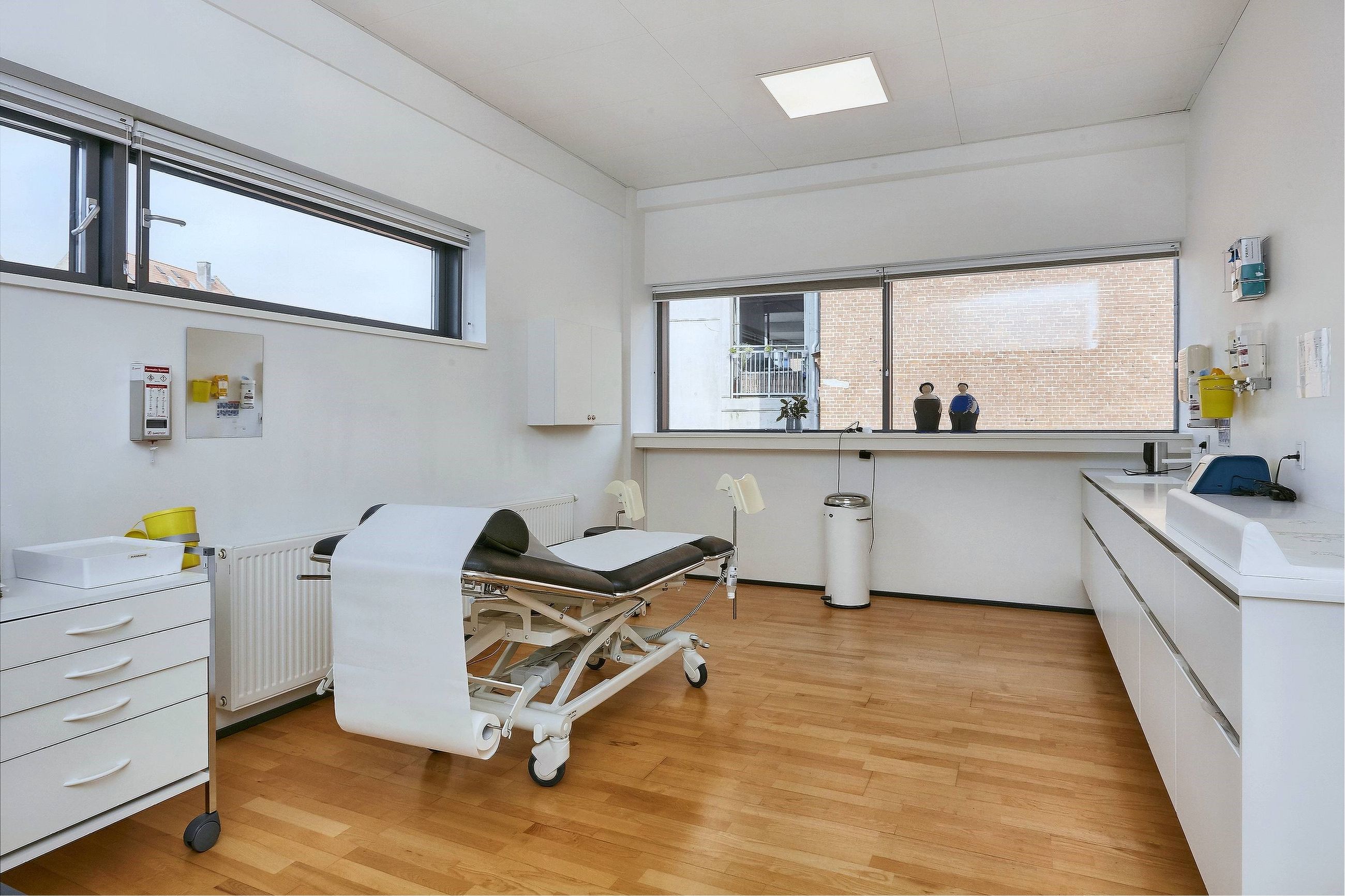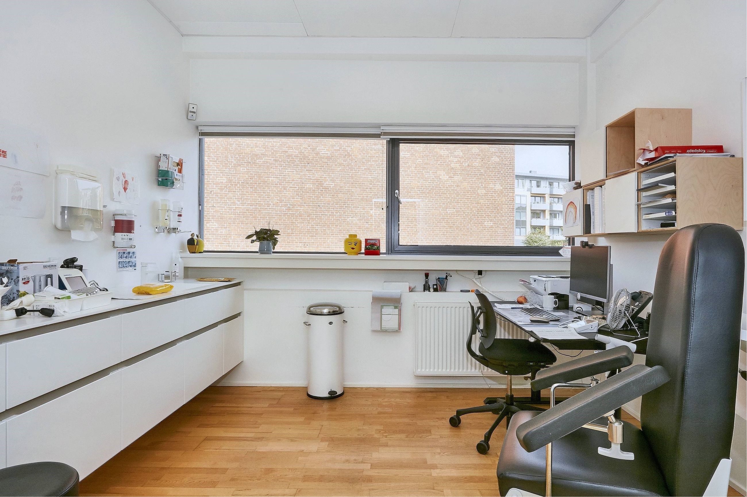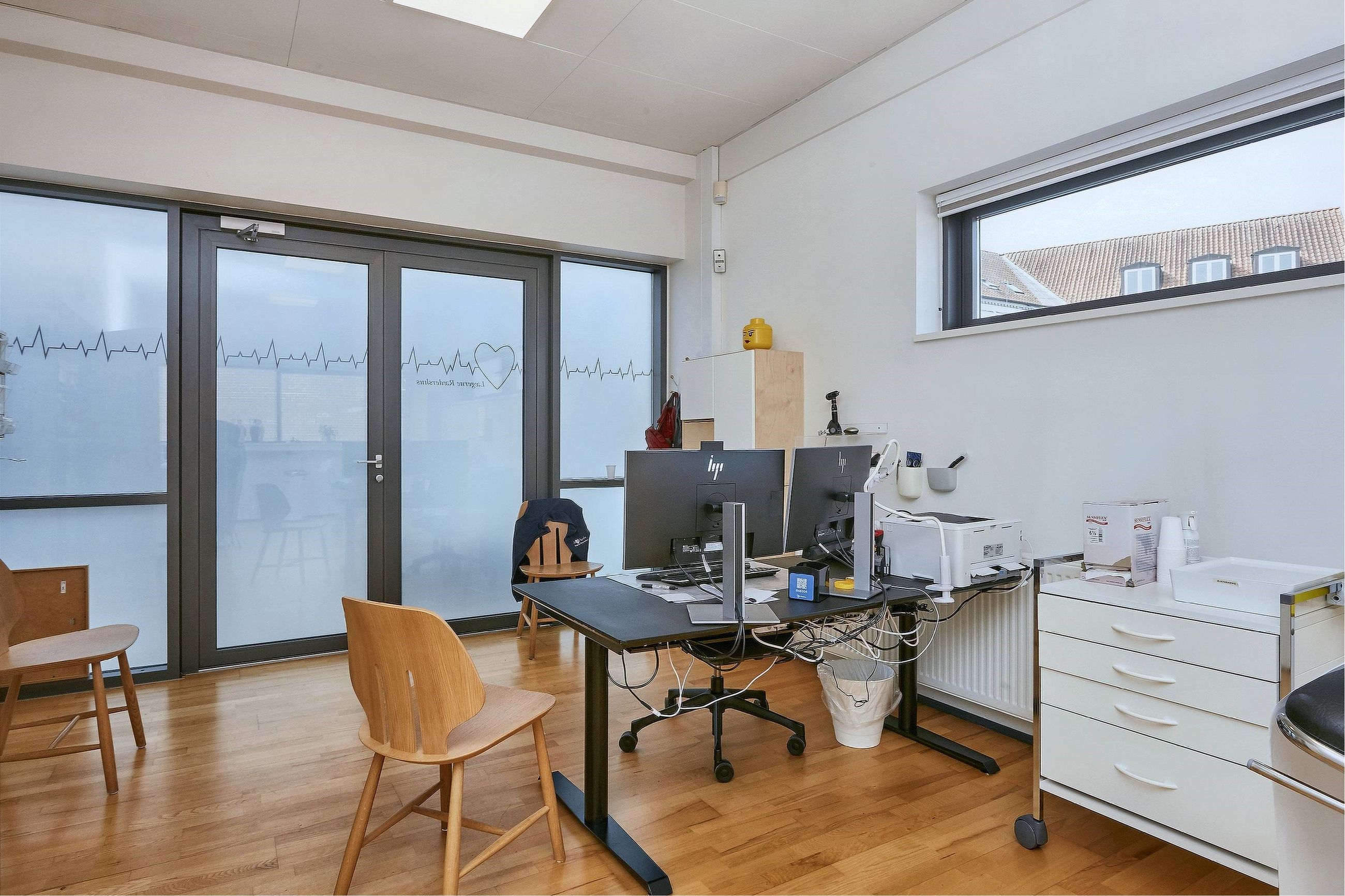 "Rædershus" er et markant kontorhus med stor arkitektonisk signalværdi. Facaden mod Rædersgade har et ekspressivt, flimrende og foranderligt udtryk, som signalerer et moderne kontorhus med stor repræsentationsværdi. Lejemålet, som har været anvendt til lægeklinik, er på 132 m² + andel af fællesarealer på 90 m², bestående af vente/ekspeditionsområde, toiletrum med 2 toiletter og 3 kontor/kliniklokaler. Fællesfaciliteter består af svalegang, adgangsarealer og 2 toiletter.