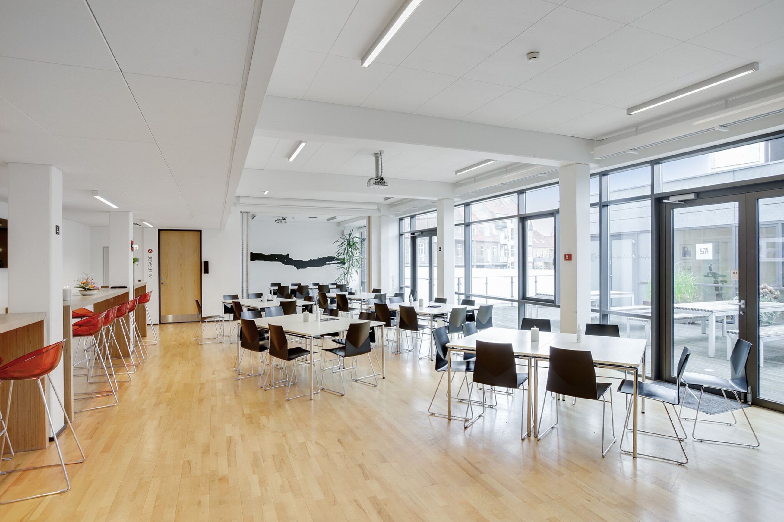 Der er på etagen indrettet fælles frokostcafe, og der er mulighed for at indgå aftale om frokostordning. Pris p.t. kr. 69 pr. person. I forbindelse med cafeen forefindes iøvrigt mødelokaler og loungeområde samt terrasse. Der er mulighed for at leje mødelokale efter aftale med indehaveren af cafeen.