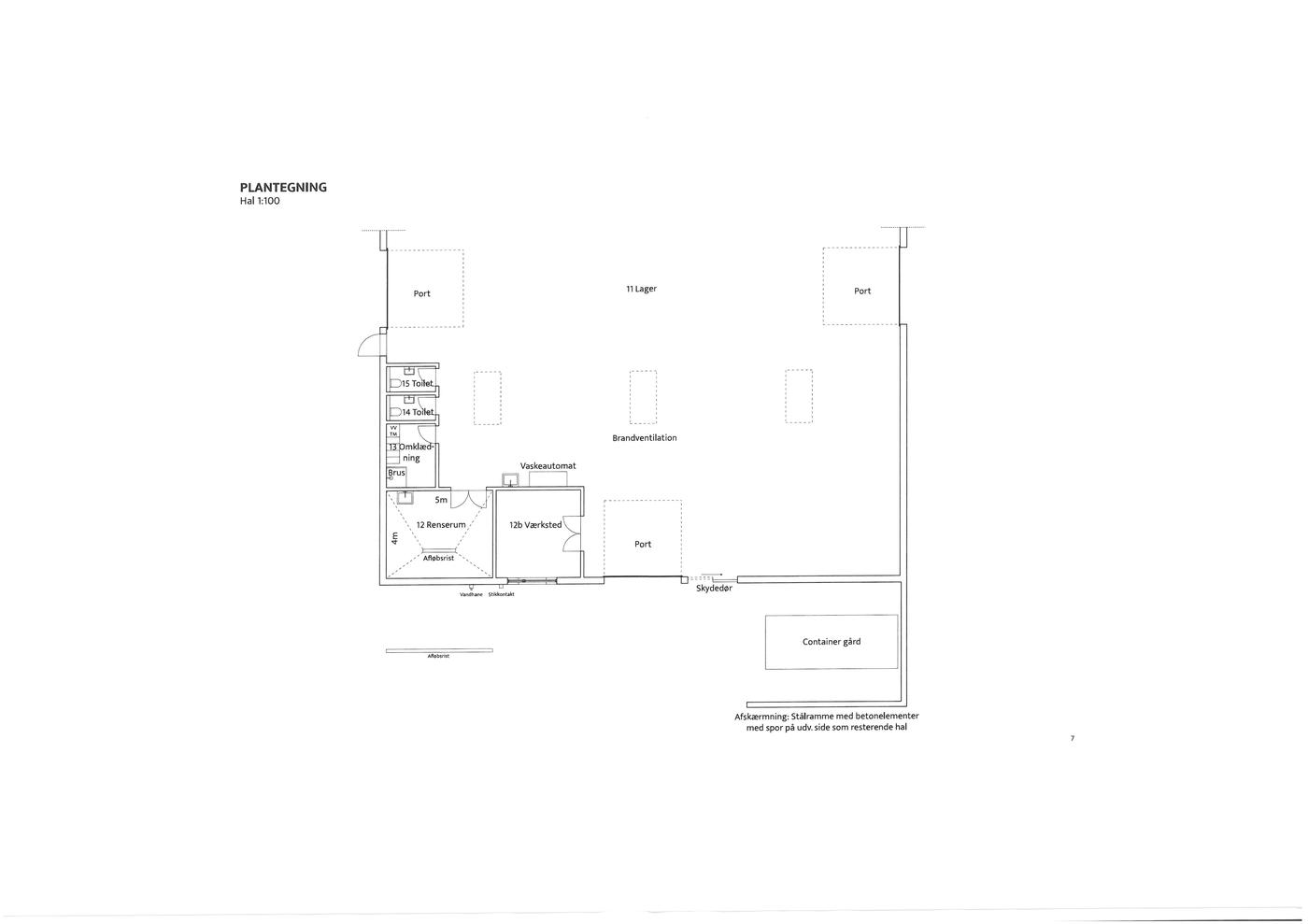 I hallen indrettes lille værksted, renserum, 2 toiletter og omklædningsrum med bad.