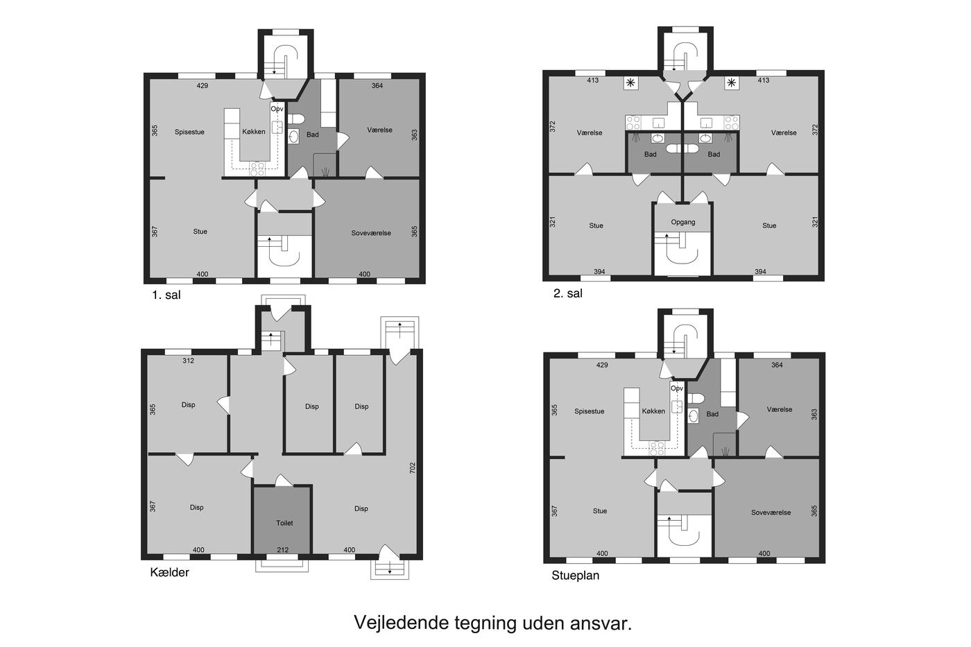 Samlet boligareal 244 m² fordelt på to stk. 3-værelses lejligheder på hver 86 m² samt to stk. 2-værelses lejligheder på hver 36 m².