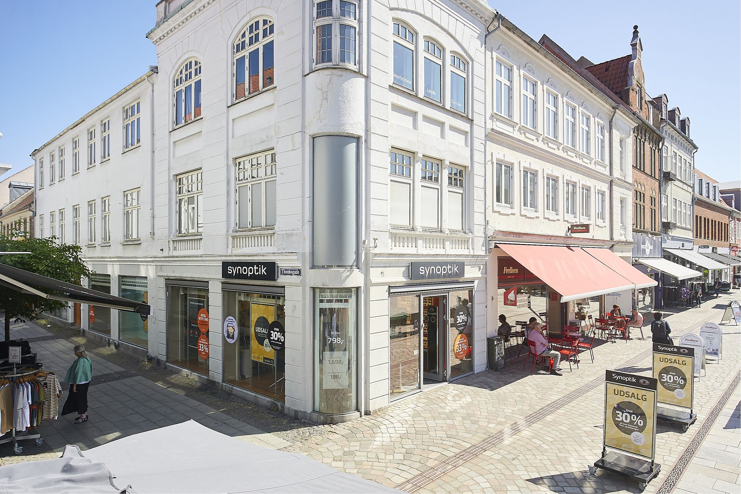 En af de bedste placeringer på solsiden af hovedstrøget i hjørneejendom Søndergade/Thonbogade.
