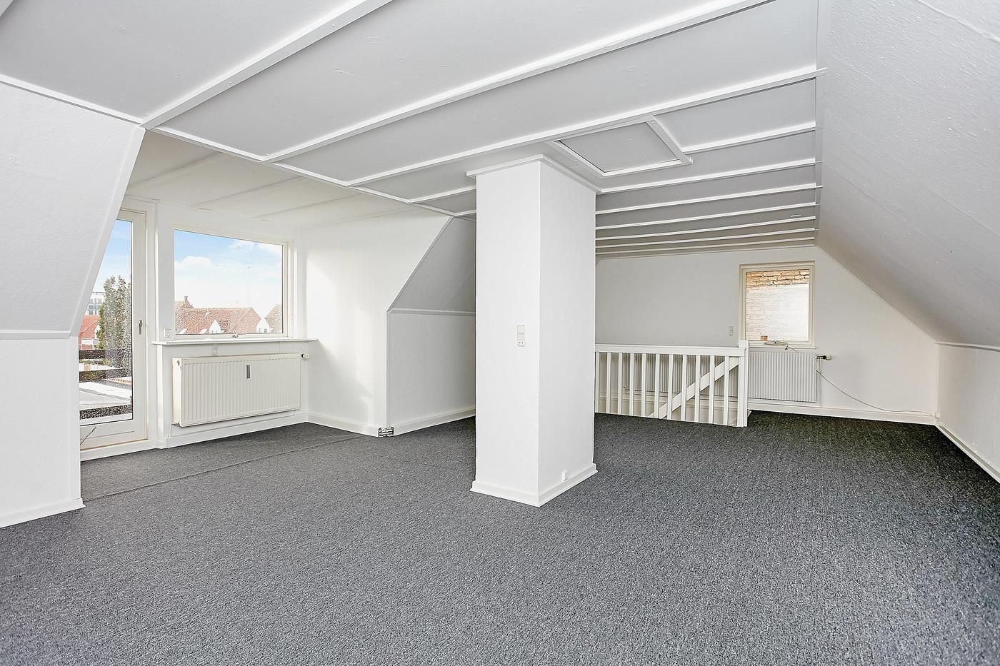 Stuelejlighed på 75 m² indeholder: køkken/alrum, stue, badeværelse og soveværelse. Lejlighed på 120 m² i 2 plan indeholder: på 1.sal på 75 m²: entre, 3 værelser, badeværelse og køkken med trappe til tagetage. Tagetagen på 45 m² er en stor stue med udgang til lille tagterrasse.