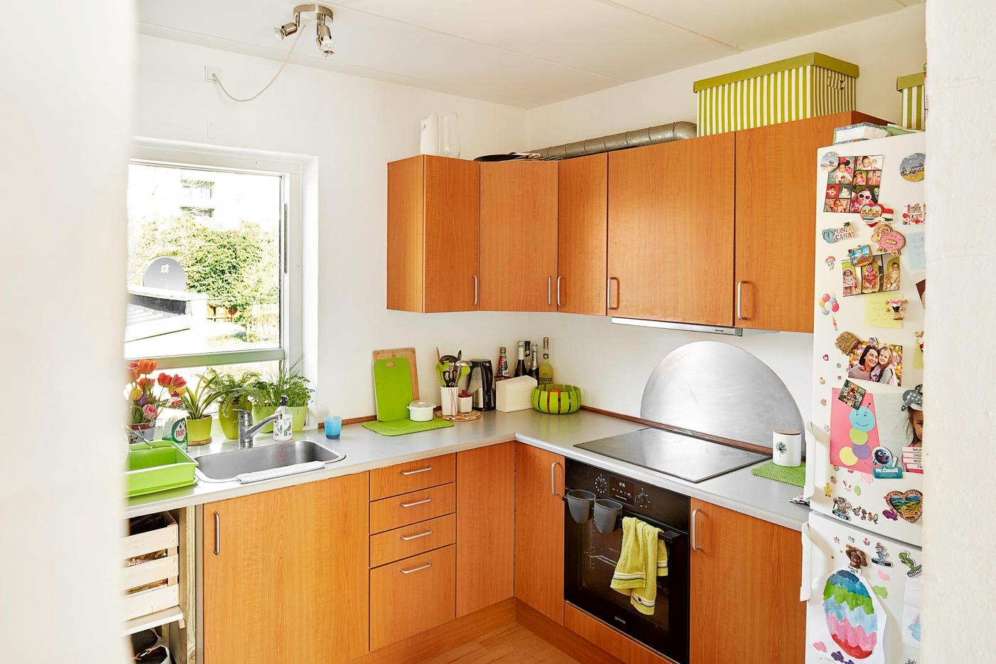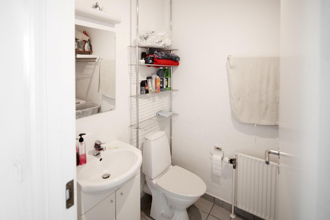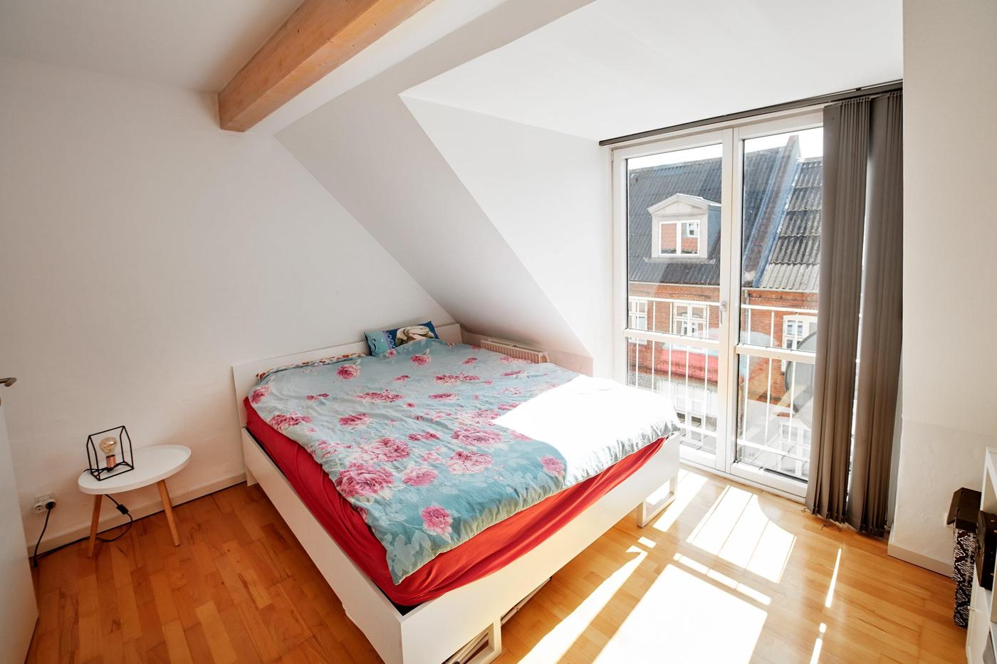 Forhus i 3 etager incl. tagetage + 20 m² kælder med fælles vaskerum og depotrum. Bygningen er opført i skalmur med tagdækning af teglsten. Bygningen indeholder 3 lejligheder, hvoraf de 2 er i 2 etager. Stuelejlighed på 56 m² indeholdende: entre, køkken, badeværelse, stue og soveværelse. Lejlighed 1./2.tv. på 66 m² indeholdende: entre, køkken, stue med trappe til tagetagen, som indeholder badeværelse og 2 værelser. Lejlighed 1./2.th. på 66 m² er indrettet som 1./2.tv. Adgang til 1.sals lejlighederne sker via udvendig trappe i gården.