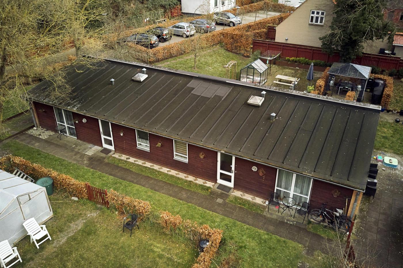 Baghus i ét plan opført i skalmur og delvis let facadebeklædning af træ. Tagdækning af pap med listedækning. Bygningen indeholder 2 lejligheder a' 50 m², som begge er indrettet med entre, soveværelse, badeværelse, køkken og stue i åbent plan.