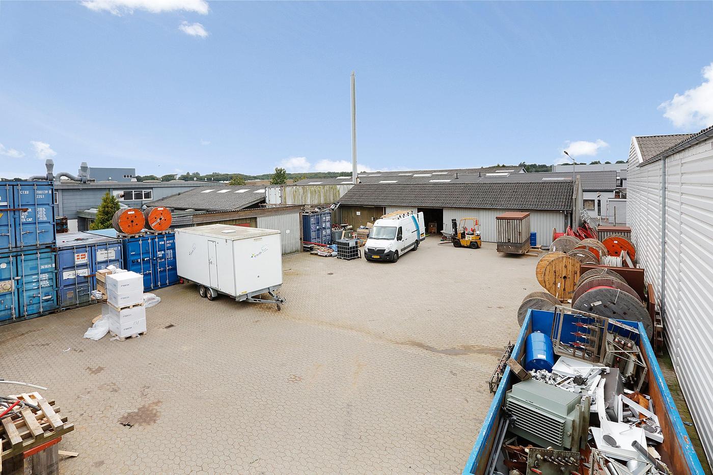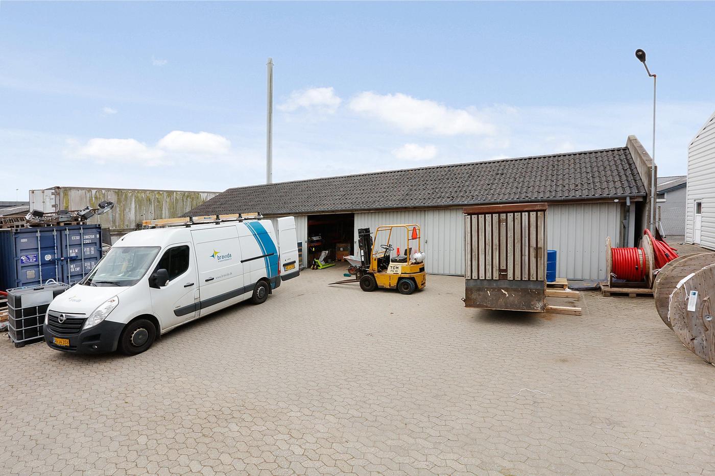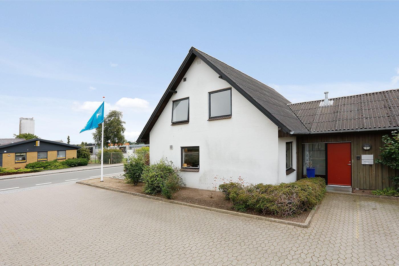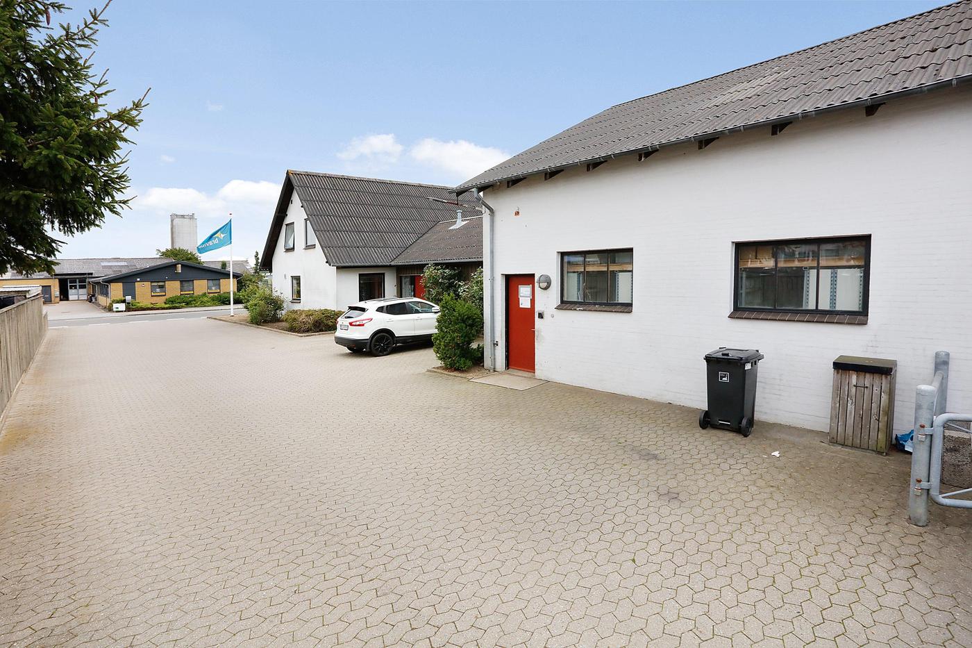 Bebyggelsen består af: Kontorbygning på ca. 148 m² i 2 etager indeholdende: Hall med trappe til tagetagen, 2 kontorer samt toilet. I tagetagen forefindes badeværelse, muligheden for yderligere 2 kontorer eller arkivrum samt køkken. 1. sal har tidligere været en separat lejlighed. Mellembygning på ca. 70 m² består i dag af kontor, omklædningsrum med bad og toilet samt stor frokoststue med køkkenplads. Værkstedsbygningen er på ca. 213 m² med skydeport i gavl. Her er er desuden stort loft samt to mindre lagerrum og et godt baderum med nyere gode brusefaciliteter. Bag ejendommen er der koldlager/garagebygning på ca. 120 m². Herudover forefindes yderligere en garagebygning (indgår ikke i de nævnte 551 m²).