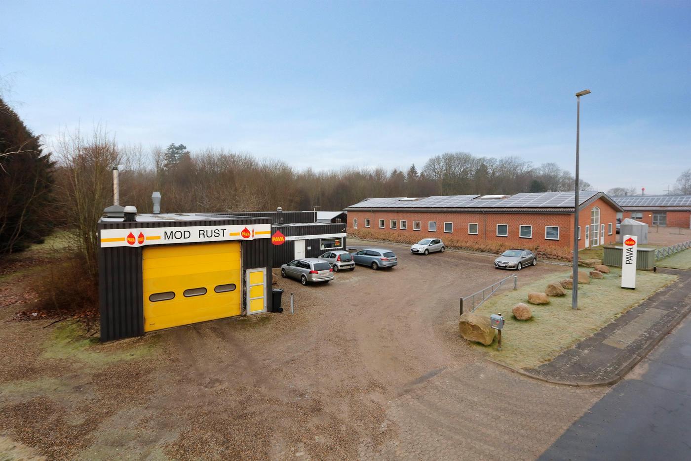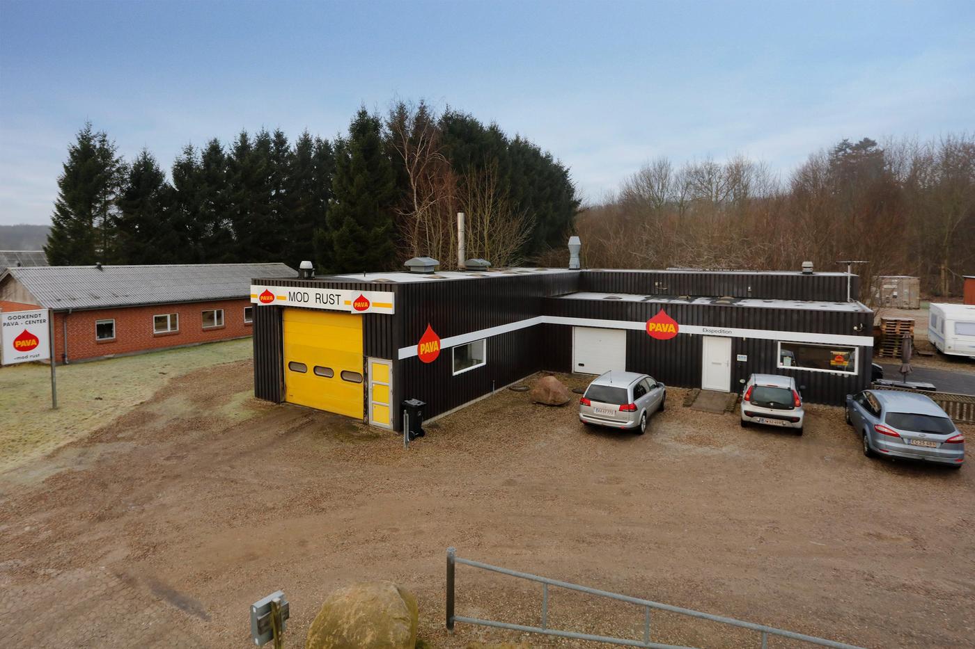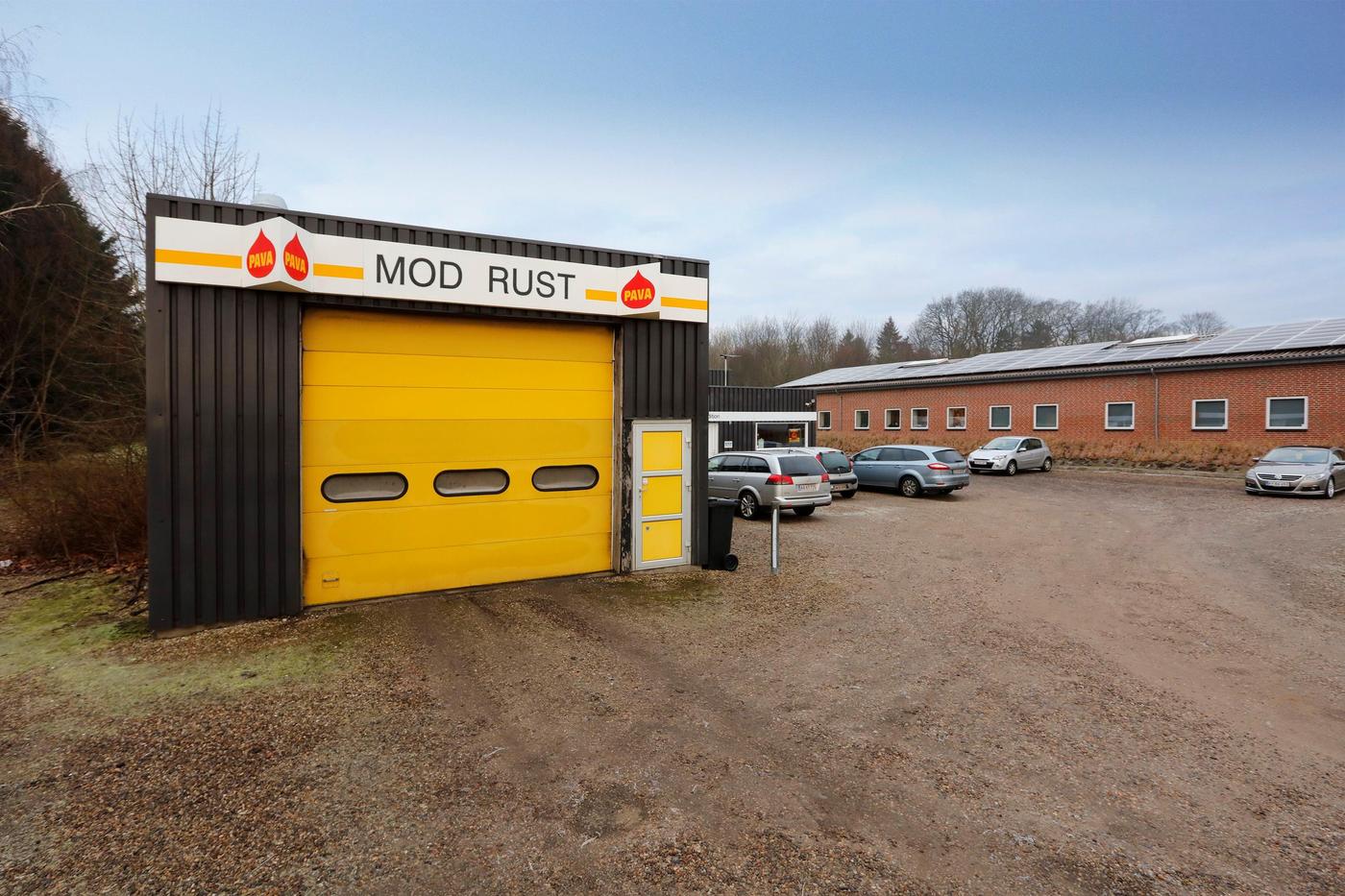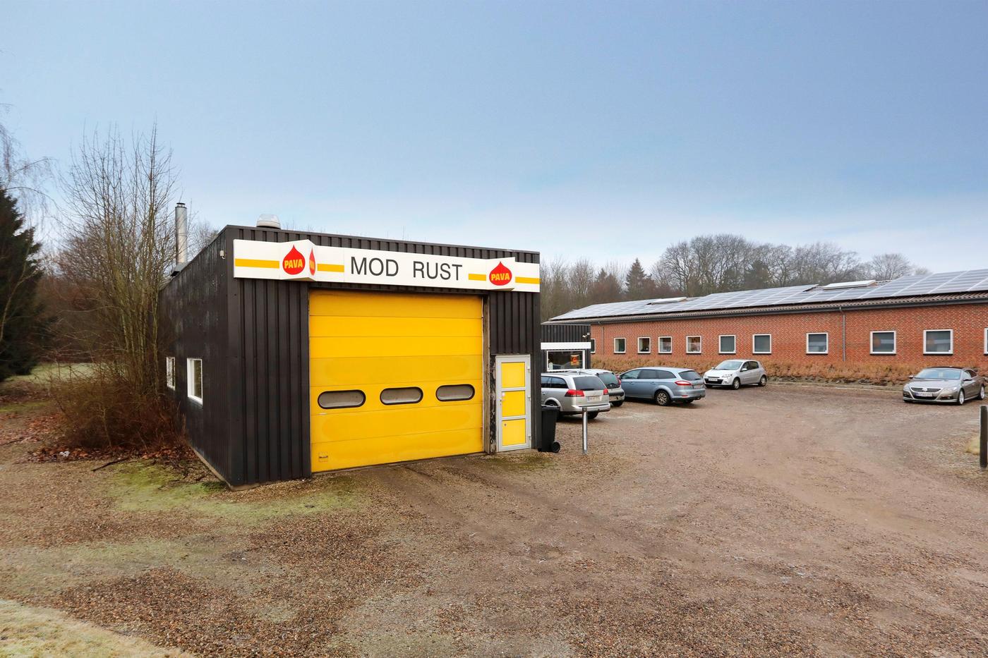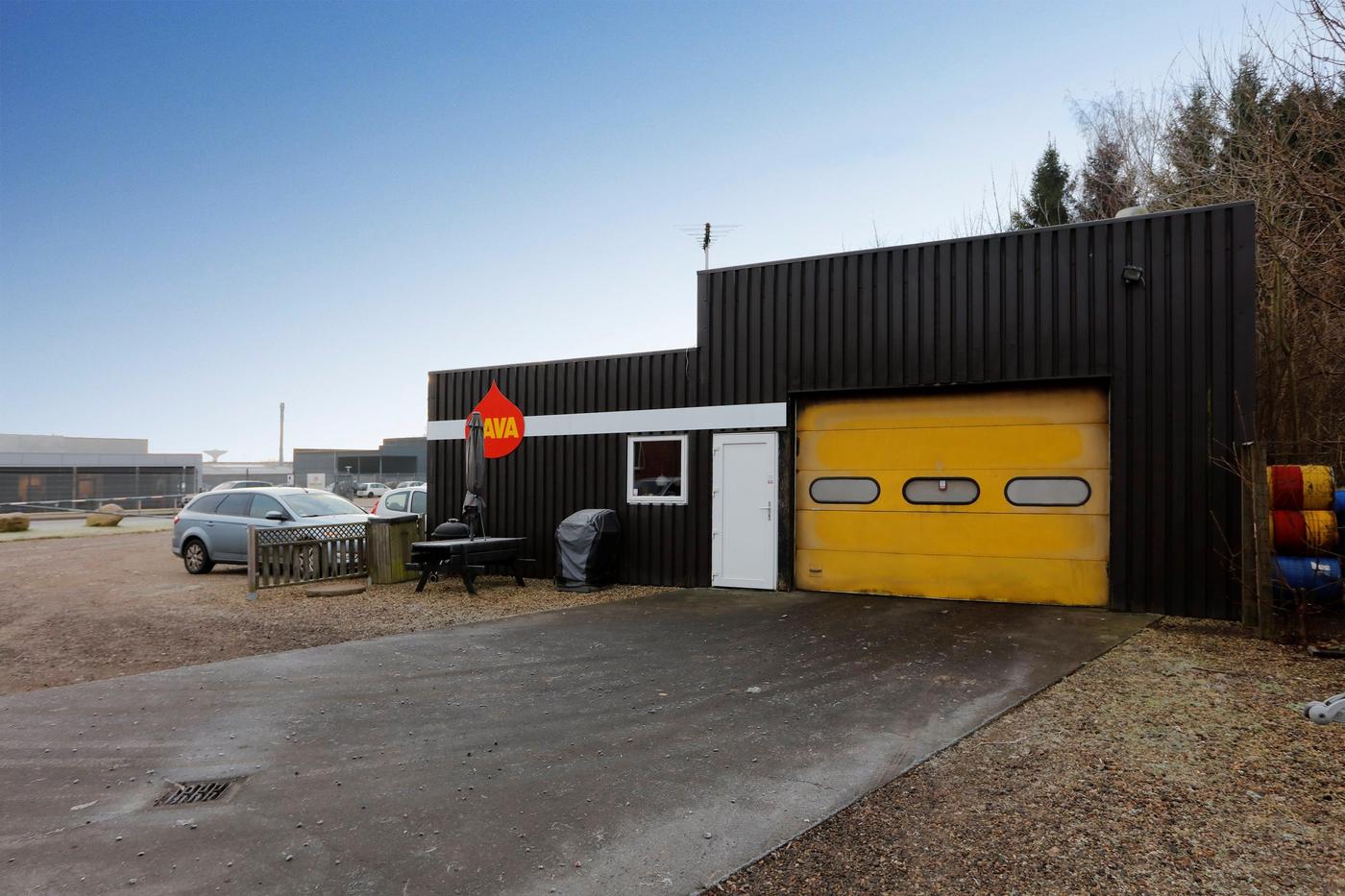 Indretning: Hal på ca. 100 m² med ca. 3,75 m bred port, åbning mod hal på ca. 50 m² med åbning mod vaske- og klargøringshal på ca. 65 m² med ca. 4 m bred port. Mindre lagerrum. Kontor/velfærdsafsnit bestående af: entre, toilet, omklædningsrum med bad og toilet, kontor og frokostrum.