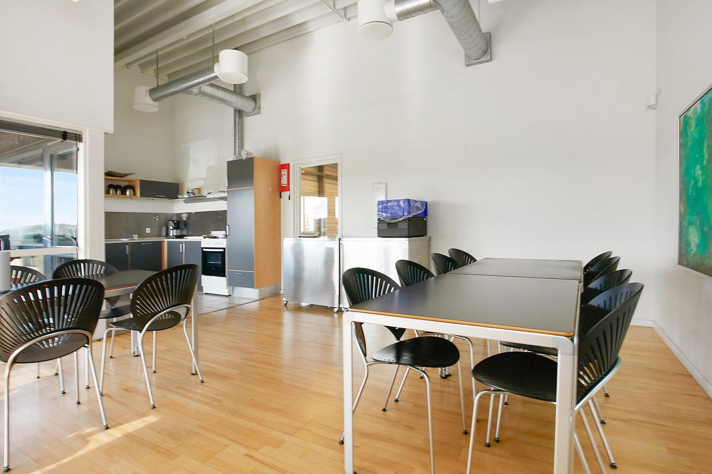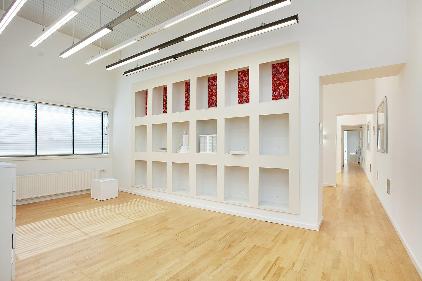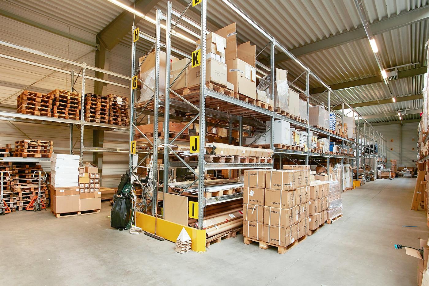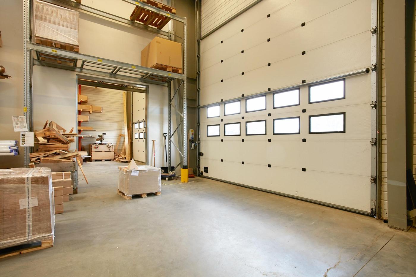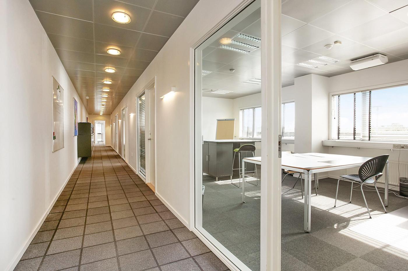 Stueplan består af: lagerhal med lofthøjde på ca. 8 m, 2 vareindleveringslokaler - hver med ca. 5 m bred og 4,5 m høj ledhejseport og hurtigport på 3 x 3 m til lagerhallen. I hallen forefindes lagerkontor og fyrrum. Kontor/velfærdsafsnit bestående af: foyer med trappe til 1.sal (fællesareal), depot/printerrum, storkontor, fordelingsgang, 6 kontorer af varierende størrelse, trapperum med toilet (fællesareal). Værkførerkontor, omklædning/bad, og 2 toiletter (fællesareal). 1.sal består af: showroom, fordelingsgang, 6 kontorer af varierende størrelse, trapperum. Trapperum ved opgangen fra foyer (fællesareal), fælles kantine med udgang til ca. 10 m² tagterrasse