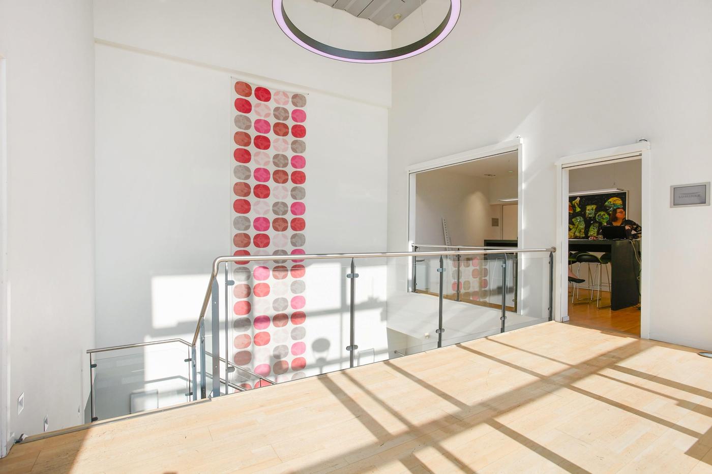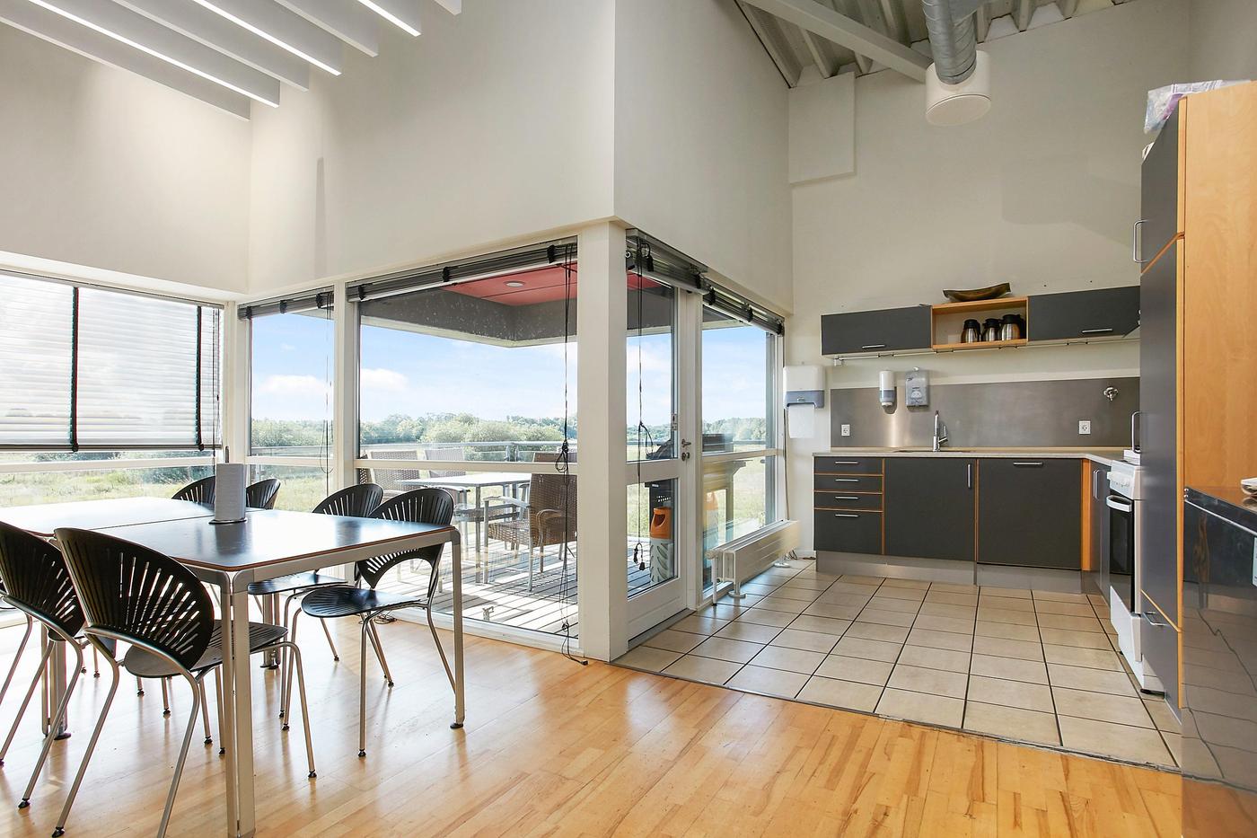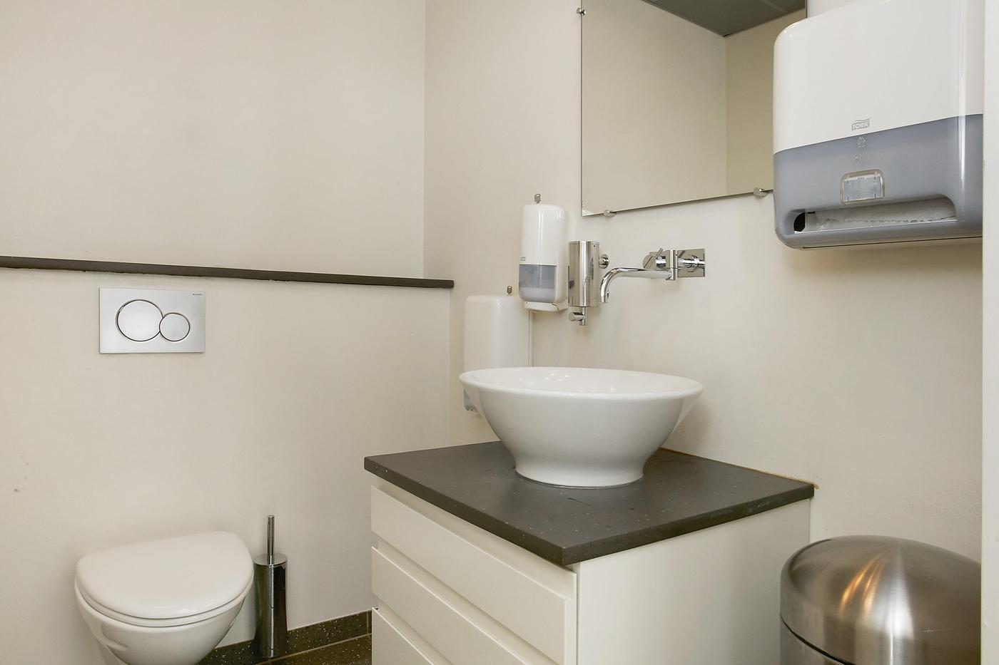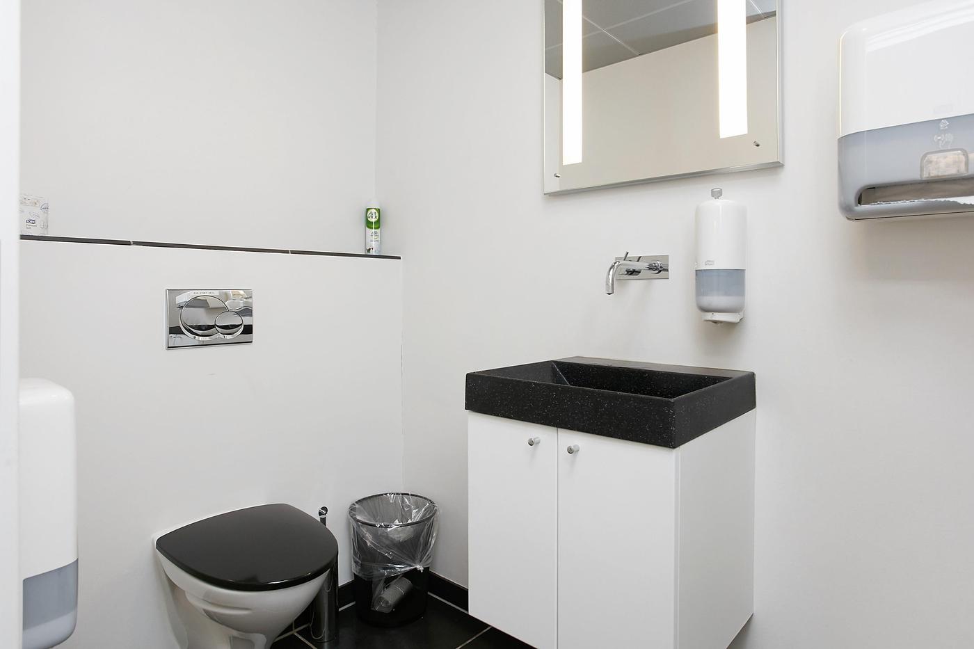 Stueplan består af: lagerhal med lofthøjde på ca. 8 m, 2 vareindleveringslokaler - hver med ca. 5 m bred og 4,5 m høj ledhejseport og hurtigport på 3 x 3 m til lagerhallen. I hallen forefindes lagerkontor og fyrrum. Kontor/velfærdsafsnit bestående af: foyer med trappe til 1.sal (fællesareal), depot/printerrum, storkontor, fordelingsgang, 6 kontorer af varierende størrelse, trapperum med toilet (fællesareal). Værkførerkontor, omklædning/bad, og 2 toiletter (fællesareal). 1.sal består af: showroom, fordelingsgang, 6 kontorer af varierende størrelse, trapperum. Trapperum ved opgangen fra foyer (fællesareal), fælles kantine med udgang til ca. 10 m² tagterrasse