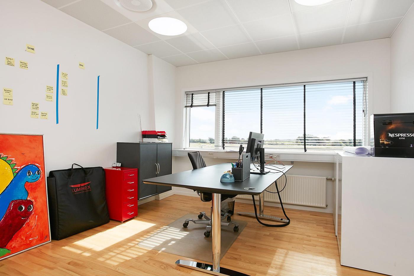Luminex A/S forbliver boende på ejendommen som lejer. Luminex A/S er totaludbyder af belysningsløsninger.