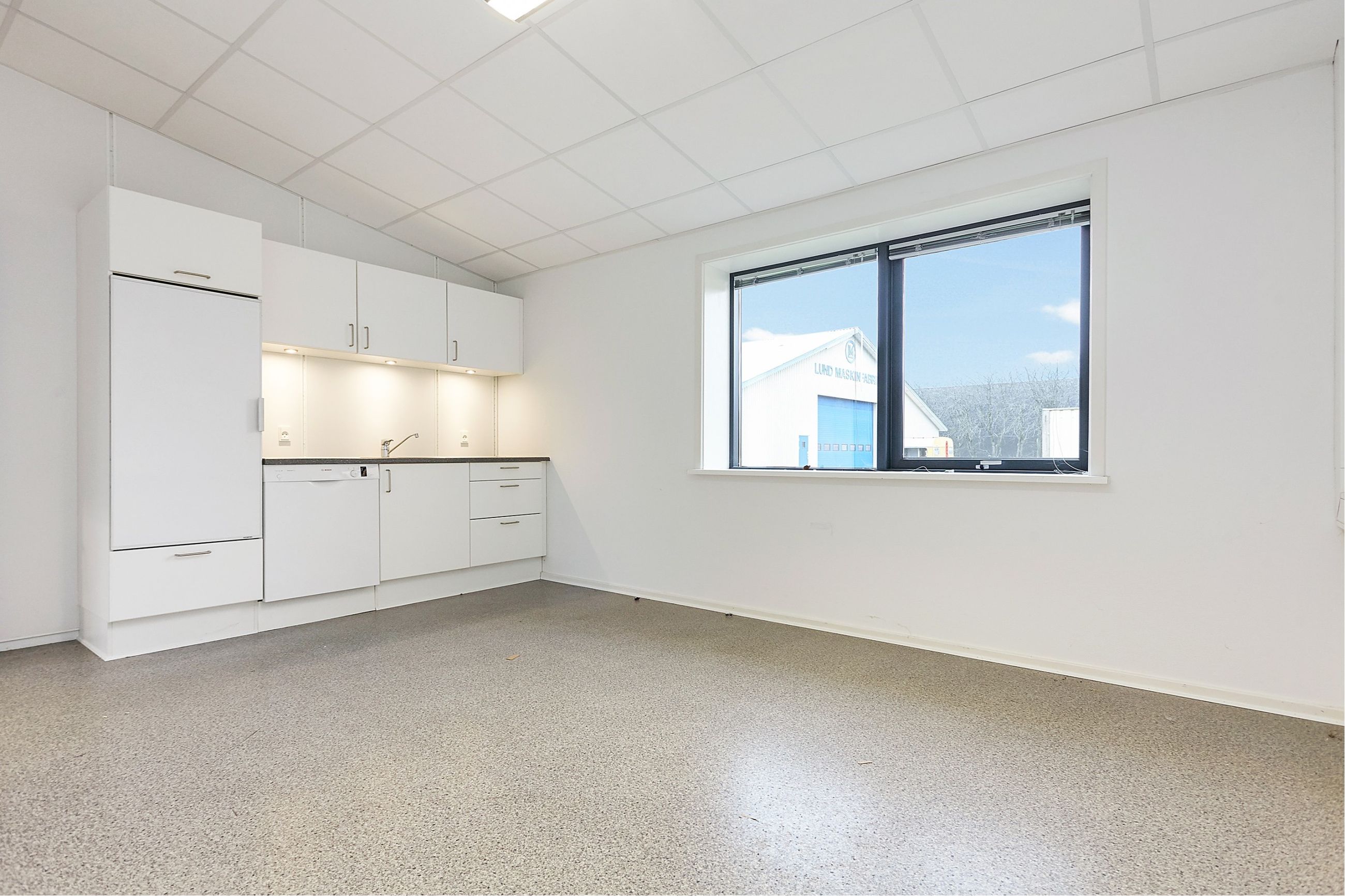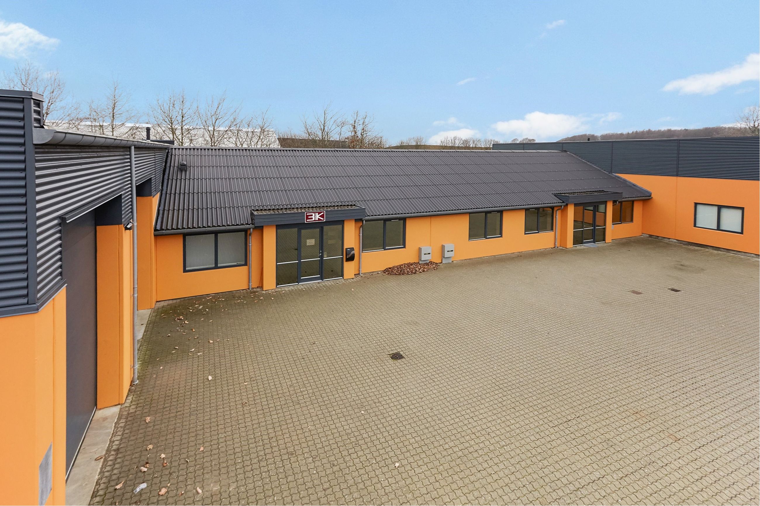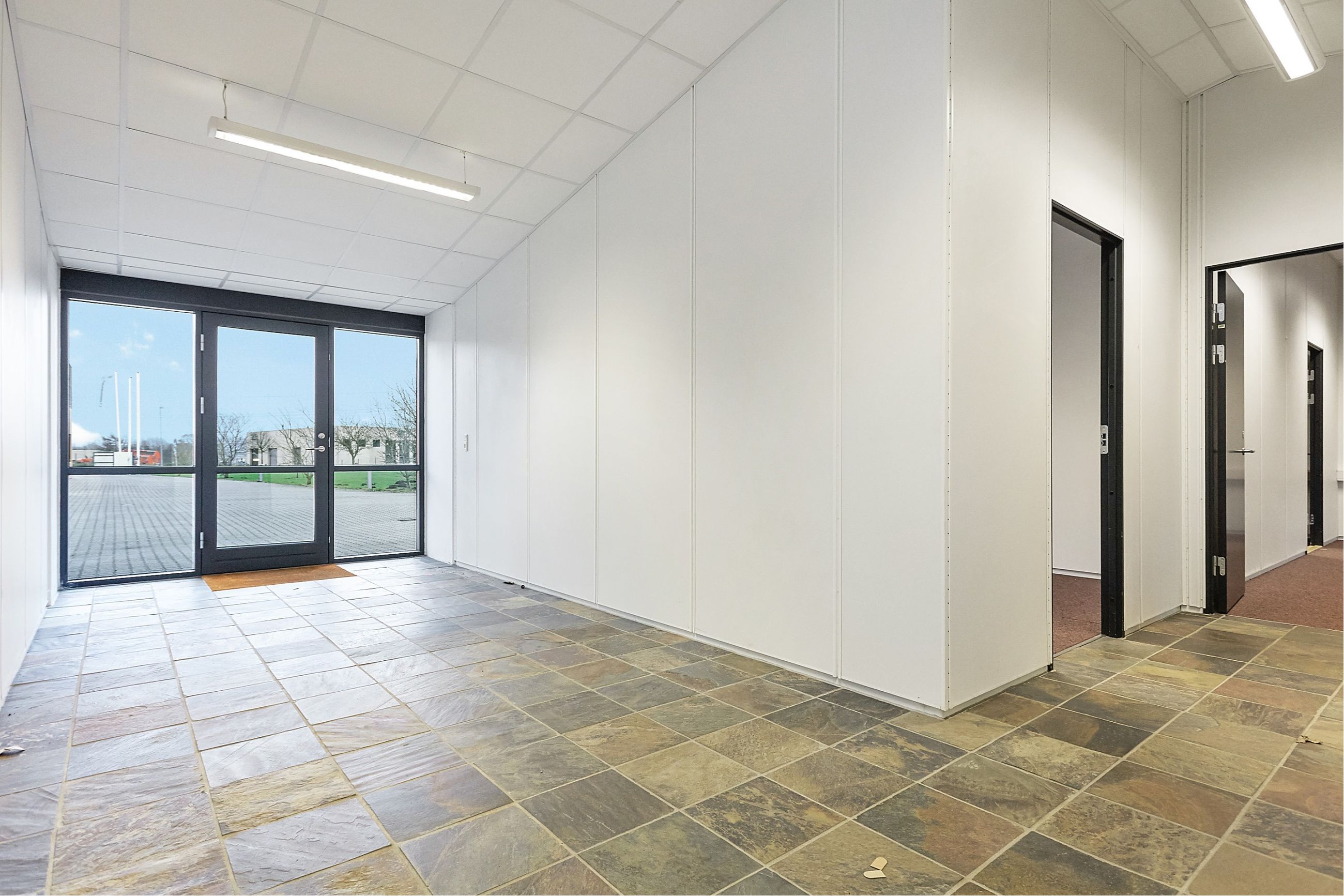 Ca. 100 m² isoleret, men uopvarmet hal med tilhørende kontorafsnit på ca. 110 m².