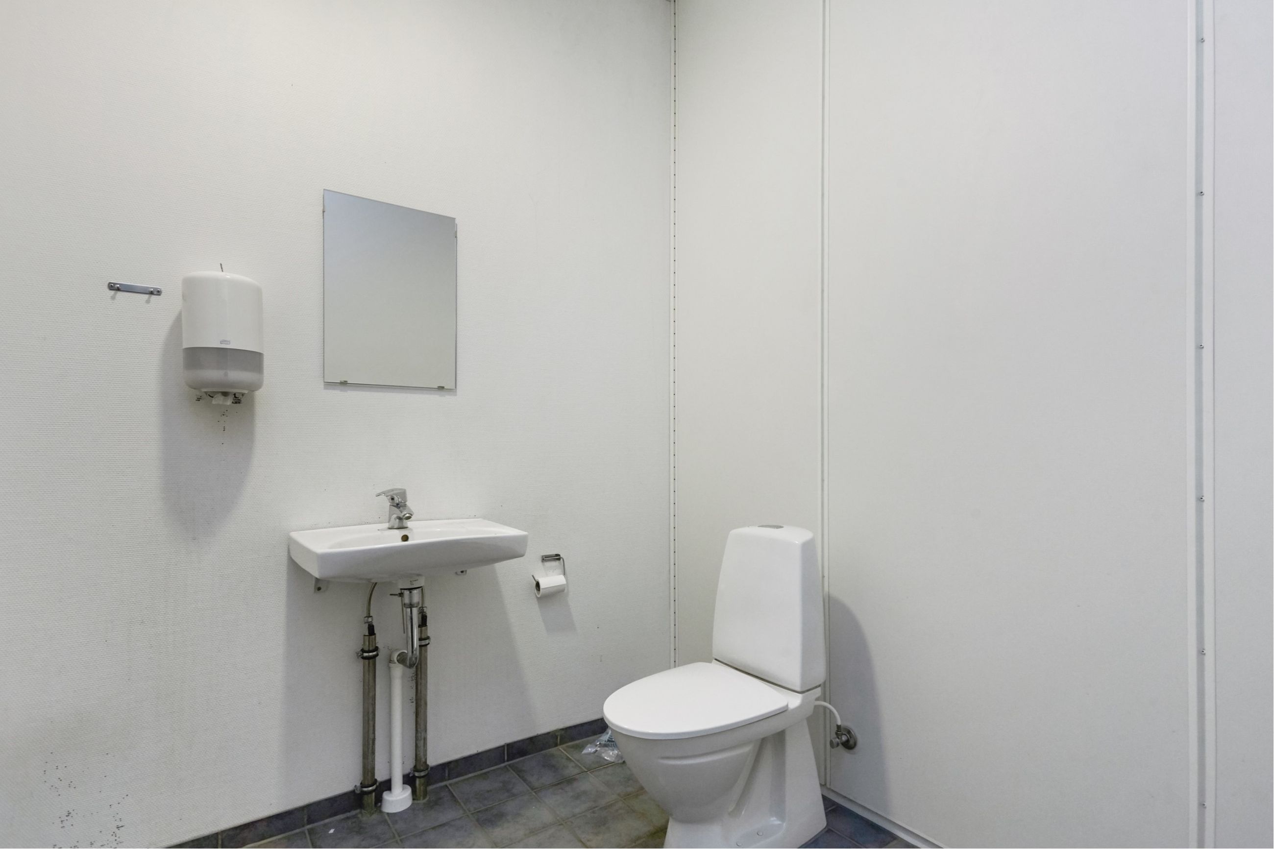 Hallen er meget reel med ca. 5 meters lofthøjde, ovenlys og høj aluport. Gode tilkørselsforhold. Pæne administrationslokaler. Administrationsafsnit er ikke opdelt fra den del, som fremlejegiver beholder. Der sker alene opdeling, såfremt én af parterne måtte ønske det.